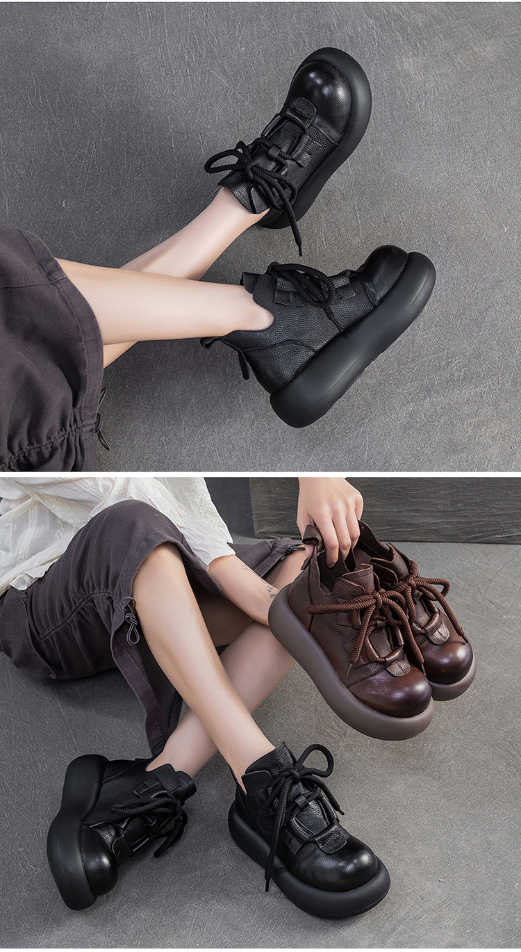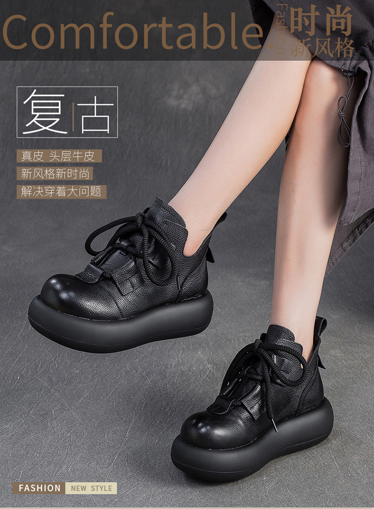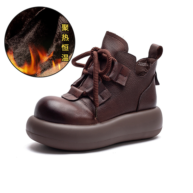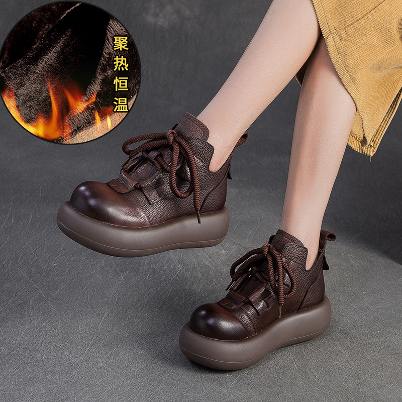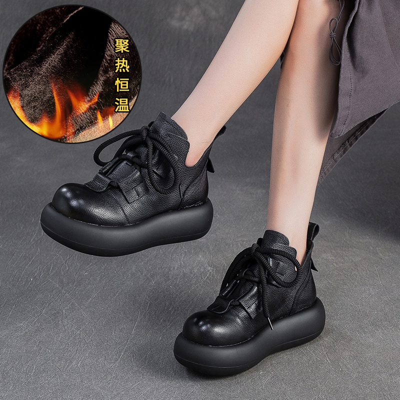 Bốt cổ thấp nữ dáng tròn, đế dày, được làm từ chất liệu da thật bền đẹp. Bên trong có lớp lót ấm áp và bông giữ nhiệt, rất phù hợp để đi trong thời tiết lạnh. Kiểu dáng thoải mái và dễ phối đồ với nhiều trang phục khác nhau. Bạn có thể sử dụng hằng ngày để đi làm, đi chơi hoặc dạo phố. | Tên sản phẩm: Boot Cổ Thấp Nữ Chất Liệu Vải Bông Mũi Tròn Đế Cao Hàng Mùa Xuân Thu Đông - Giày Dép Nữ | Mã sản phẩm: B2355 - Giá: 1.620.000đ | Mã nhà sản xuất: SHDU-G05Hình ảnh sản phẩm