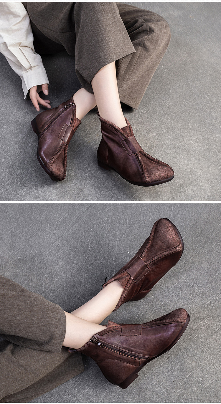 Giày bốt cổ thấp kiểu dáng ống suông, mang phong cách hoài cổ nhẹ nhàng kết hợp nét đẹp dân tộc. Sản phẩm thuộc bộ sưu tập mùa đông 2024, được thiết kế với đế bằng phẳng ôm sát chân, đem lại cảm giác dễ chịu khi mang cả ngày. Chất liệu mềm mại tạo sự thoải mái tối đa cho các bước chân. Kiểu giày này phù hợp để kết hợp cùng quần jeans, váy len hay trang phục hàng ngày, giúp tôn lên vẻ thanh lịch tự nhiên. Cách sử dụng đơn giản, dễ dàng phối đồ cho nhiều dịp sinh hoạt thường nhật. | Tên sản phẩm: Giày Boot Cổ Thấp Nữ Hàng Mùa Xuân Thu Đông Phục Cổ Cổ Điển - Giày Dép Nữ | Mã sản phẩm: B2367 - Giá: 2.660.000đ | Mã nhà sản xuất: SHNTEZ-G06Hình ảnh sản phẩm