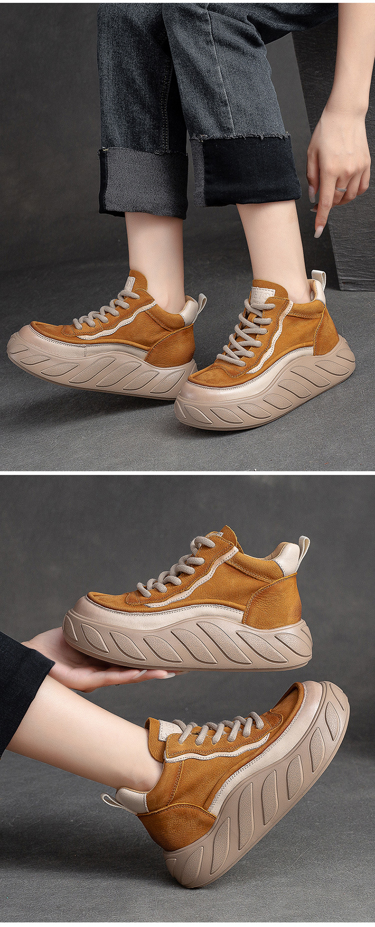 Giày nữ thiết kế theo phong cách Anh Quốc cổ điển, phù hợp cho mùa thu. Sản phẩm có cổ thấp và đế dày vừa phải, tạo cảm giác thoải mái khi di chuyển. Điểm nhấn là dây buộc phía trước, giúp bạn dễ dàng điều chỉnh độ ôm chân. Kiểu dáng này dễ phối với nhiều loại trang phục khác nhau như quần jeans hay váy. Bạn có thể sử dụng như một đôi giày thường ngày để đi làm, đi chơi hoặc dạo phố. | Tên sản phẩm: Giày Thể Thao Tăng Chiều Cao Nữ Đế Cao Hàng Mùa Xuân Thu Đông - Giày Dép Nữ | Mã sản phẩm: B2418 - Giá: 1.620.000đ | Mã nhà sản xuất: SHDU-G05Hình ảnh sản phẩm