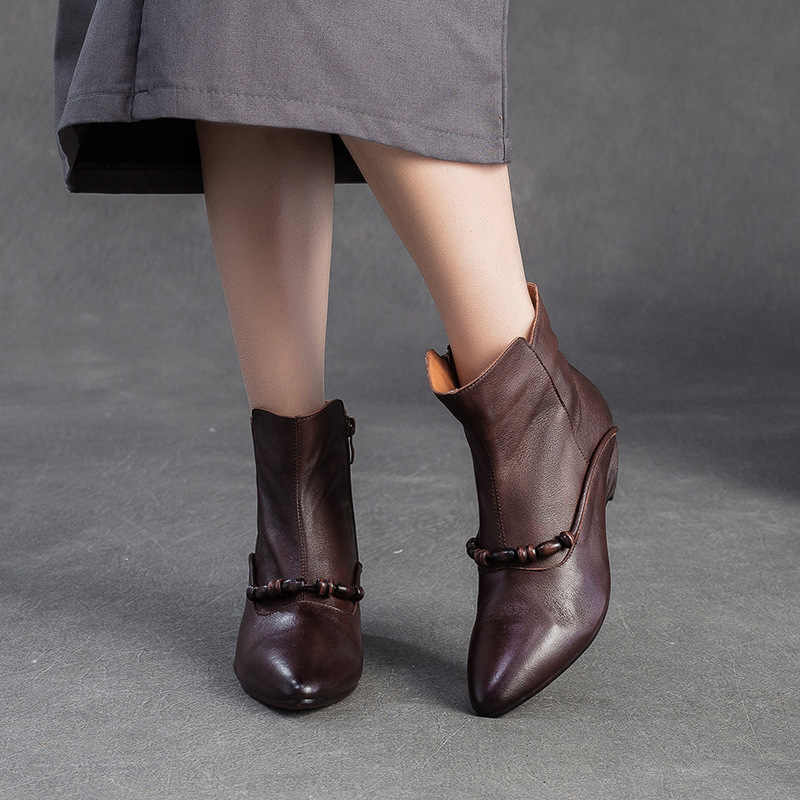 Giày bốt cổ thấp dành cho nữ, lấy cảm hứng từ tông màu nâu ấm đặc trưng. Thiết kế mũi nhọn tinh tế, kết hợp với kiểu dáng cổ lửng dễ dàng xỏ chân. Sản phẩm có trọng lượng nhẹ, phù hợp để diện cùng nhiều loại trang phục khác nhau trong những dịp thường ngày. Chỉ cần kết hợp với quần jeans hay váy liền là bạn đã có một phong cách rất riêng. | Tên sản phẩm: Giày Boot Martin Nữ Mũi Nhọn Hàng Mùa Xuân Thu Đông - Giày Dép Nữ | Mã sản phẩm: B2425 - Giá: 1.900.000đ | Mã nhà sản xuất: SHDU-G05Hình ảnh sản phẩm