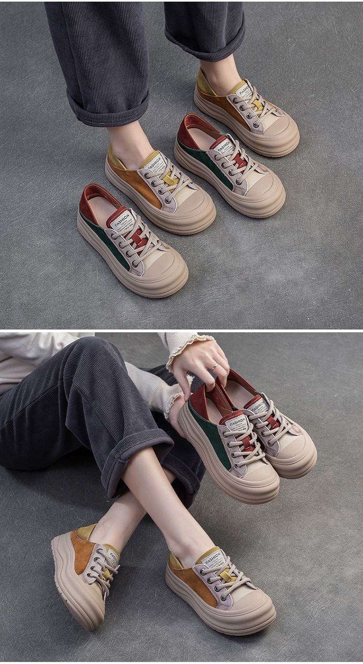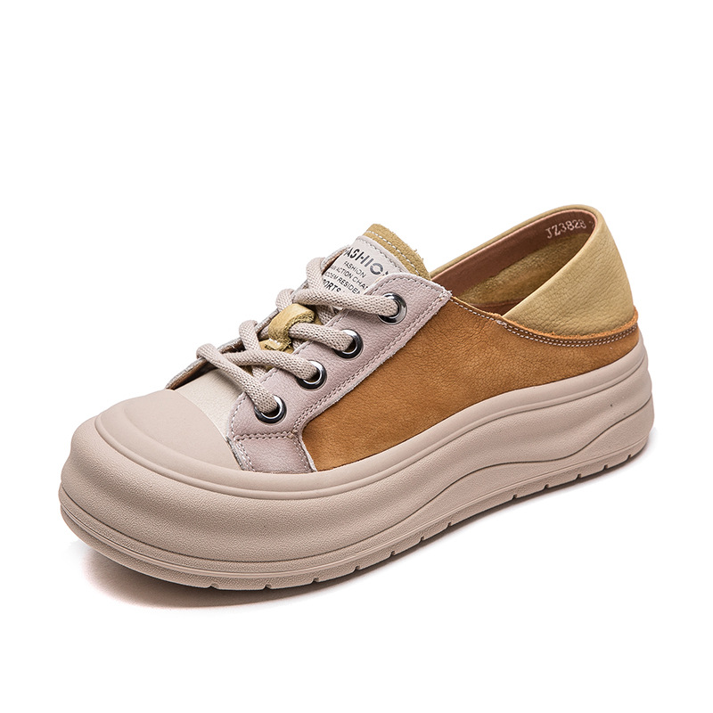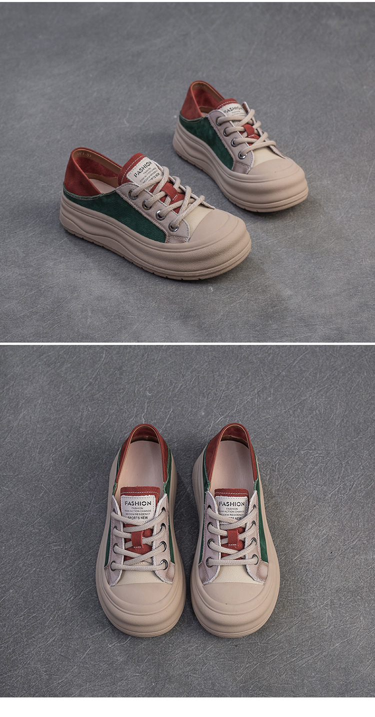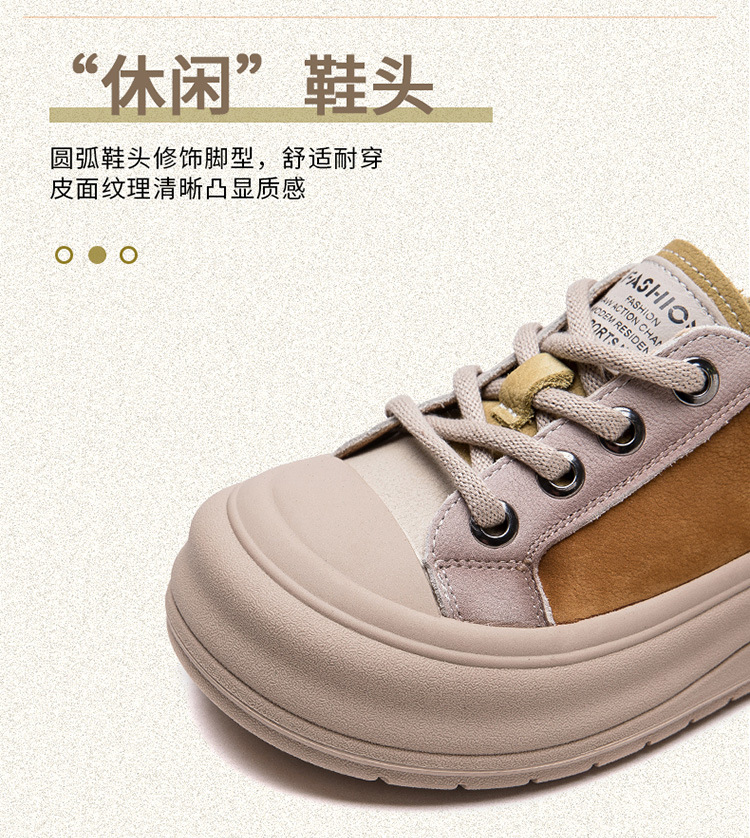 Giày nữ dáng tròn, phần đế được làm dày một cách vừa phải giúp nâng dáng và tạo cảm giác thoải mái khi di chuyển. Sản phẩm có thiết kế phối màu nhẹ nhàng, dễ dàng kết hợp với nhiều loại trang phục khác nhau như quần jeans hay váy. Kiểu dây buộc phía trước giúp bạn điều chỉnh độ ôm vừa vặn. Đây là mẫu giày phù hợp cho các hoạt động thường ngày, mang lại vẻ ngoại hình năng động và trẻ trung. | Tên sản phẩm: Giày Thể Thao Tăng Chiều Cao Nữ Mũi Tròn Đế Cao Hàng Mùa Xuân Thu Đông - Giày Dép Nữ | Mã sản phẩm: B2435 - Giá: 1.380.000đ | Mã nhà sản xuất: SHDU-G04Hình ảnh sản phẩm