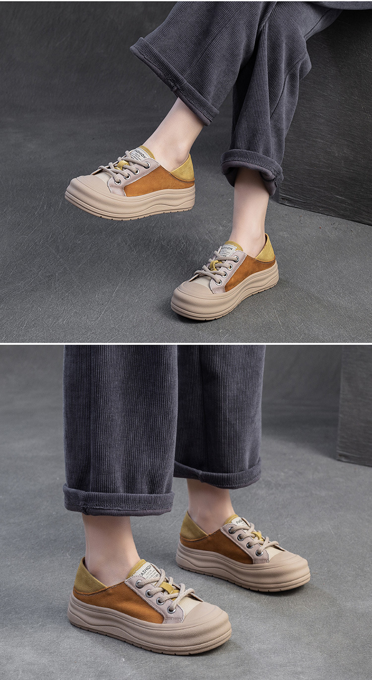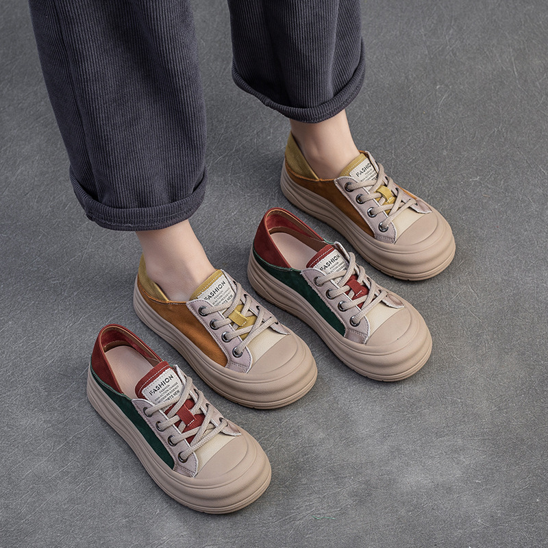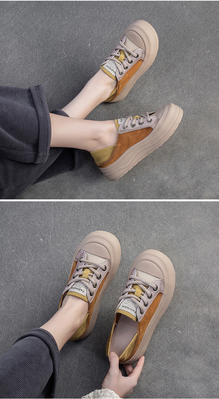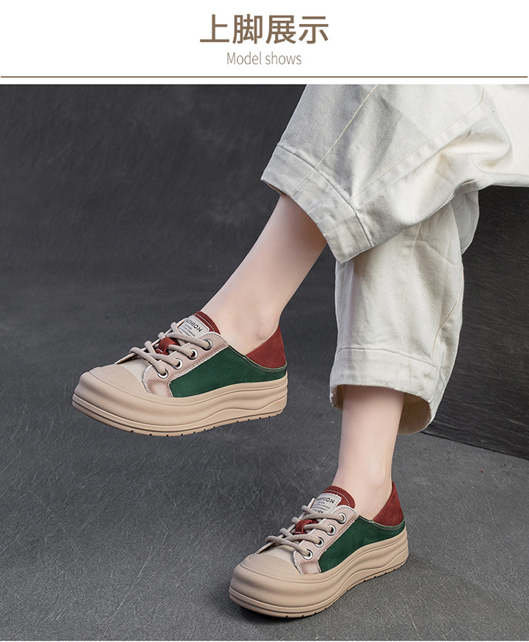Giày nữ dáng tròn, phần đế được làm dày một cách vừa phải giúp nâng dáng và tạo cảm giác thoải mái khi di chuyển. Sản phẩm có thiết kế phối màu nhẹ nhàng, dễ dàng kết hợp với nhiều loại trang phục khác nhau như quần jeans hay váy. Kiểu dây buộc phía trước giúp bạn điều chỉnh độ ôm vừa vặn. Đây là mẫu giày phù hợp cho các hoạt động thường ngày, mang lại vẻ ngoại hình năng động và trẻ trung. | Tên sản phẩm: Giày Thể Thao Tăng Chiều Cao Nữ Mũi Tròn Đế Cao Hàng Mùa Xuân Thu Đông - Giày Dép Nữ | Mã sản phẩm: B2435 - Giá: 1.380.000đ | Mã nhà sản xuất: SHDU-G04Hình ảnh sản phẩm