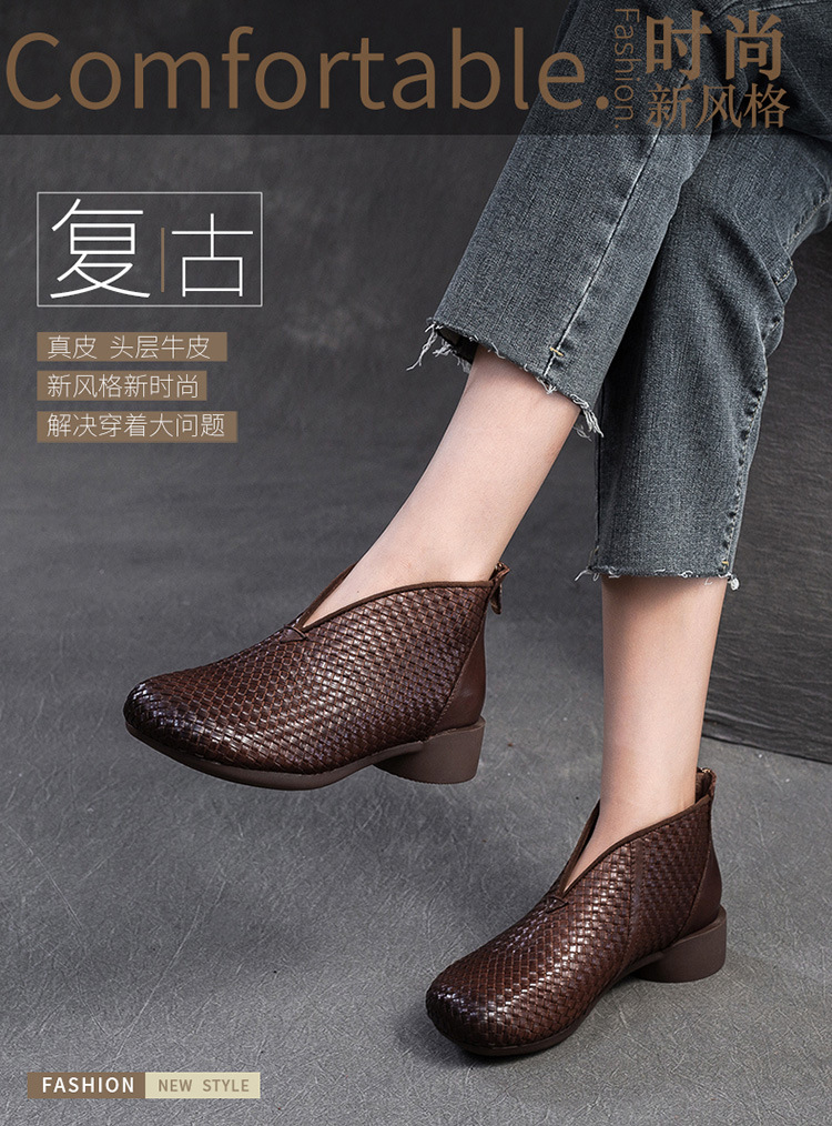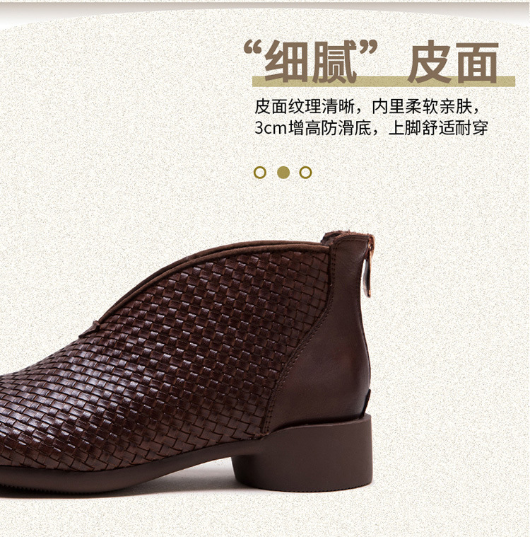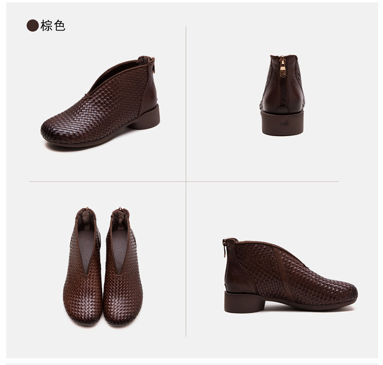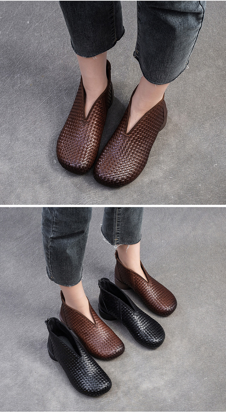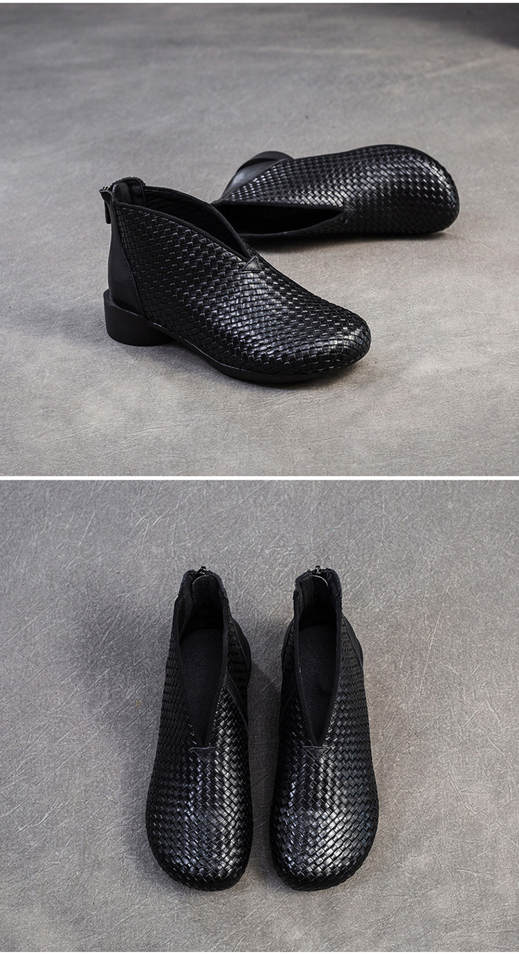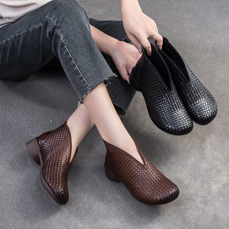 Giày bốt nữ dáng thấp, kiểu dệt tay, lấy cảm hứng từ phong cách cổ điển. Sản phẩm có thiết kế ôm chân vừa vặn, phần gót thấp giúp nâng đỡ bàn chân một cách thoải mái trong mọi hoạt động thường ngày. Đây là mẫu giày dễ dàng kết hợp với nhiều loại trang phục khác nhau như quần jeans, váy hay quần âu. Bạn có thể sử dụng như một đôi giày đi làm, đi chơi hoặc dạo phố. | Tên sản phẩm: Giày Cao Gót Nữ Hàng Mùa Xuân Thu Đông Phục Cổ Cổ Điển - Giày Dép Nữ | Mã sản phẩm: B2455 - Giá: 2.670.000đ | Mã nhà sản xuất: SHNTEZ-G06Hình ảnh sản phẩm