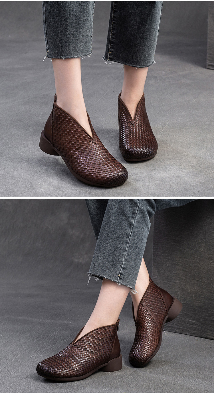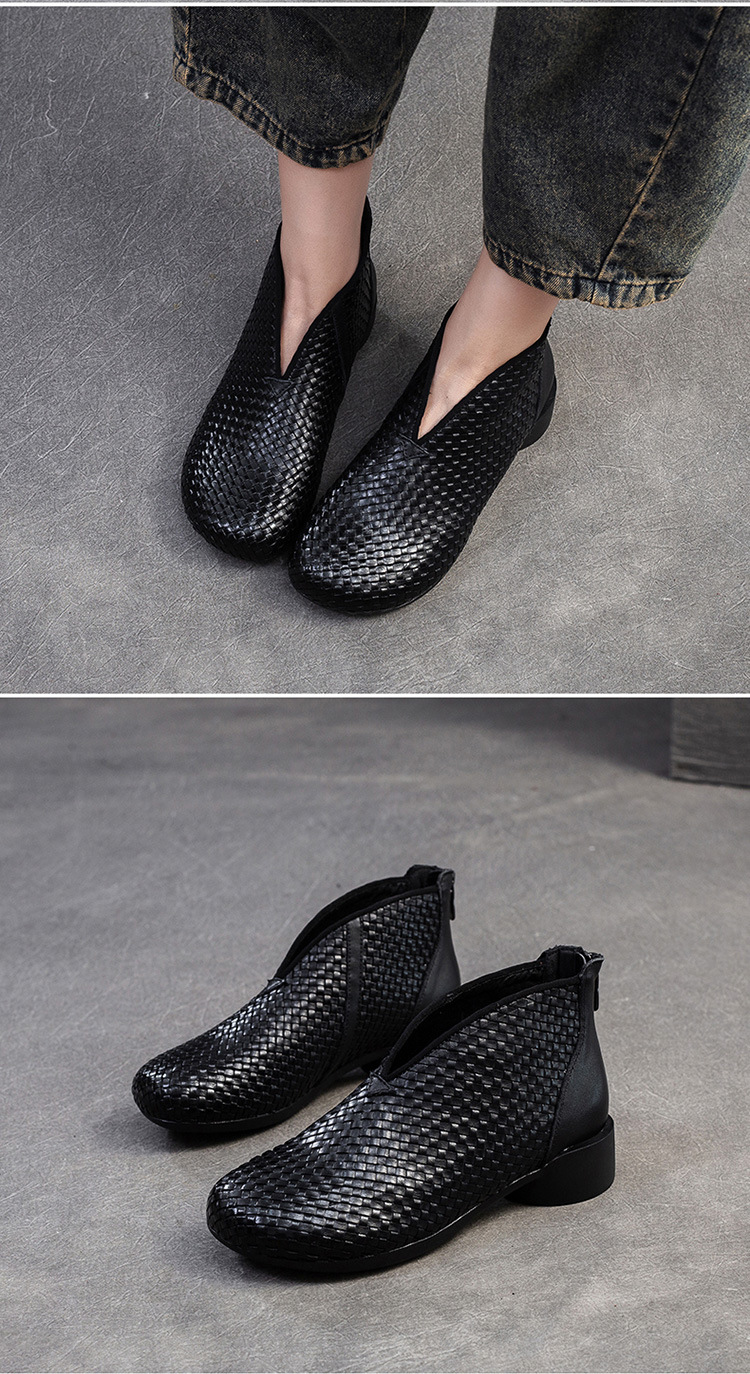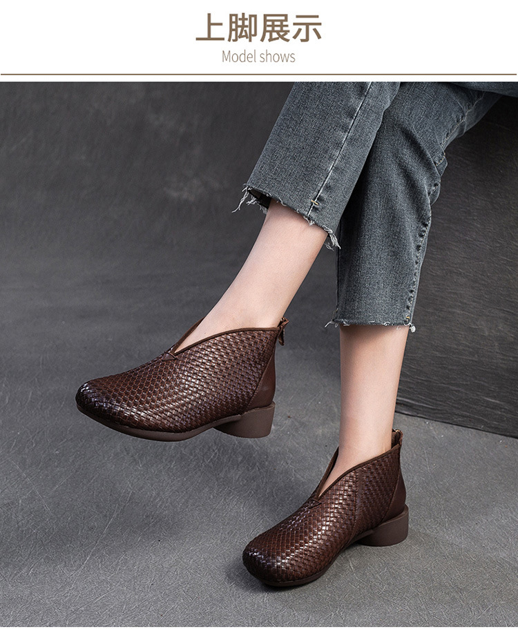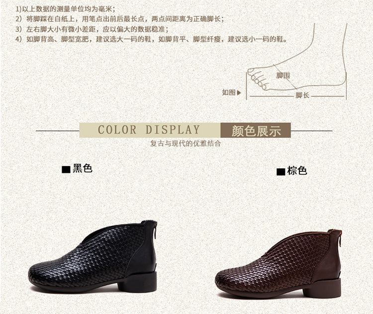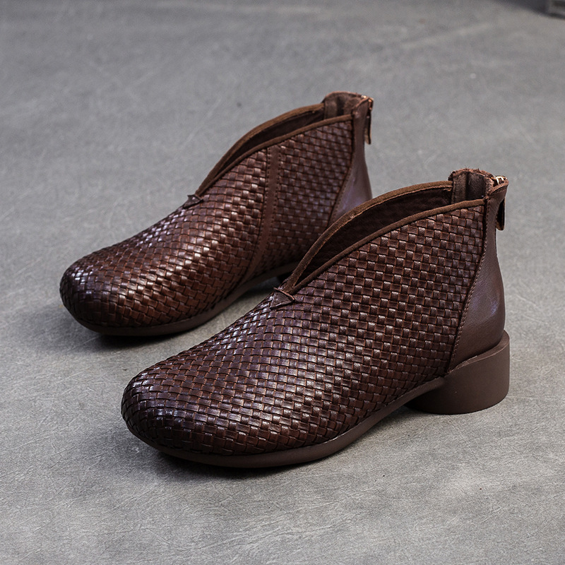 Giày bốt nữ dáng thấp, kiểu dệt tay, lấy cảm hứng từ phong cách cổ điển. Sản phẩm có thiết kế ôm chân vừa vặn, phần gót thấp giúp nâng đỡ bàn chân một cách thoải mái trong mọi hoạt động thường ngày. Đây là mẫu giày dễ dàng kết hợp với nhiều loại trang phục khác nhau như quần jeans, váy hay quần âu. Bạn có thể sử dụng như một đôi giày đi làm, đi chơi hoặc dạo phố. | Tên sản phẩm: Giày Cao Gót Nữ Hàng Mùa Xuân Thu Đông Phục Cổ Cổ Điển - Giày Dép Nữ | Mã sản phẩm: B2455 - Giá: 2.670.000đ | Mã nhà sản xuất: SHNTEZ-G06Hình ảnh sản phẩm