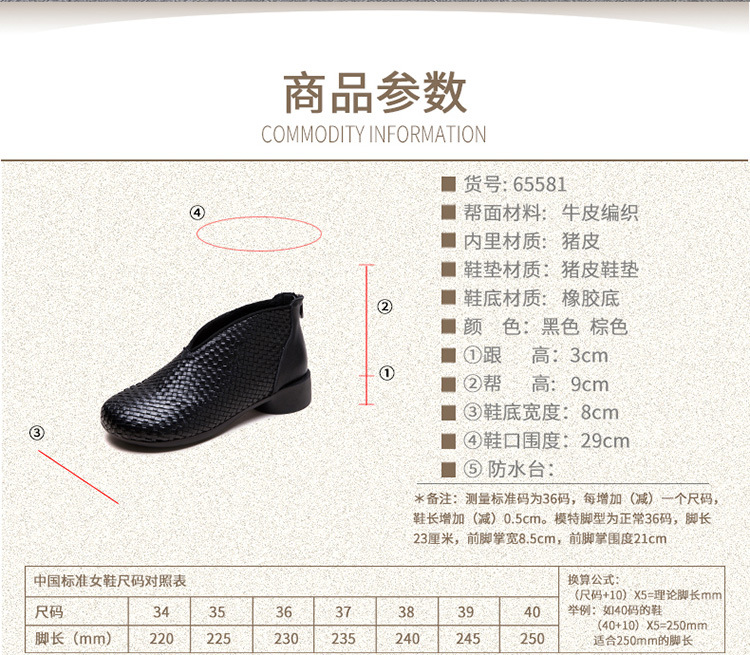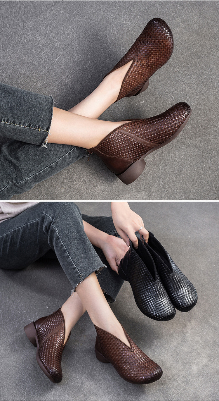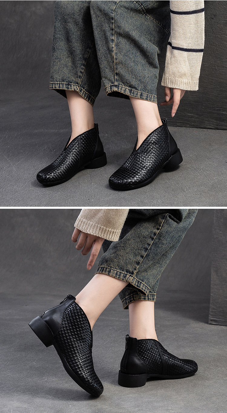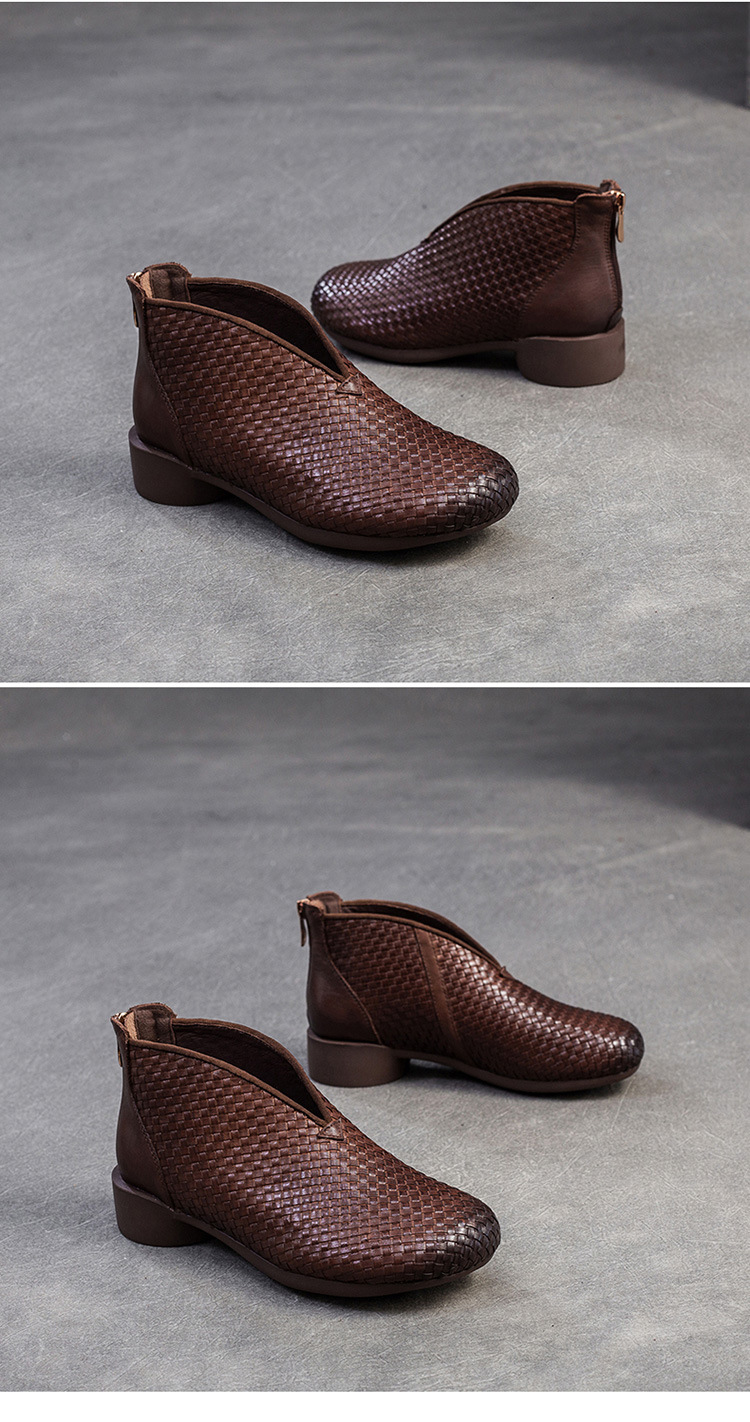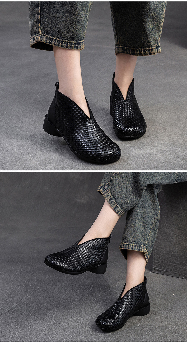 Giày bốt nữ dáng thấp, kiểu dệt tay, lấy cảm hứng từ phong cách cổ điển. Sản phẩm có thiết kế ôm chân vừa vặn, phần gót thấp giúp nâng đỡ bàn chân một cách thoải mái trong mọi hoạt động thường ngày. Đây là mẫu giày dễ dàng kết hợp với nhiều loại trang phục khác nhau như quần jeans, váy hay quần âu. Bạn có thể sử dụng như một đôi giày đi làm, đi chơi hoặc dạo phố. | Tên sản phẩm: Giày Cao Gót Nữ Hàng Mùa Xuân Thu Đông Phục Cổ Cổ Điển - Giày Dép Nữ | Mã sản phẩm: B2455 - Giá: 2.670.000đ | Mã nhà sản xuất: SHNTEZ-G06Hình ảnh sản phẩm