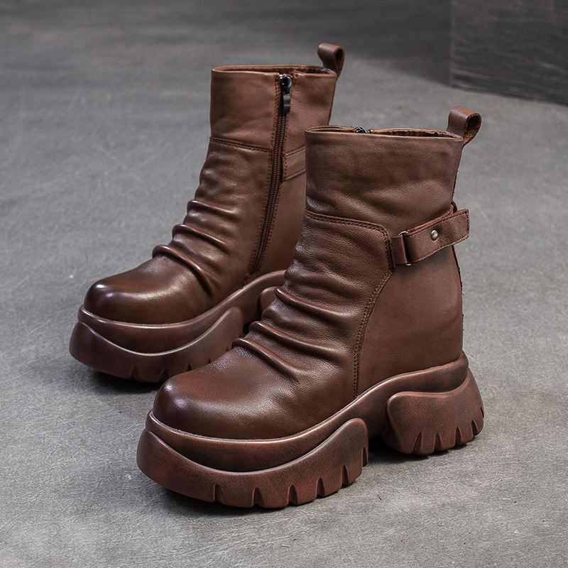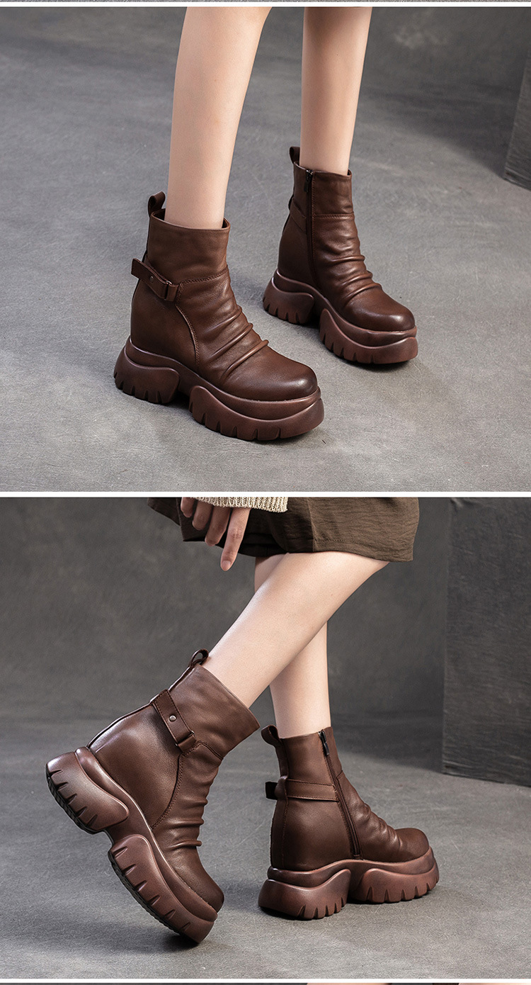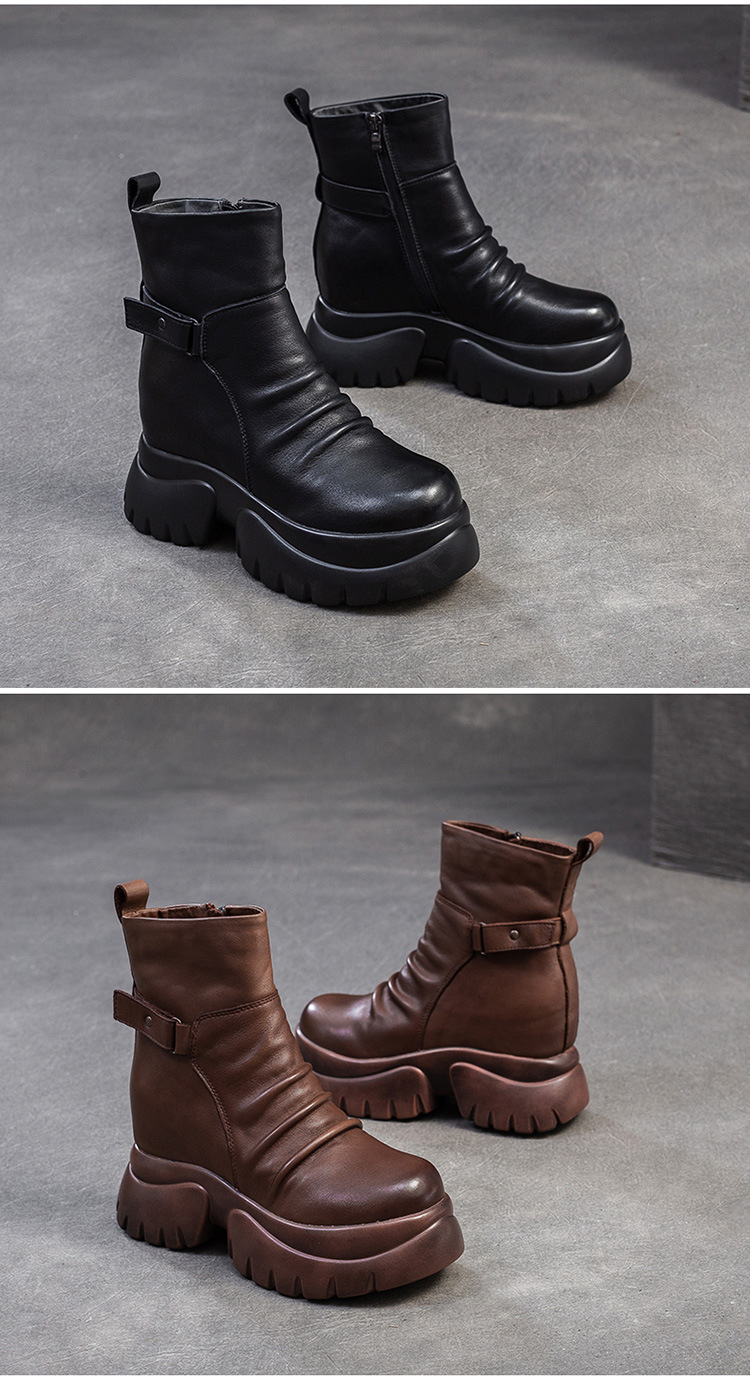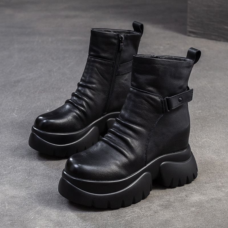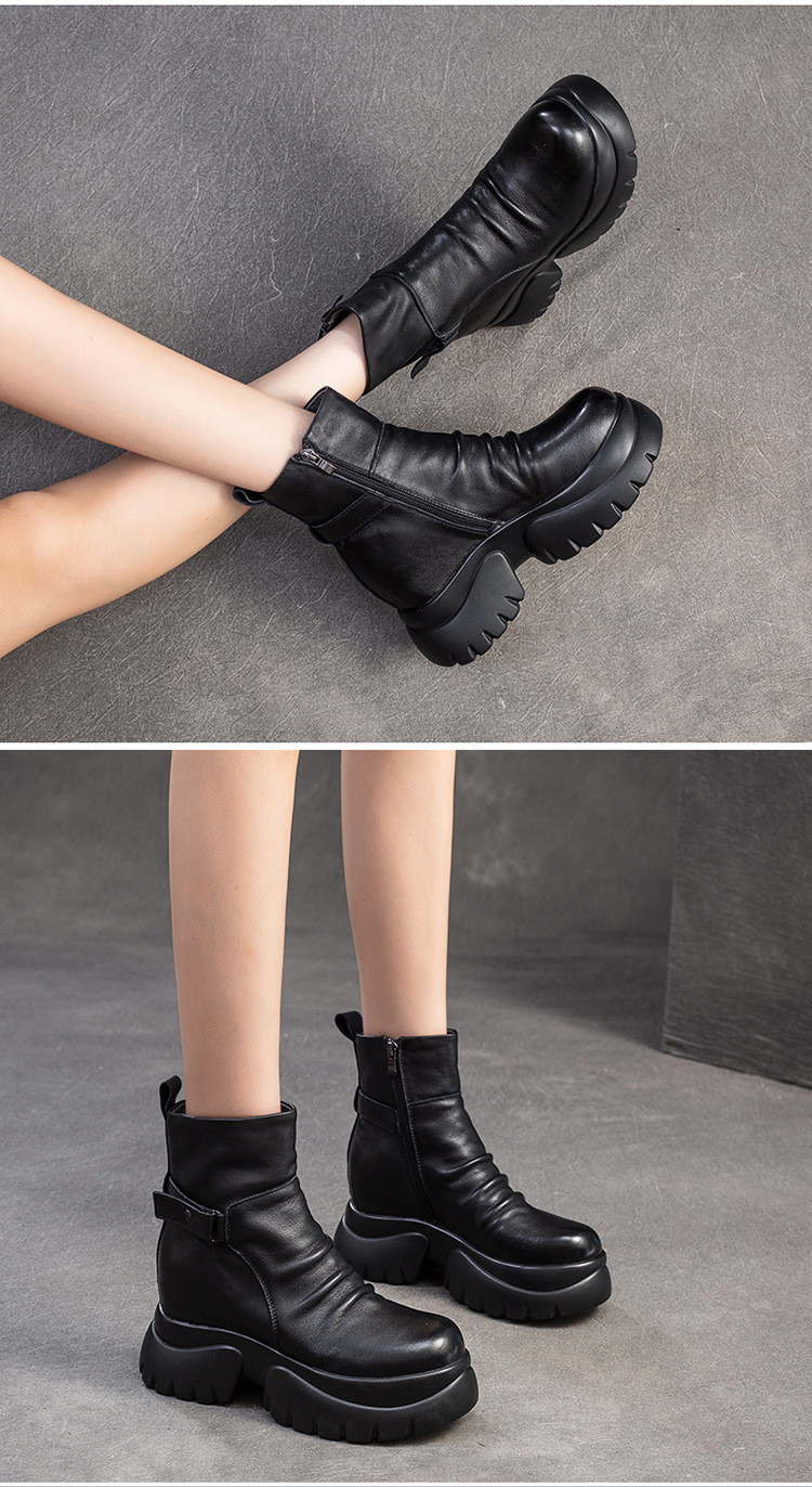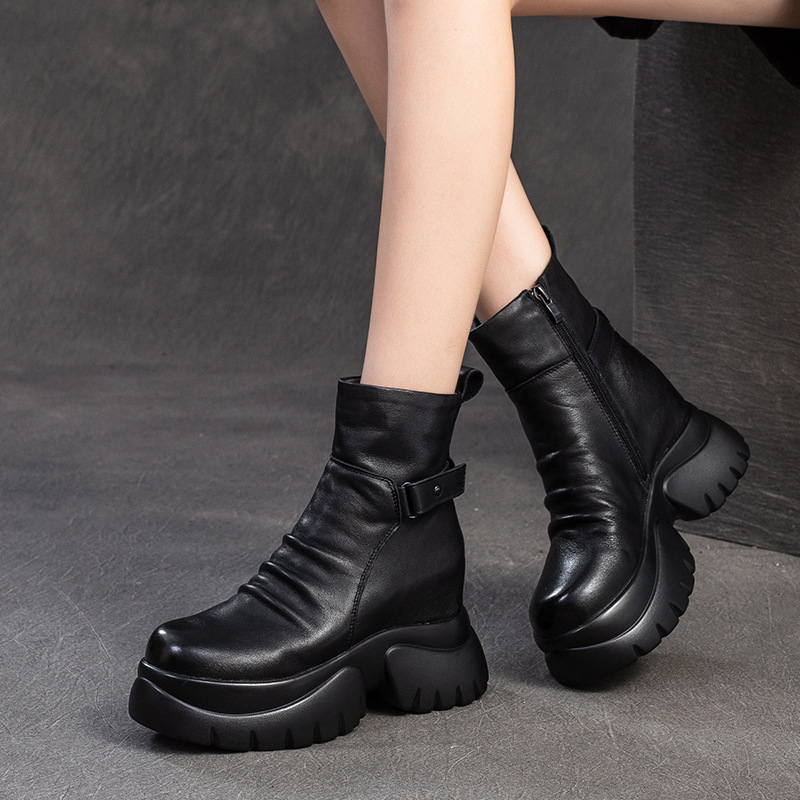 Giày bốt mùa đông kiểu dáng trẻ trung, phù hợp cho các bạn gái có chiều cao khiêm tốn. Sản phẩm có phần đế dày và kiểu đế dốc mềm mại, giúp tôn dáng một cách tự nhiên và thoải mái khi di chuyển. Thiết kế cổ thấp dễ dàng phối hợp với nhiều trang phục như quần jeans, váy hay legging. Bạn có thể sử dụng hàng ngày để đi làm, đi chơi hay dự tiệc, mang đến cho bạn sự năng động và cá tính. | Tên sản phẩm: Giày Boot Martin Nữ Tăng Chiều Cao Đế Xuồng Đế Cao Hàng Mùa Xuân Thu Đông - Giày Dép Nữ | Mã sản phẩm: B2491 - Giá: 2.580.000đ | Mã nhà sản xuất: SHNTEZ-G06Hình ảnh sản phẩm