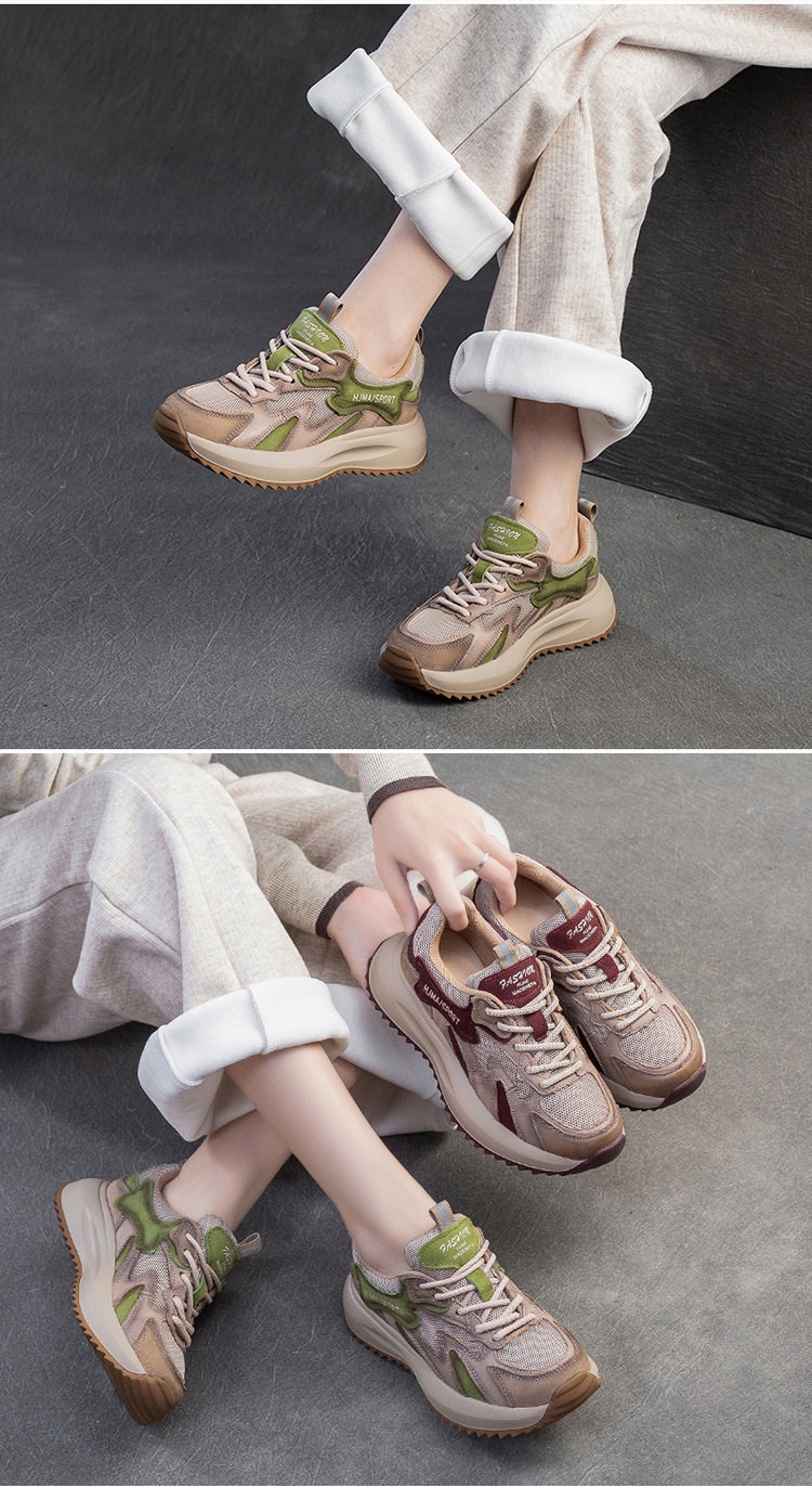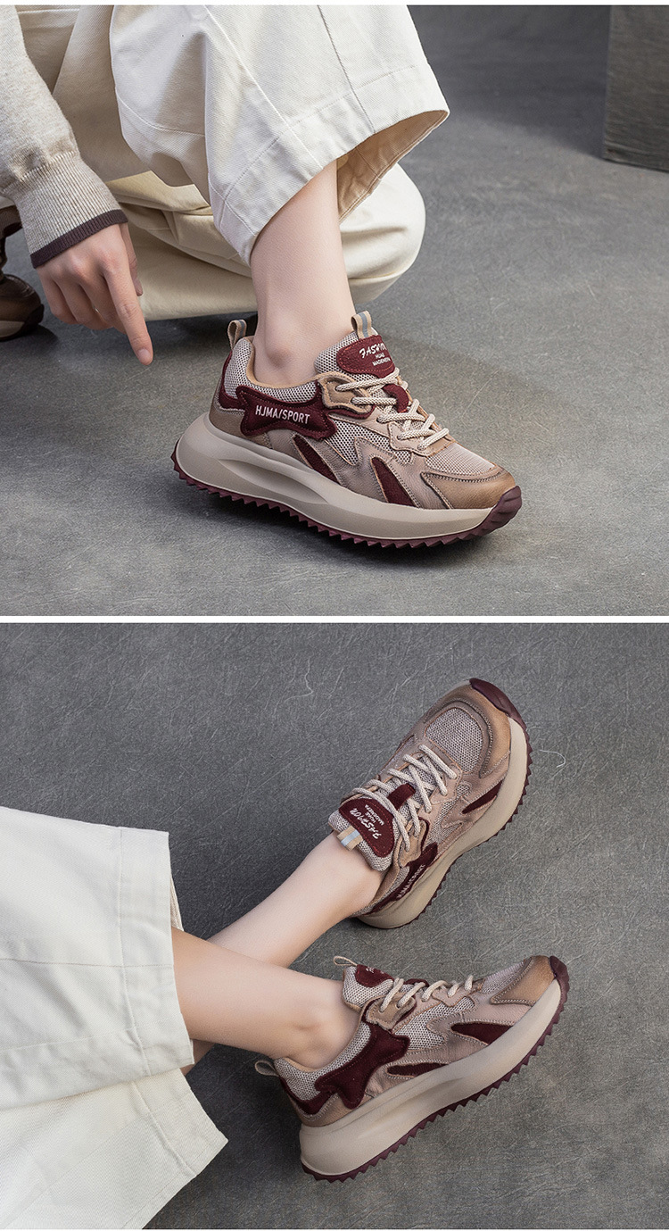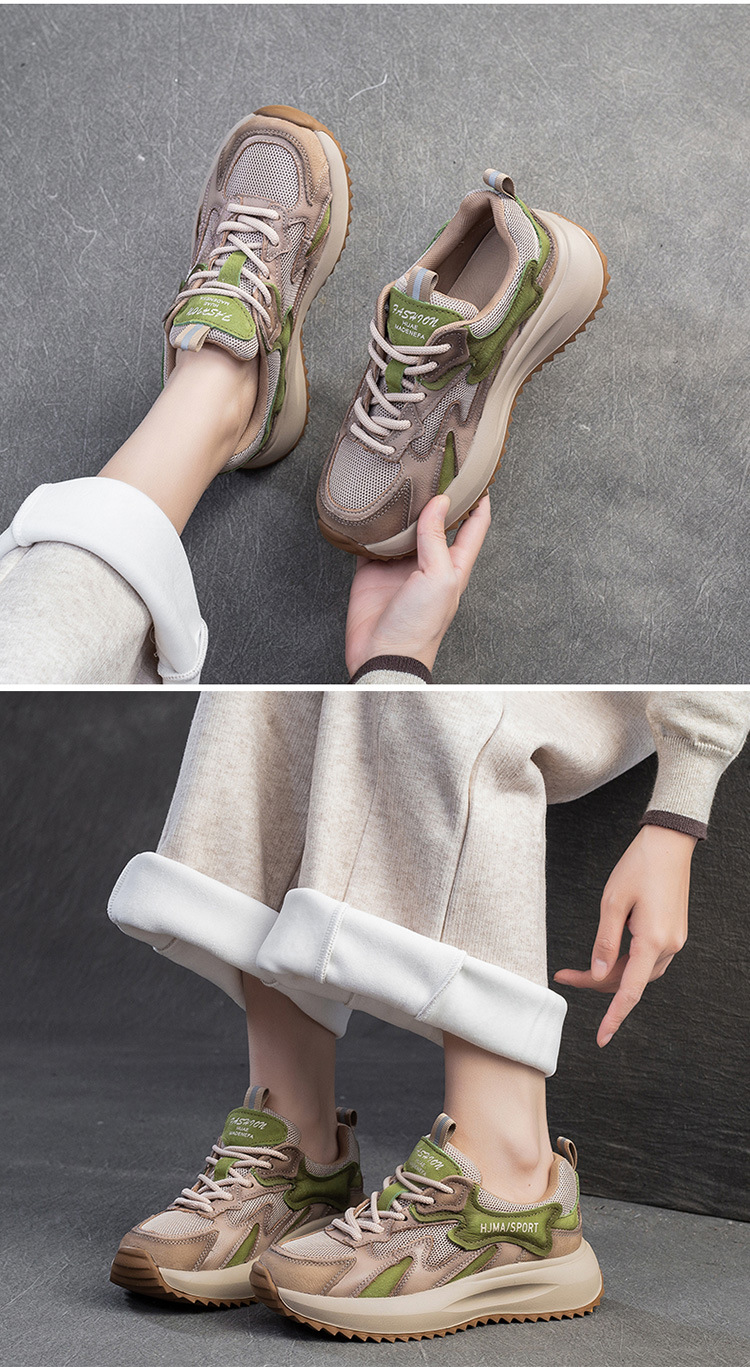 Đôi giày thể thao nữ này có mặt trước bằng vải lưới thoáng khí, kết hợp cùng phần đế dày êm ái. Kiểu dáng thể thao phối màu nổi bật, phù hợp cho nhiều dịp sử dụng khác nhau. Sản phẩm có dây cột phía trước giúp điều chỉnh ôm vừa chân. Bạn có thể dùng để đi tập thể dục, dạo phố hay kết hợp với các trang phục thường ngày. Cách sử dụng rất đơn giản, chỉ cần xỏ chân vào và cột dây là đã có ngay đôi giày thoải mái. | Tên sản phẩm: Giày Thể Thao Nữ Đế Cao Hàng Mùa Xuân Thu Đông - Giày Dép Nữ | Mã sản phẩm: B2502 - Giá: 1.420.000đ | Mã nhà sản xuất: SHDU-G04Hình ảnh sản phẩm