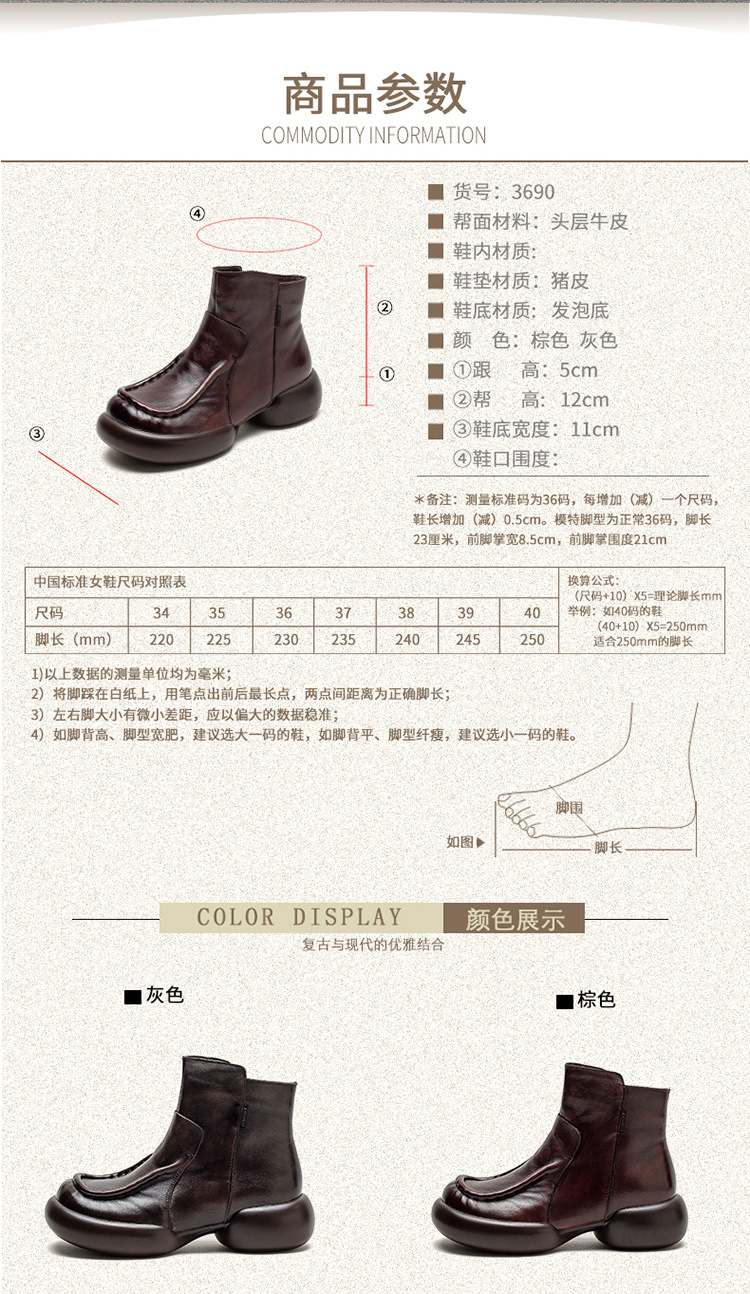 Đôi bốt cổ thấp dành cho nữ, kiểu dáng mang phong cách hoài cổ, thích hợp mặc vào mùa thu đông. Sản phẩm được làm từ chất liệu da bò mềm mại bền đẹp. Bên trong có lớp lót bằng vải mềm giúp giữ ấm tốt cho đôi chân. Kiểu dáng thời trang, dễ dàng kết hợp với nhiều loại trang phục như quần jeans, váy hay quần tây. Bạn có thể sử dụng hàng ngày khi đi làm, đi chơi hoặc dạo phố. | Tên sản phẩm: Giày Boot Cổ Thấp Nữ Chất Liệu Da Bò Hàng Mùa Xuân Thu Đông Phục Cổ Cổ Điển - Giày Dép Nữ | Mã sản phẩm: B2551 - Giá: 2.670.000đ | Mã nhà sản xuất: SHNTEZ-G06Hình ảnh sản phẩm