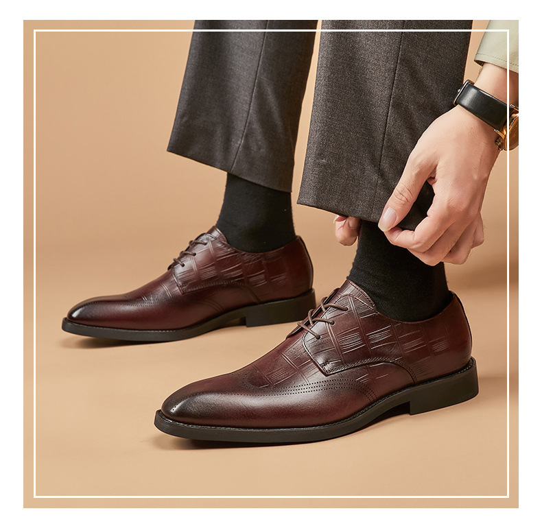 Giày da thật dành cho nam, kiểu dáng buộc dây cổ điển. Mũi giày vuông nhỏ tạo nét lịch sự, phù hợp cho công sở. Trên thân giàu có các họa tiết chạm khắc tinh xảo, làm tăng thêm vẻ đẹp tinh tế. Sản phẩm được làm từ lớp da bò mềm mại, đem lại cảm giác dễ chịu khi mang. Bạn có thể dùng giày để kết hợp cùng trang phục đi làm hoặc những dịp cần sự chỉn chu. | Tên sản phẩm: Giày Da Nam Chất Liệu Da Bò Họa Tiết Hoa Hàng Mùa Hè - Giày Dép Nam | Mã sản phẩm: B2588 - Giá: 1.540.000đ | Mã nhà sản xuất: WEDSH-G04Hình ảnh sản phẩm