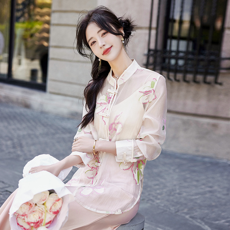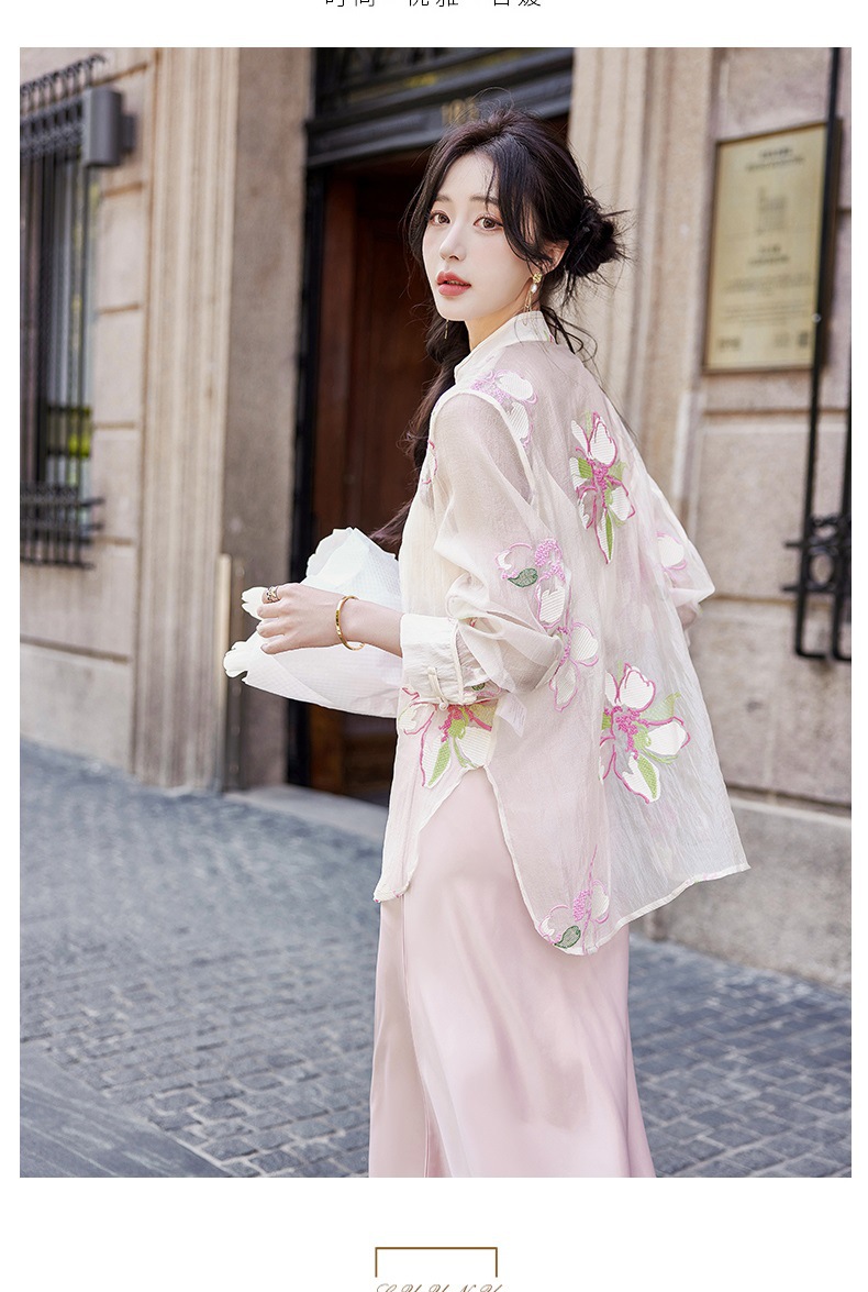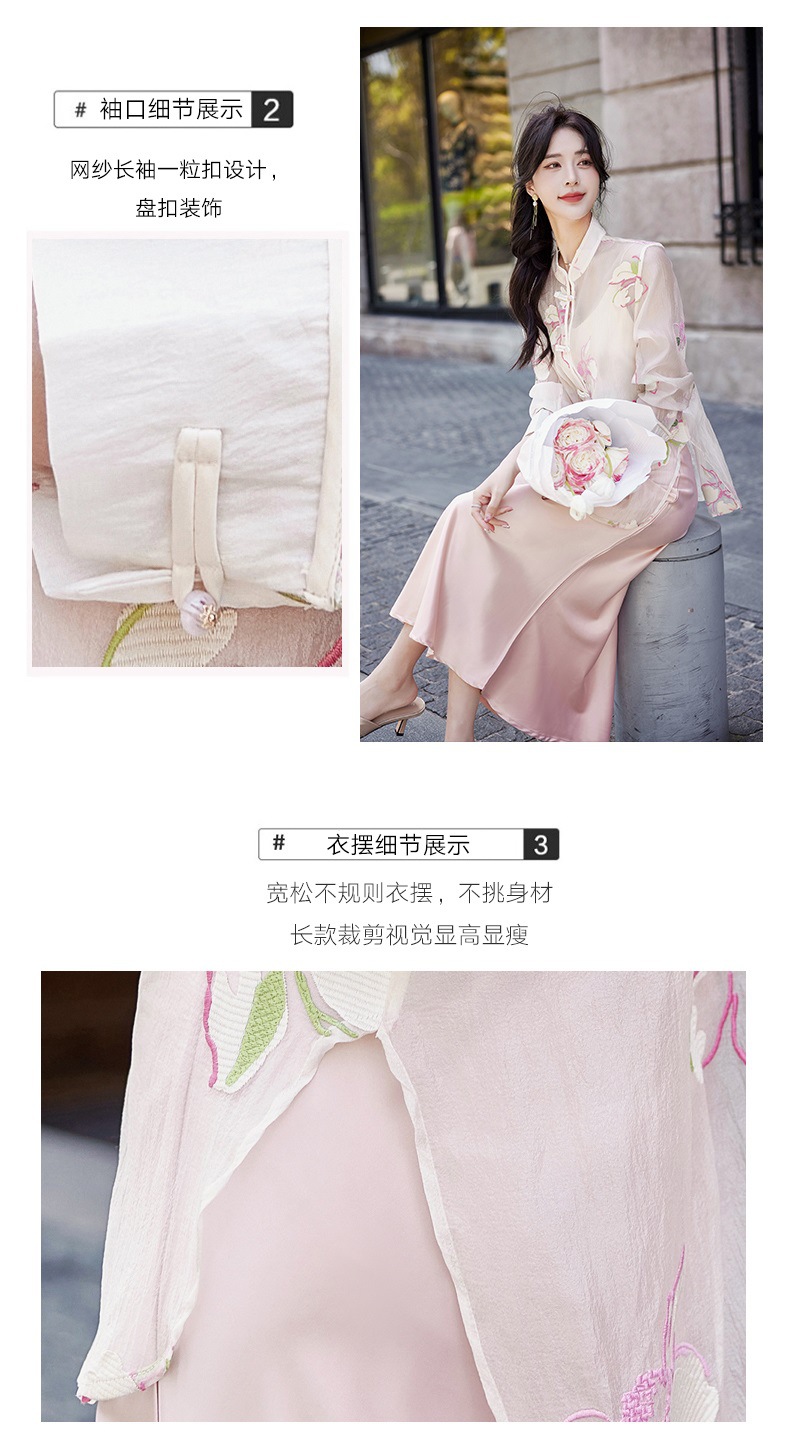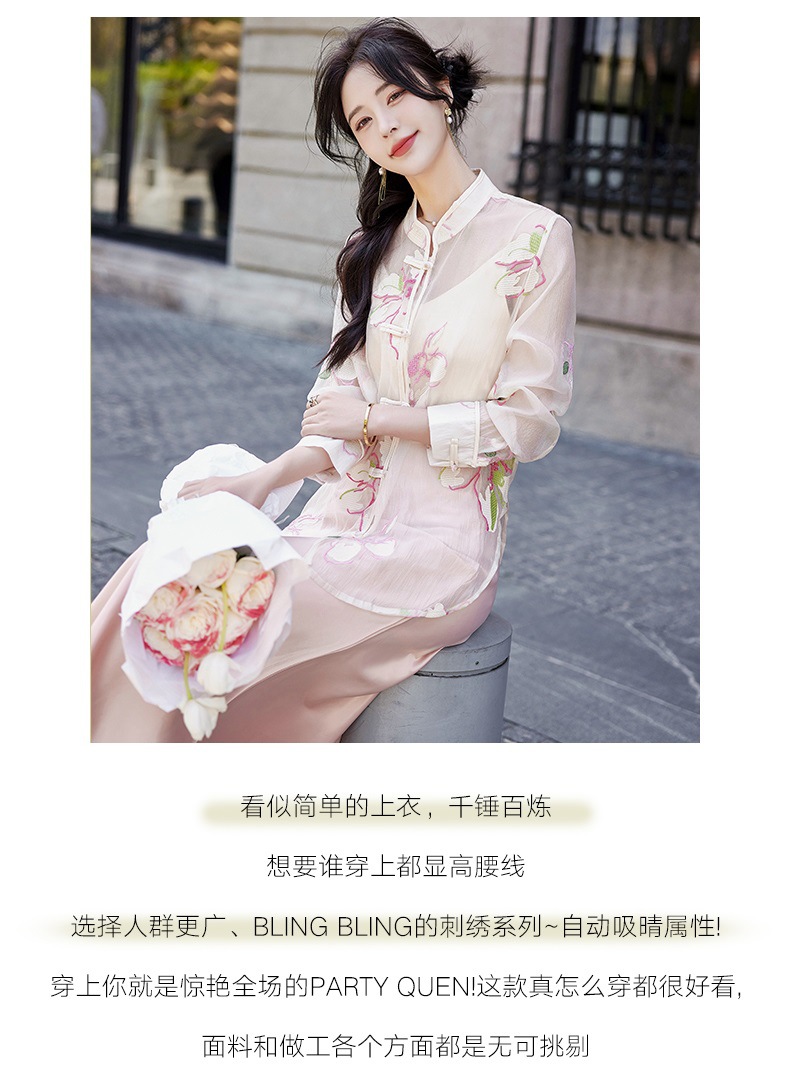 Áo khoác nữ dáng dài, mang phong cách hiện đại pha trộn nét xưa. Chất vải mỏng nhẹ, thoáng mát, thích hợp mặc vào mùa hè. Áo có đường thêu tinh xảo và dệt hoa văn nổi trên nền vải hơi trong. Cổ áo kết hợp khuy cài dạng nút thắt truyền thống. Sản phẩm có thể mặc như áo khoác mỏng che nắng bên ngoài, hoặc mặc phối cùng đầm, quần như áo sơ mi. Giúp người mặc thêm phần dịu dàng và nổi bật. | Tên sản phẩm: Áo Khoác Nữ Thêu Họa Tiết Hoa Hàng Mùa Hè - Thời Trang Nữ | Mã sản phẩm: B2602 - Giá: 1.680.000đ | Mã nhà sản xuất: WODIG-G05Hình ảnh sản phẩm