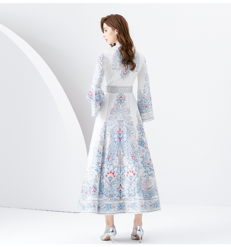 Chiếc đầm này mang phong cách cổ điển châu Âu, điểm nhấn là cổ dựng thanh lịch cùng hàng khuy cài tinh tế dọc thân. Kiểu dáng ôm dài người tôn lên đường nét cơ thể. Họa tiết in trên vải độc đáo, tạo nên vẻ đẹp có hồn riêng biệt. Sản phẩm phù hợp cho những buổi tiệc hoặc sự kiện. Mặc cùng giày cao gót và phụ kiện đơn giản để hoàn thiện bộ trang phục. | Tên sản phẩm: Váy Đầm Liền Thân Nữ Dáng Ôm Họa Tiết Hoa Phong Cách Âu Mỹ - Thời Trang Nữ | Mã sản phẩm: B2621 - Giá: 980.000đ | Mã nhà sản xuất: GUDG-G03Hình ảnh sản phẩm
