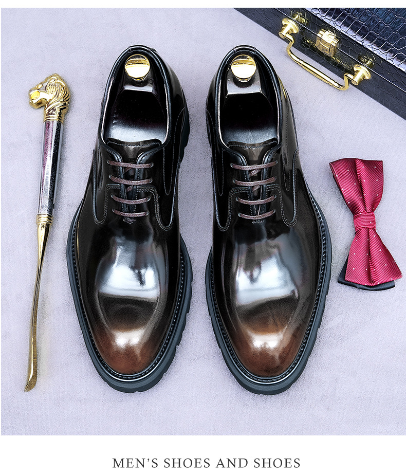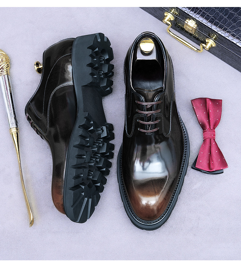 Giày da bò thật dành cho nam, thiết kế kiểu dáng công sở và thoải mái. Sản phẩm có phần đế được tạo kiểu giúp tăng chiều cao lên bốn phân một cách tự nhiên. Bề mặt giày được phủ một lớp hoàn thiện bóng mịn, tạo điểm nhấn. Bạn có thể dễ dàng phối cùng trang phục đi làm hoặc khi gặp mặt. Sử dụng và lau chùi nhẹ nhàng bằng vải mềm để giữ giày luôn sáng bóng. | Tên sản phẩm: Giày Da Nam Chất Liệu Da Bò Cao 4cm Tăng Chiều Cao - Giày Dép Nam | Mã sản phẩm: B2628 - Giá: 2.310.000đ | Mã nhà sản xuất: ASTYCH-G05Hình ảnh sản phẩm