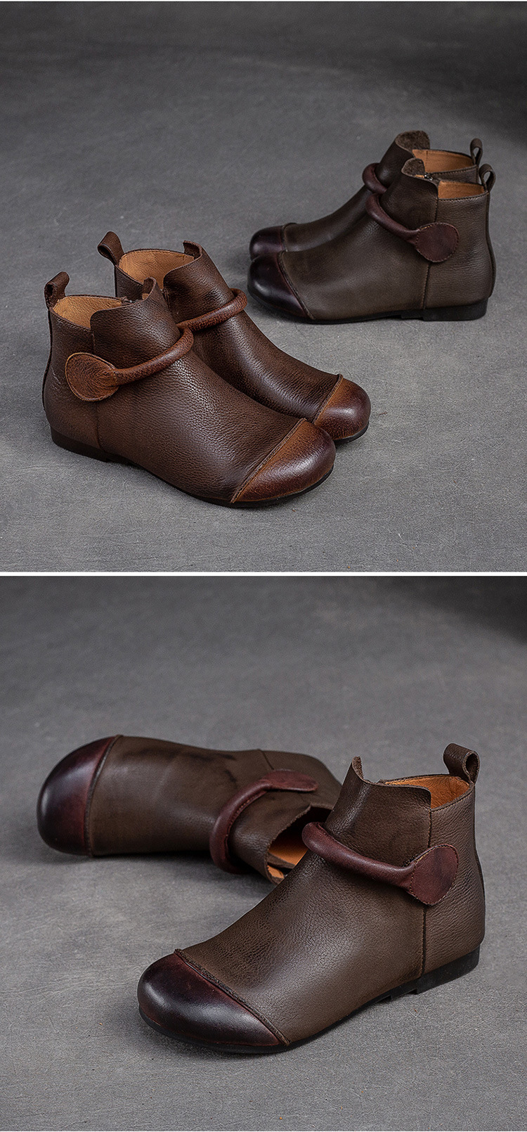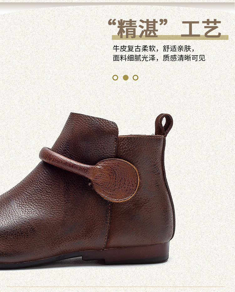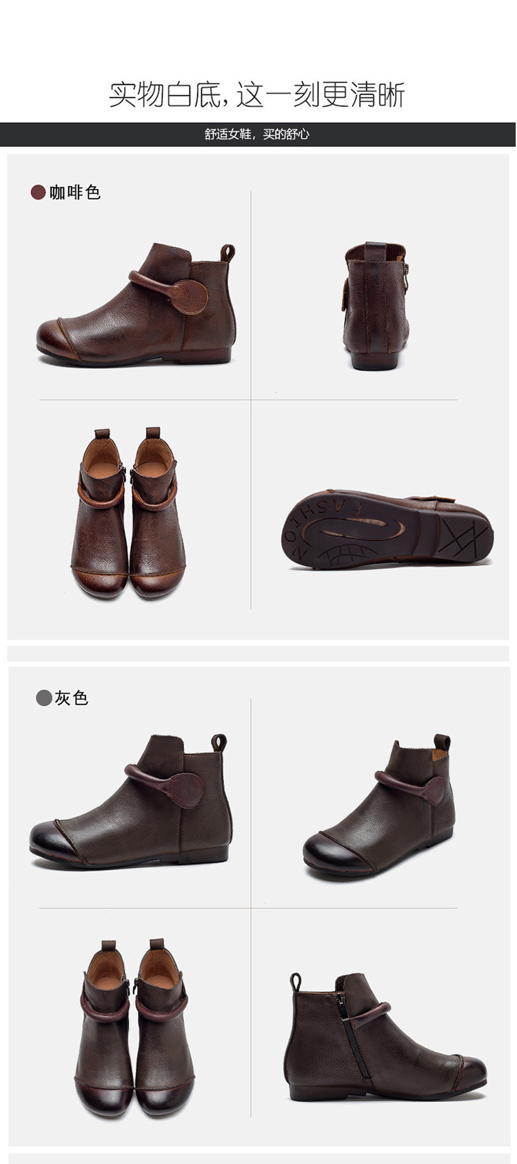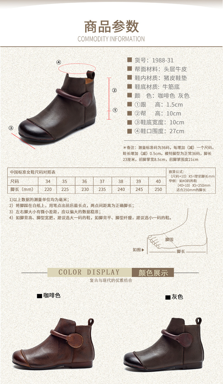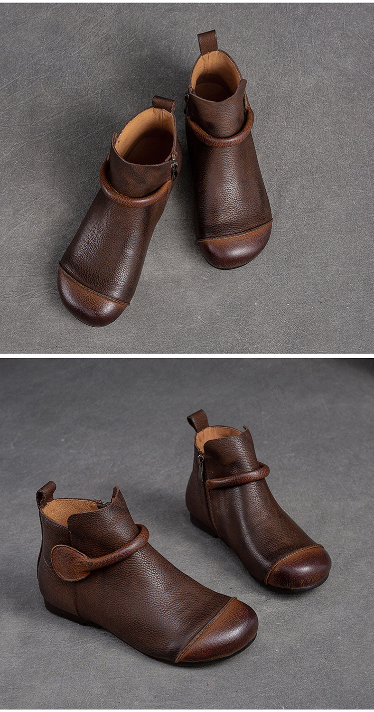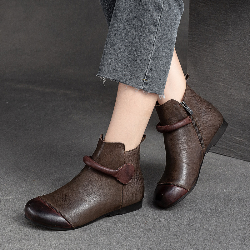 Đôi bốt nữ thiết kế theo phong cách cổ điển, phù hợp mang trong tiết trời thu đông. Sản phẩm được làm từ chất liệu da thật bền đẹp, phần thân bốt có khóa kéo bên hông giúp việc mang vào tháo ra dễ dàng. Kiểu dáng đơn giản với mũi giày tròn và đế bằng, tạo cảm giác thoải mái khi di chuyển cả ngày. Đây là mẫu giày dễ kết hợp với nhiều trang phục khác nhau. | Tên sản phẩm: Giày Bệt Nữ Chất Liệu Da Bò Mũi Tròn Hàng Mùa Xuân Thu Đông Phục Cổ Cổ Điển - Giày Dép Nữ | Mã sản phẩm: B2638 - Giá: 2.480.000đ | Mã nhà sản xuất: SHNTEZ-G05Hình ảnh sản phẩm