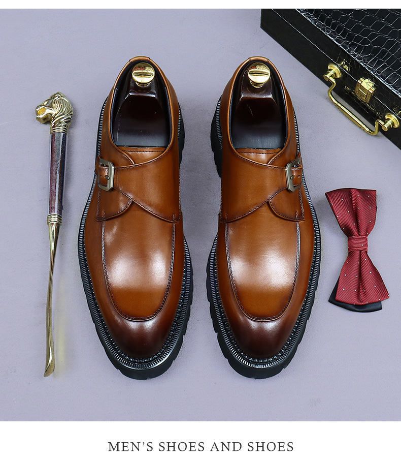Đôi giày da thật dành cho nam, kiểu dáng cổ điển với phần mũi tròn. Sản phẩm được làm thủ công tinh tế, điểm nhấn là khóa móc kim loại phía trước tạo nên phong cách lịch lãm. Chất liệu da bò mềm mại, bền đẹp theo thời gian. Thiết kế này phù hợp để mang trong các dịp làm việc hay sự kiện. Cách sử dụng đơn giản, chỉ cần gài khóa móc để điều chỉnh độ ôm vừa vặn với chân. | Tên sản phẩm: Giày Da Nam Chất Liệu Da Bò Mũi Tròn Phục Cổ Cổ Điển - Giày Dép Nam | Mã sản phẩm: B2640 - Giá: 2.450.000đ | Mã nhà sản xuất: ASTYCH-G05Hình ảnh sản phẩm