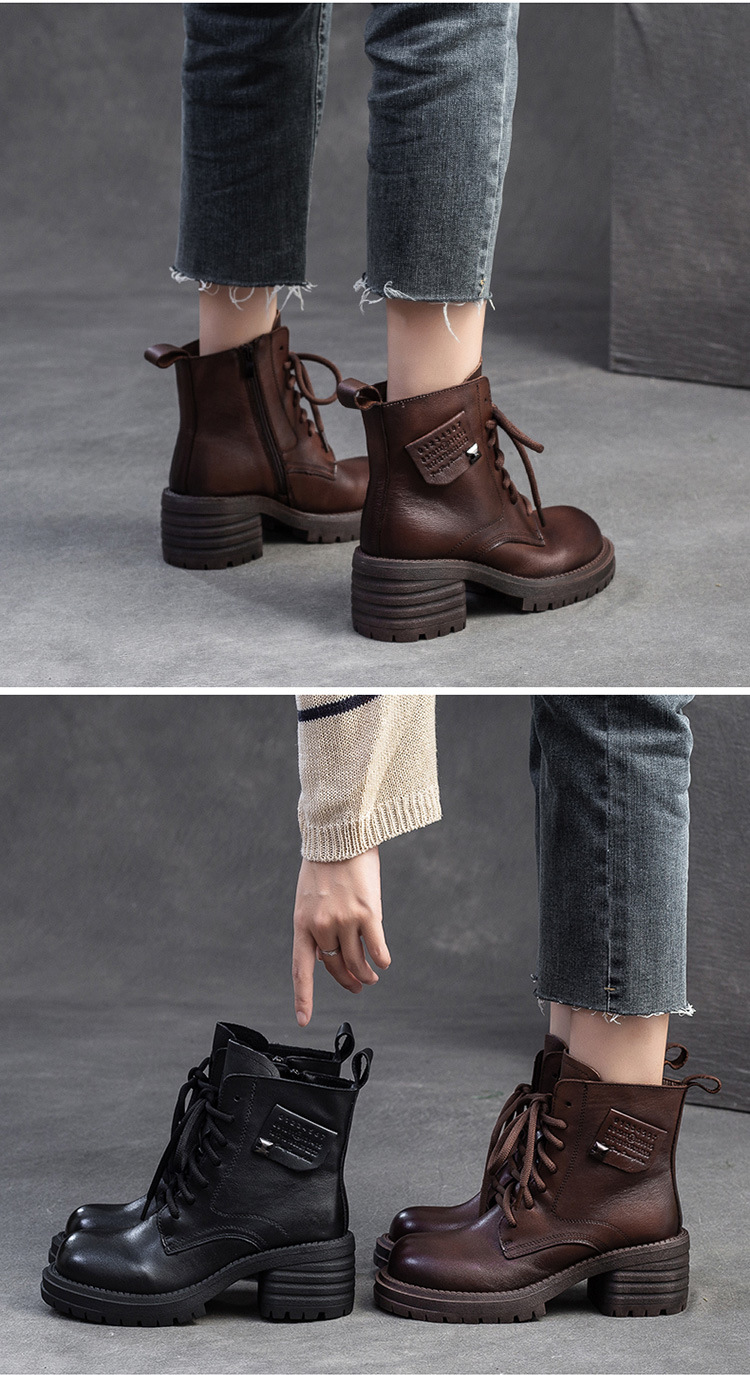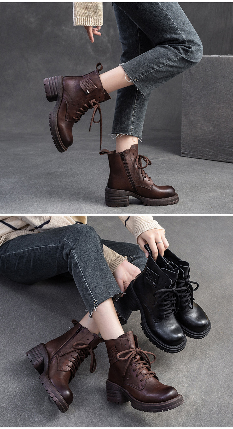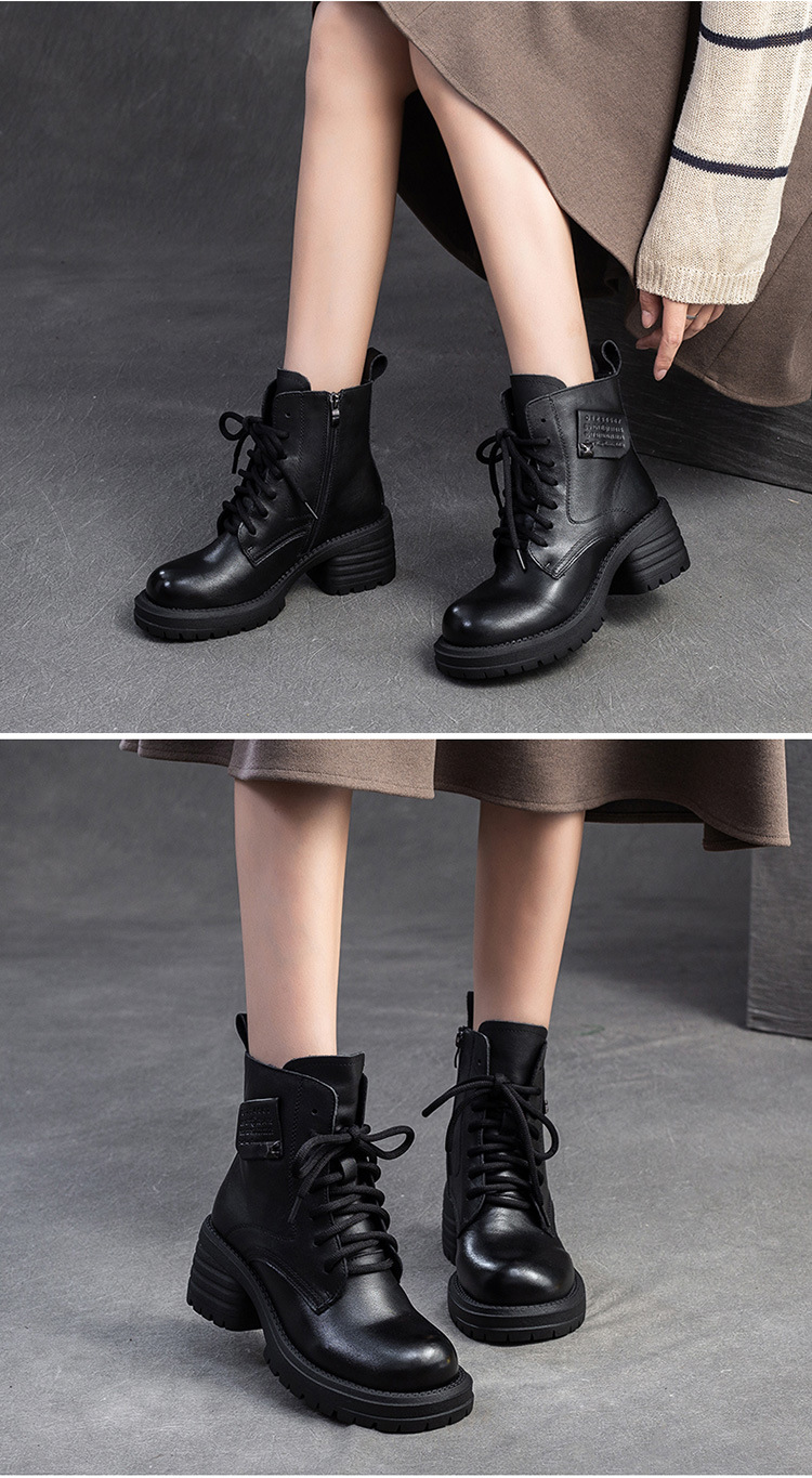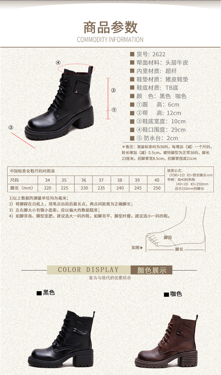 Đôi bốt cổ thấp này mang phong cách Anh cổ điển, được làm từ chất liệu da bò mềm mại và bền đẹp. Kiểu dáng cổ điển kết hợp đế dày giúp tôn dáng đôi chân một cách tinh tế. Sản phẩm phù hợp để phối cùng nhiều loại trang phục như quần jeans hay váy. Bạn có thể sử dụng hàng ngày, lau sạch bề mặt bằng khăn mềm ẩm để giữ giày luôn sạch đẹp. | Tên sản phẩm: Giày Boot Martin Nữ Chất Liệu Da Bò Đế Cao Hàng Mùa Xuân Thu Đông - Giày Dép Nữ | Mã sản phẩm: B2646 - Giá: 2.580.000đ | Mã nhà sản xuất: SHNTEZ-G06Hình ảnh sản phẩm