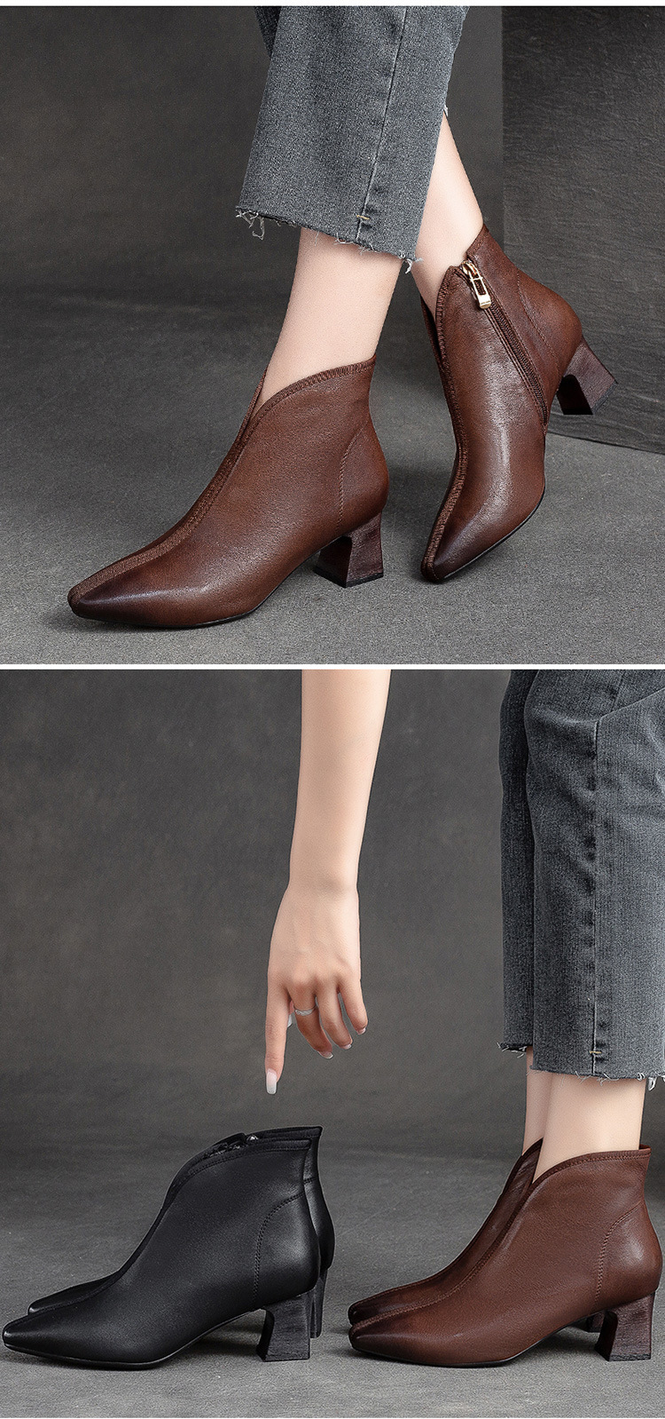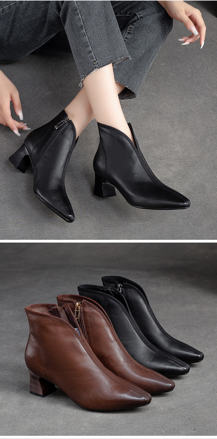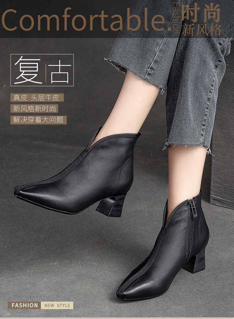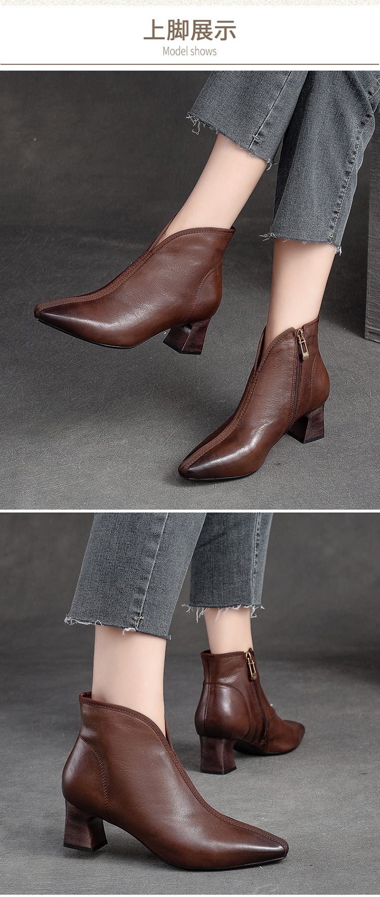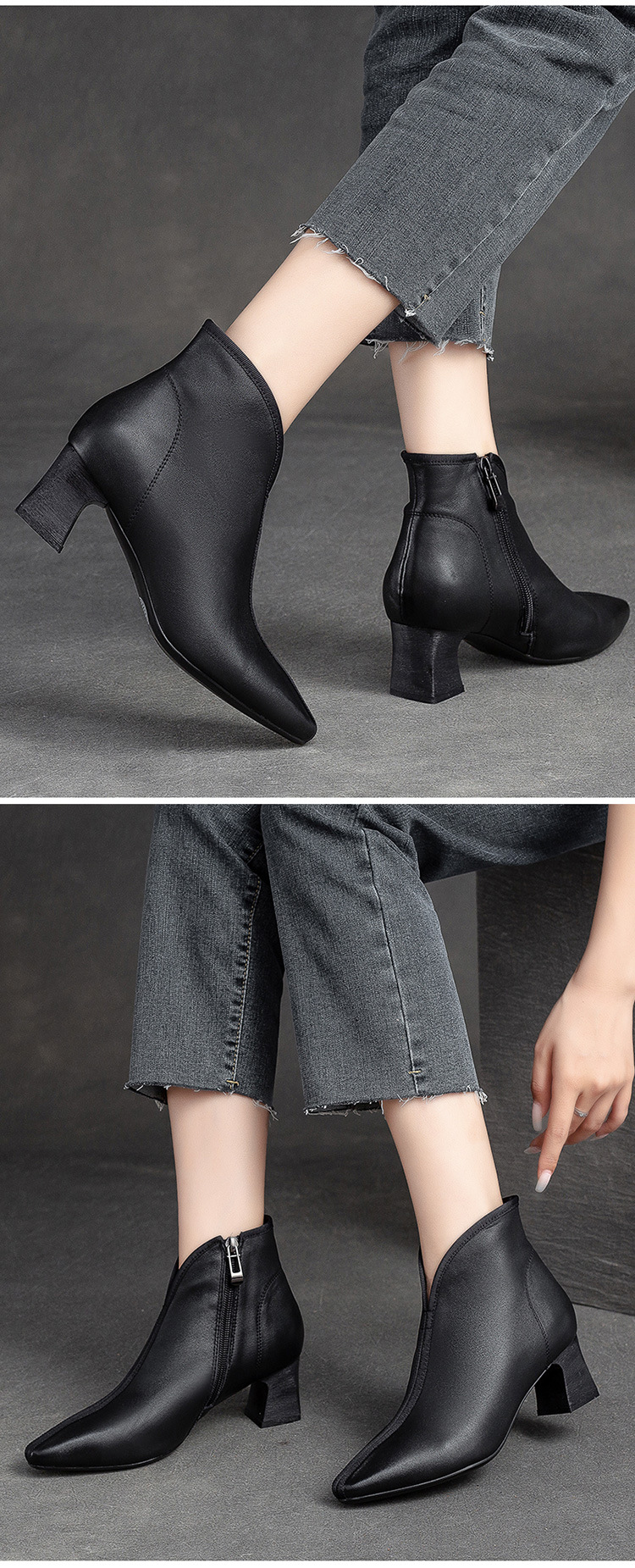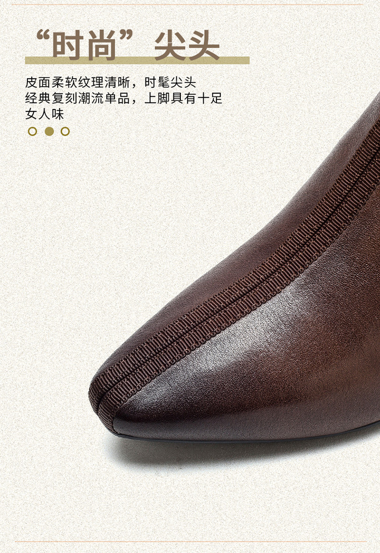 Giày bốt nữ thiết kế gót thấp thanh thoát, mũi nhọn tạo dáng quý phái. Kiểu dáng cổ điển với hiệu ứng màu da đánh bóng tinh tế, dễ dàng kết hợp cùng nhiều trang phục khác nhau. Chất liệu da thật tự nhiên mang đến sự thoải mái và bền đẹp. Sản phẩm thích hợp mang trong tiết trời thu đông, phù hợp cho cả những dịp đi làm hay dạo phố. Chỉ cần vệ sinh nhẹ bằng khăn mềm sau khi sử dụng. | Tên sản phẩm: Giày Cao Gót Nữ Chất Liệu Da Bò Mũi Nhọn Hàng Mùa Xuân Thu Đông Phục Cổ Cổ Điển - Giày Dép Nữ | Mã sản phẩm: B2647 - Giá: 2.480.000đ | Mã nhà sản xuất: SHNTEZ-G05Hình ảnh sản phẩm