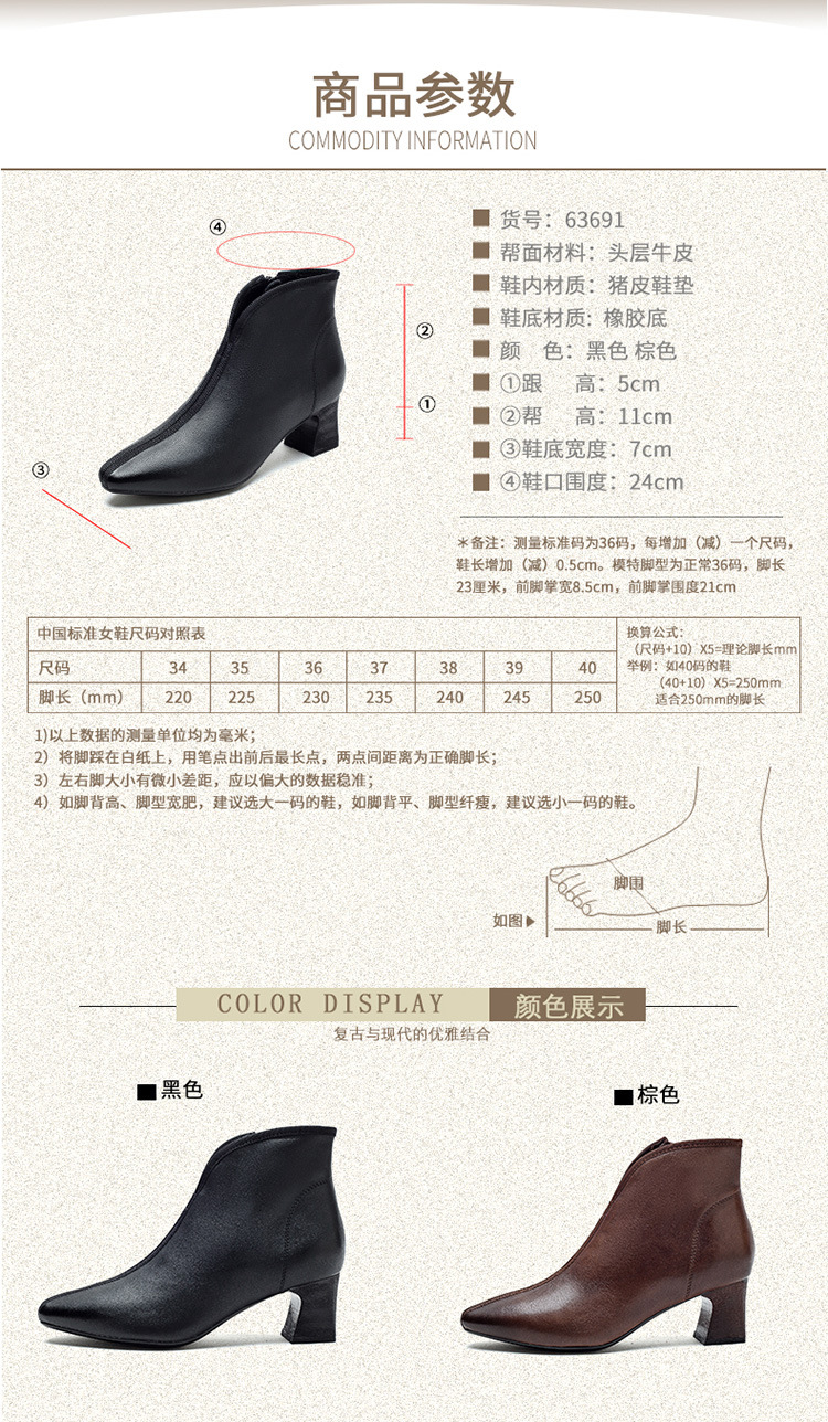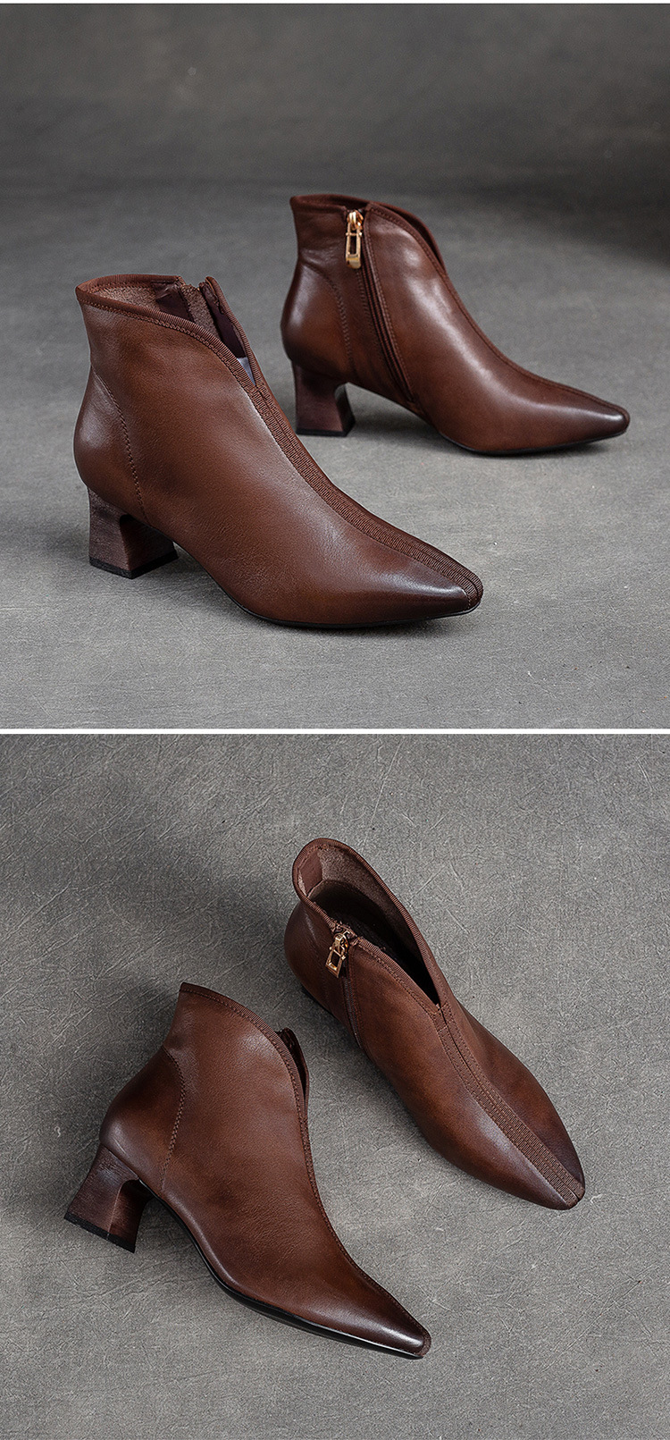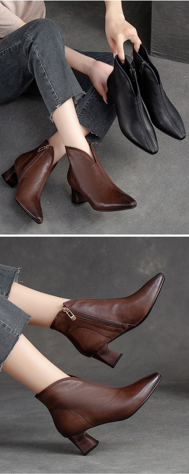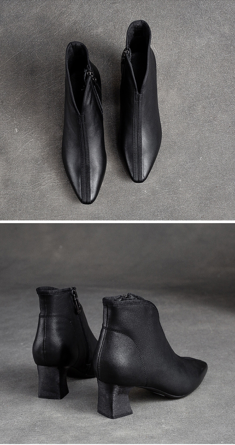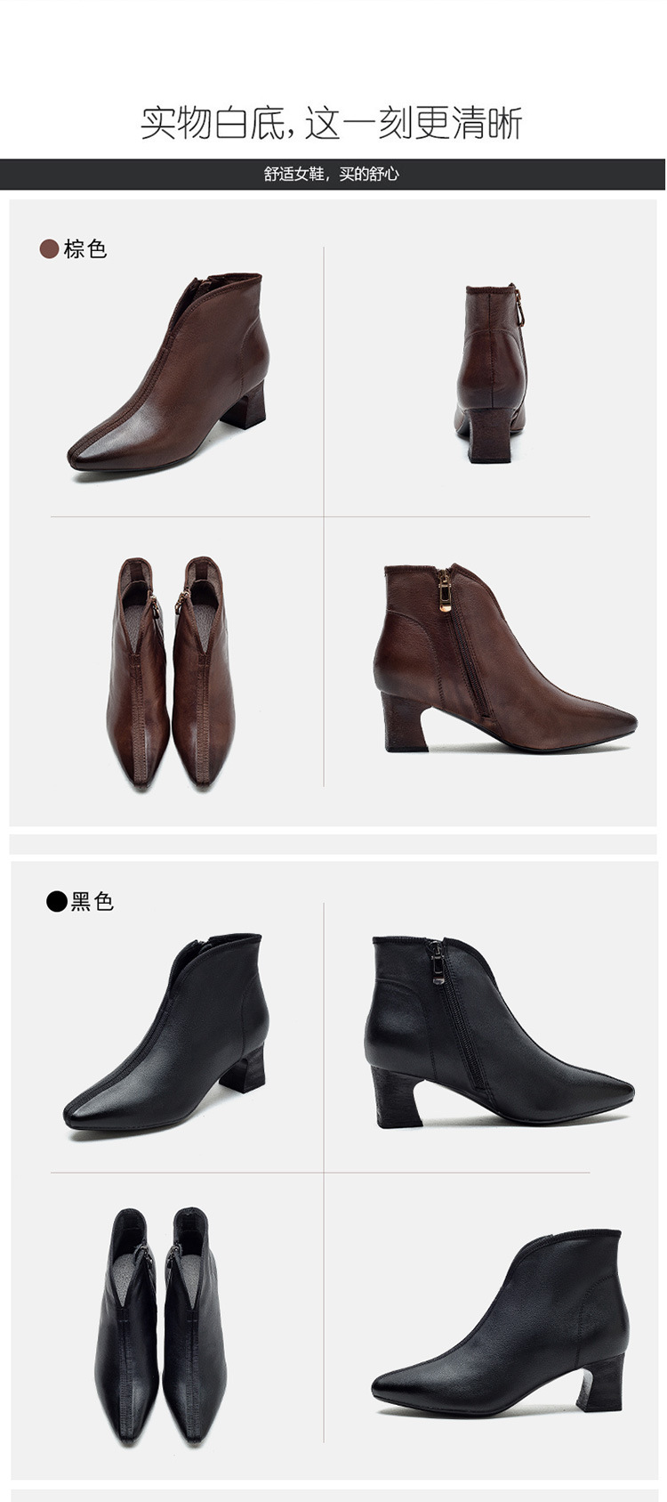 Giày bốt nữ thiết kế gót thấp thanh thoát, mũi nhọn tạo dáng quý phái. Kiểu dáng cổ điển với hiệu ứng màu da đánh bóng tinh tế, dễ dàng kết hợp cùng nhiều trang phục khác nhau. Chất liệu da thật tự nhiên mang đến sự thoải mái và bền đẹp. Sản phẩm thích hợp mang trong tiết trời thu đông, phù hợp cho cả những dịp đi làm hay dạo phố. Chỉ cần vệ sinh nhẹ bằng khăn mềm sau khi sử dụng. | Tên sản phẩm: Giày Cao Gót Nữ Chất Liệu Da Bò Mũi Nhọn Hàng Mùa Xuân Thu Đông Phục Cổ Cổ Điển - Giày Dép Nữ | Mã sản phẩm: B2647 - Giá: 2.480.000đ | Mã nhà sản xuất: SHNTEZ-G05Hình ảnh sản phẩm