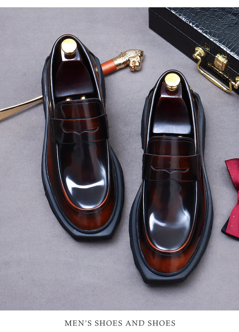 Giày da thật dành cho nam, kiểu dáng cổ điển với mũi tròn và đế xuồng dày tạo cảm giác thoải mái, cân đối. Chất liệu da bò mềm mại, bề mặt bóng nhẹ nhàng dễ phối đồ. Sản phẩm phù hợp cho cả những dịp làm việc hay dạo phố thư giãn. Chỉ cần lau sạch nhẹ bằng vải khô sau khi sử dụng để giữ giày luôn sạch sẽ. | Tên sản phẩm: Giày Da Nam Chất Liệu Da Bò Mũi Tròn Tăng Chiều Cao Đế Cao - Giày Dép Nam | Mã sản phẩm: B2658 - Giá: 2.310.000đ | Mã nhà sản xuất: ASTYCH-G05Hình ảnh sản phẩm