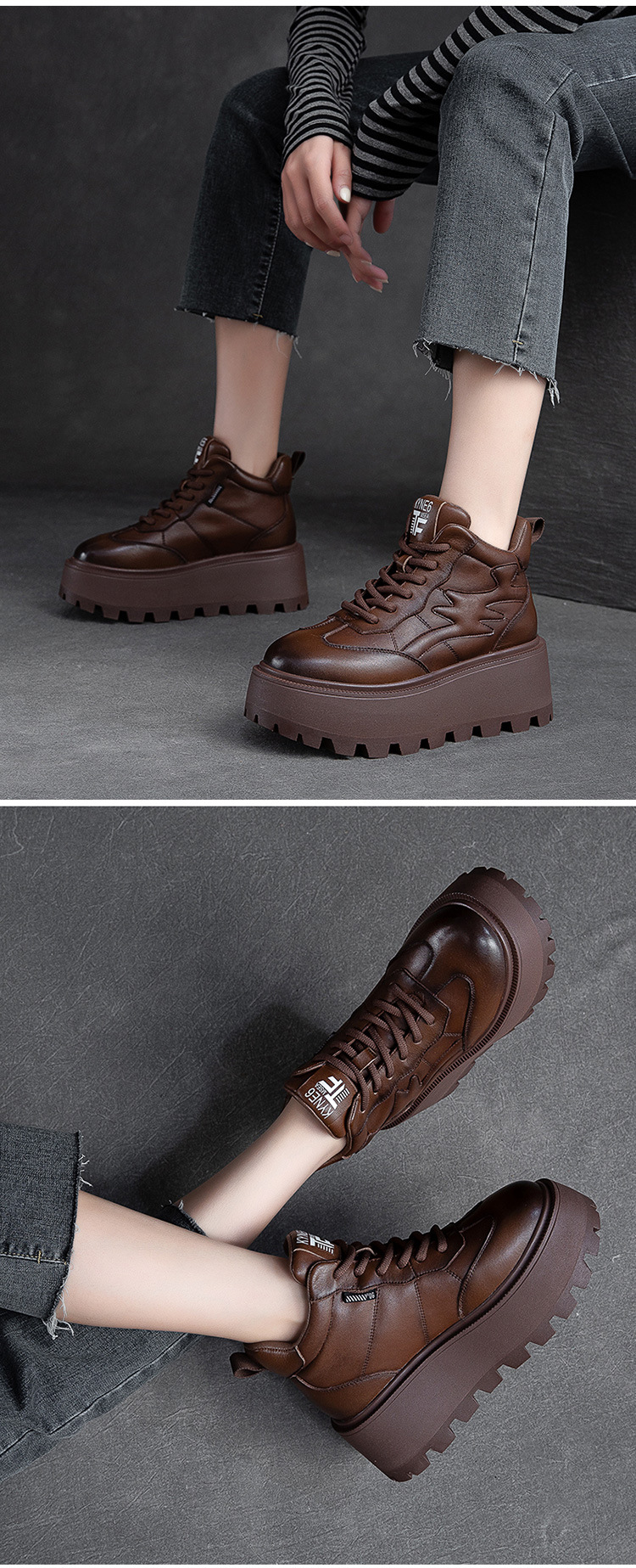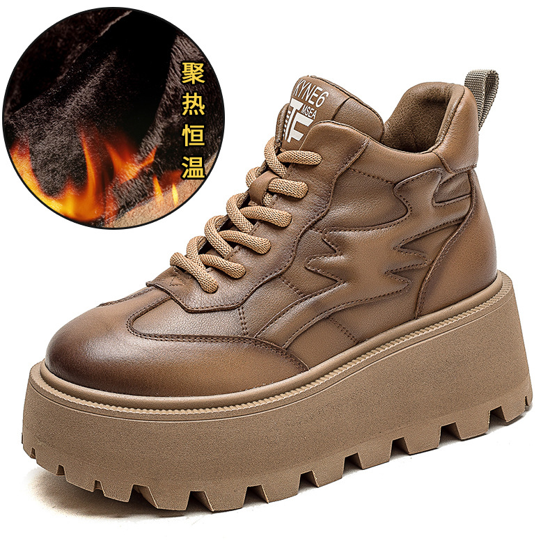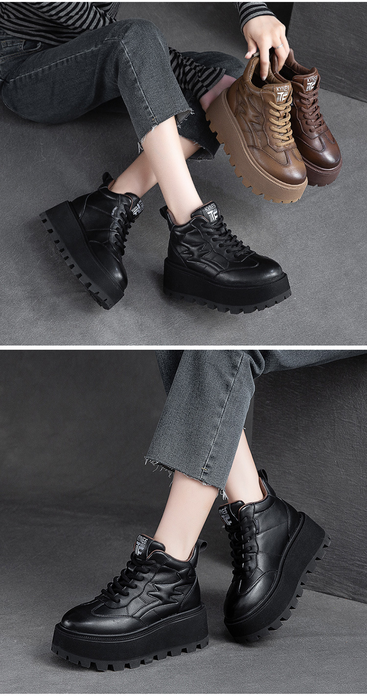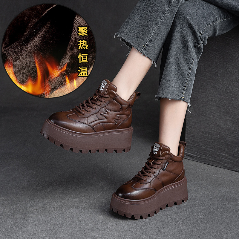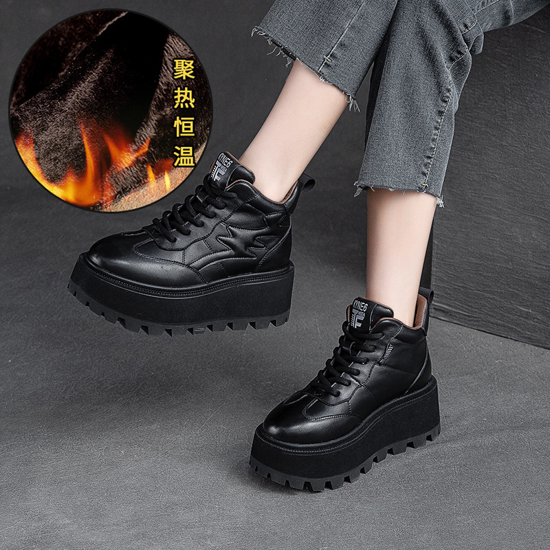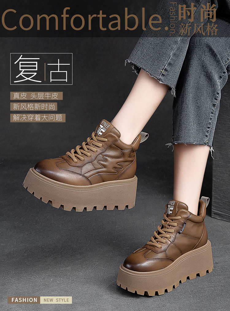Giày nữ thiết kế cổ cao, phù hợp cho mùa lạnh với lớp lót bên trong ấm áp. Đế giày được làm dày hơn thông thường một chút, tạo dáng vẻ khỏe khoắn. Kiểu dáng mang phong cách hoài cổ nhẹ nhàng với hiệu ứng màu da đa sắc độc đáo. Phần cổ giày có dây rút phía trước để điều chỉnh ôm vừa chân. Sản phẩm dễ dàng phối cùng nhiều trang phục thường ngày cho các dịp đi chơi, giải trí. | Tên sản phẩm: Giày Thể Thao Tăng Chiều Cao Nữ Đế Cao Hàng Mùa Xuân Thu Đông Phục Cổ Cổ Điển - Giày Dép Nữ | Mã sản phẩm: B2663 - Giá: 2.480.000đ | Mã nhà sản xuất: SHNTEZ-G05Hình ảnh sản phẩm