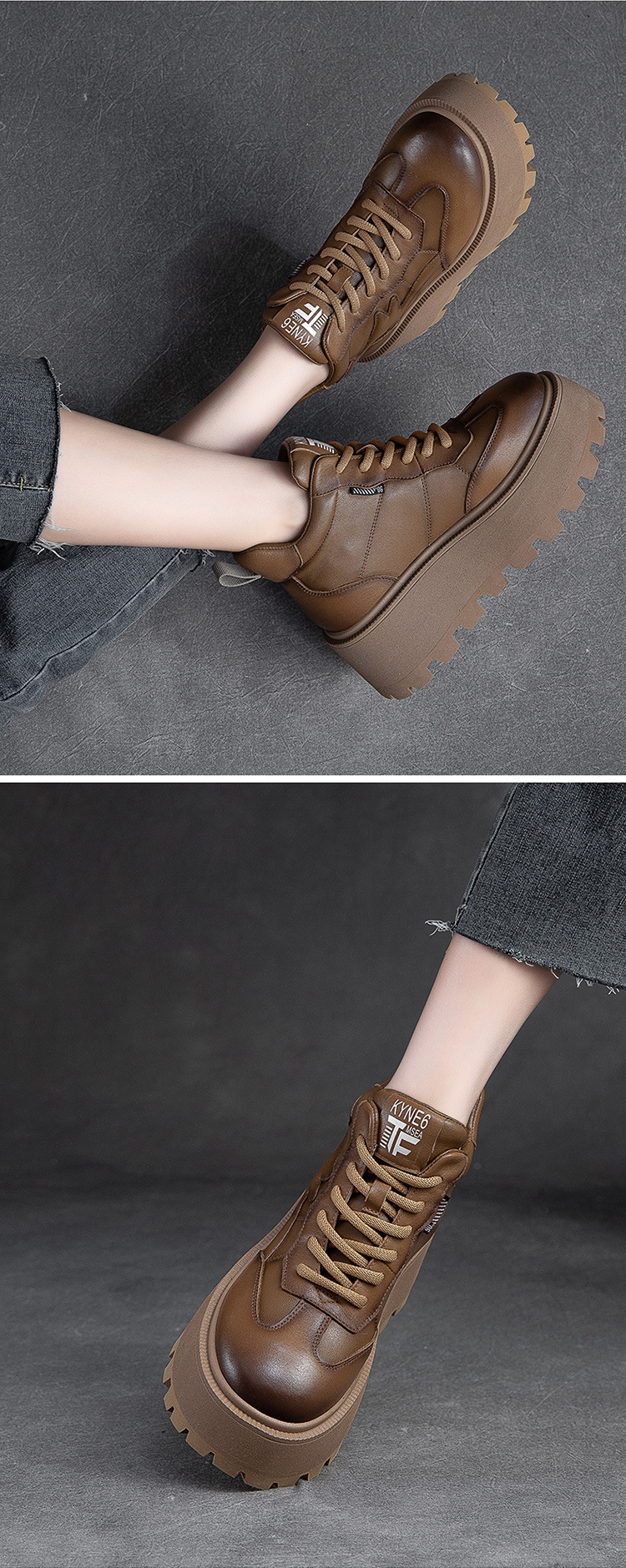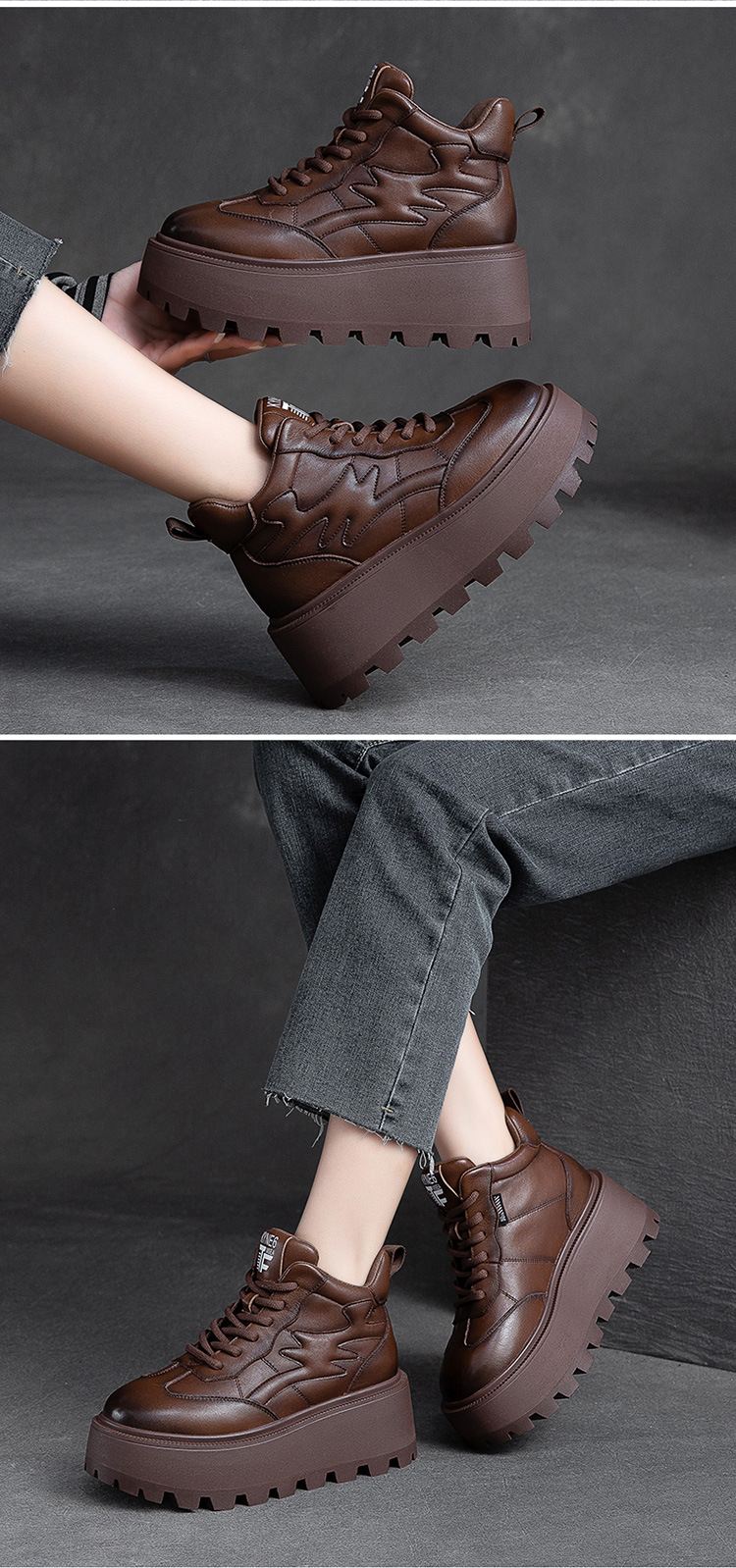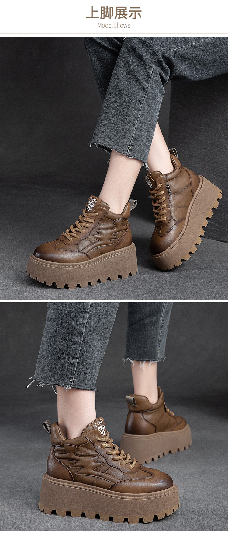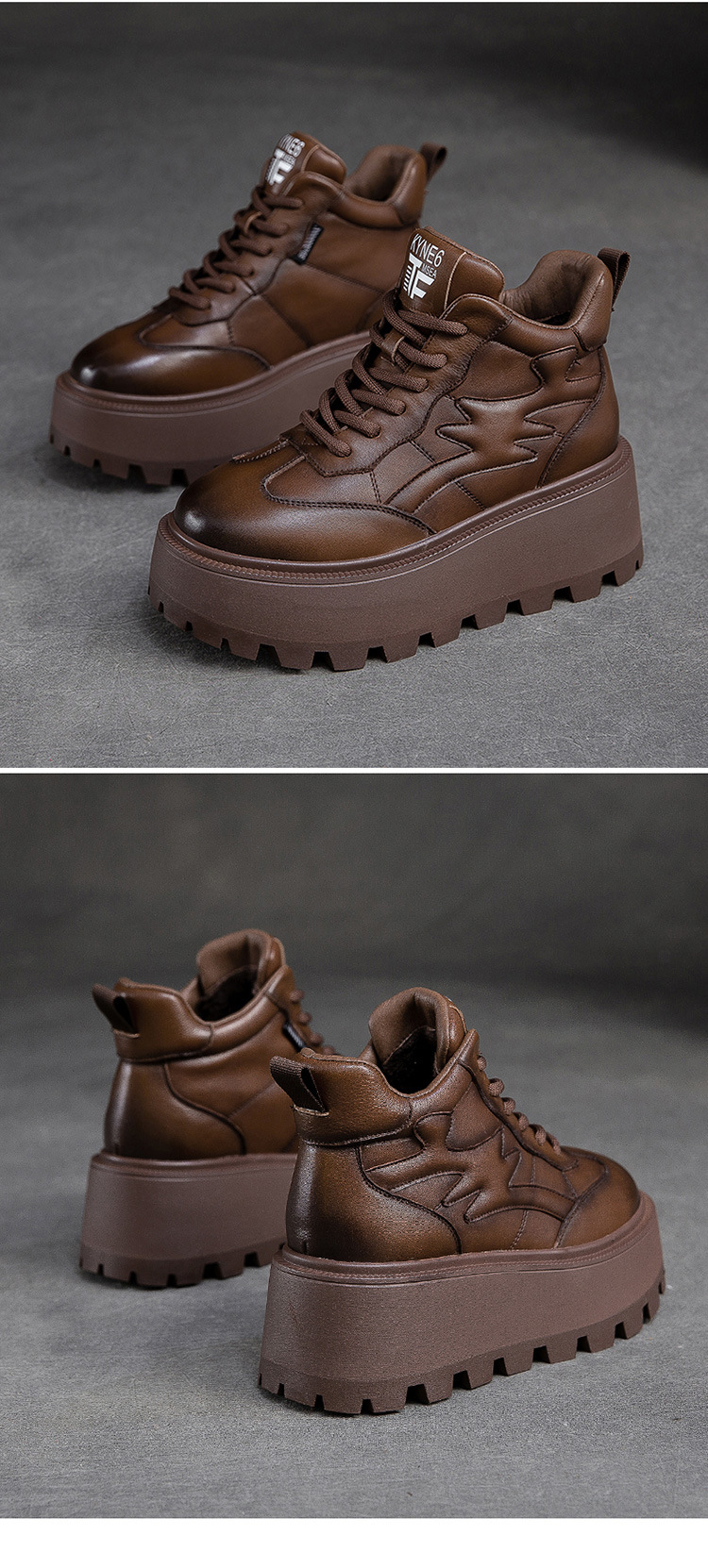 Giày nữ thiết kế cổ cao, phù hợp cho mùa lạnh với lớp lót bên trong ấm áp. Đế giày được làm dày hơn thông thường một chút, tạo dáng vẻ khỏe khoắn. Kiểu dáng mang phong cách hoài cổ nhẹ nhàng với hiệu ứng màu da đa sắc độc đáo. Phần cổ giày có dây rút phía trước để điều chỉnh ôm vừa chân. Sản phẩm dễ dàng phối cùng nhiều trang phục thường ngày cho các dịp đi chơi, giải trí. | Tên sản phẩm: Giày Thể Thao Tăng Chiều Cao Nữ Đế Cao Hàng Mùa Xuân Thu Đông Phục Cổ Cổ Điển - Giày Dép Nữ | Mã sản phẩm: B2663 - Giá: 2.480.000đ | Mã nhà sản xuất: SHNTEZ-G05Hình ảnh sản phẩm