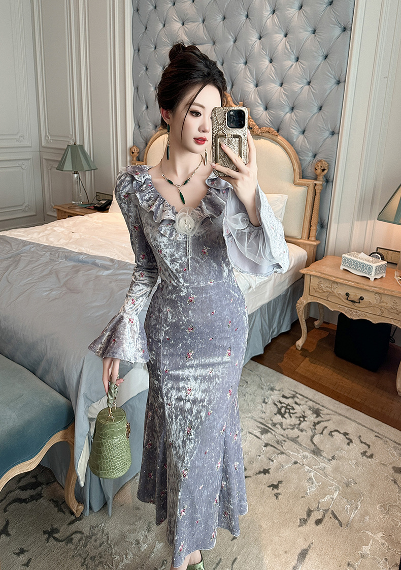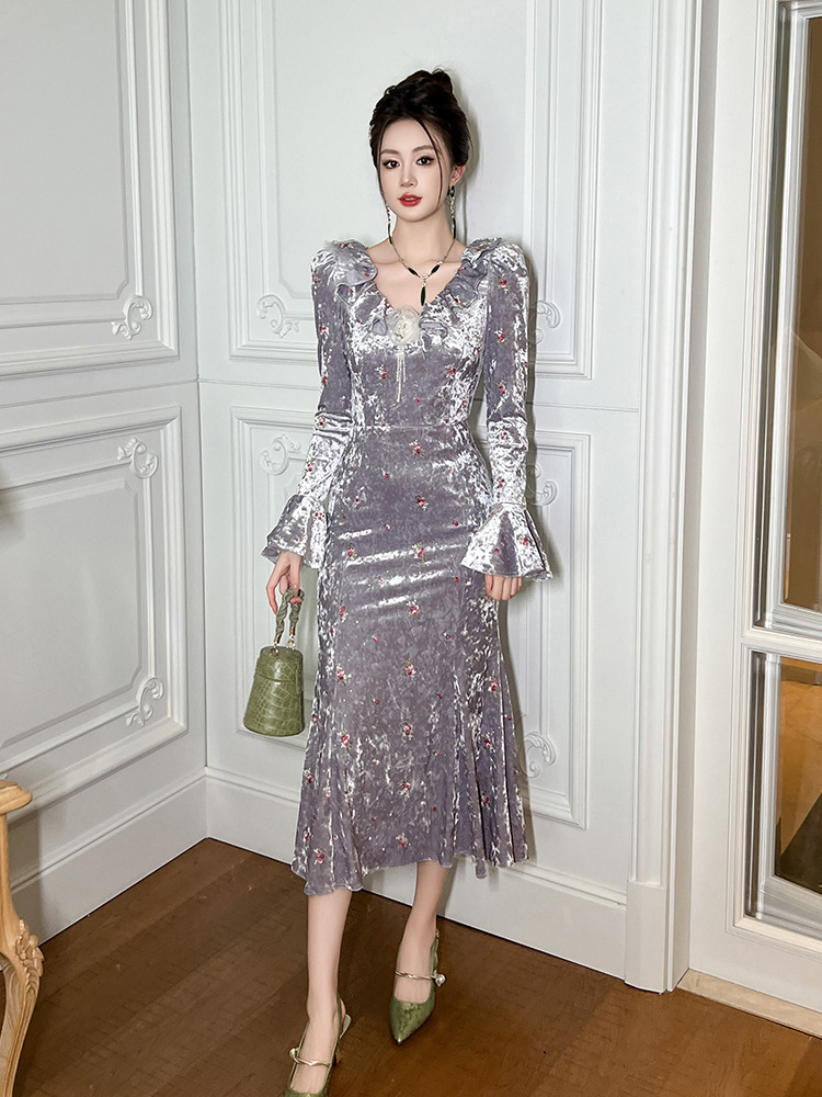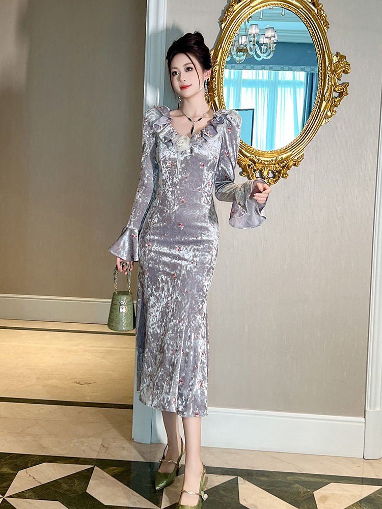 Chiếc đầm dáng ôm cho nữ, điểm nhấn là phần cổ viền cách điệu như lá sen cùng họa tiết thêu và hoa nhỏ tinh tế. Chất liệu nhung mềm mại giúp tôn dáng người mặc. Thiết kế đuôi cá ở phần gấu tạo nên nét duyên dáng, phù hợp cho những dịp cần sự chỉn chu. Sản phẩm mặc kèm áo khoác nhẹ hoặc phụ kiện đơn giản để tạo điểm nhấn. | Tên sản phẩm: Váy Đầm Liền Thân Nữ Dáng Ôm Thêu Họa Tiết Hoa Hàng Mùa Xuân Thu Đông - Thời Trang Nữ | Mã sản phẩm: B2677 - Giá: 1.380.000đ | Mã nhà sản xuất: CHDG-G04Hình ảnh sản phẩm