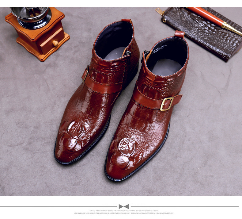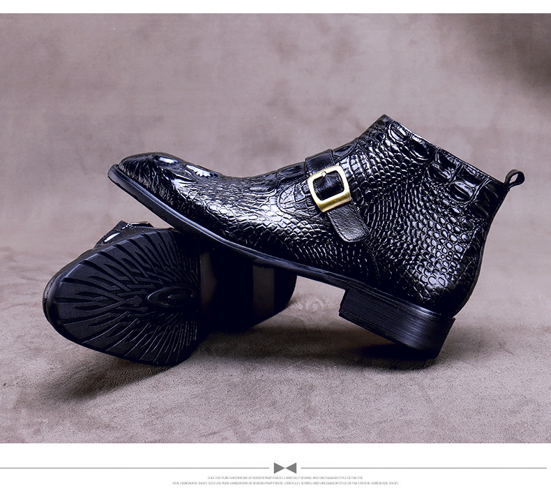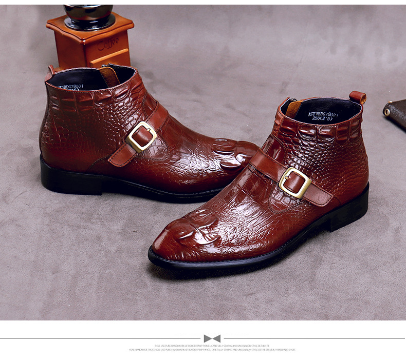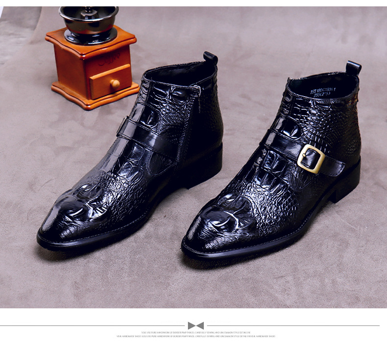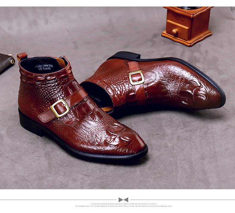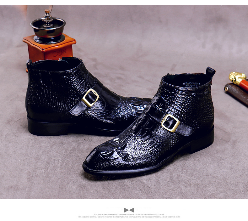 Giày bốt cổ cao nam này được làm từ chất liệu da bò thật, bề mặt vân cá sấu tạo điểm nhấn. Kiểu dáng kết hợp nút kéo tiện lợi và dây buộc truyền thống, phù hợp cho cả công sở và dạo phố. Sản phẩm có phần cổ cao ôm vừa vặn, giúp bảo vệ mắt cá chân. Khi sử dụng, bạn nên kết hợp với quần âu hoặc quần jeans để tạo phong cách lịch sự mà vẫn năng động. | Tên sản phẩm: Giày Boot Cổ Thấp Nam Chất Liệu Da Bò Vân Da Cá Sấu - Giày Dép Nam | Mã sản phẩm: B2681 - Giá: 2.690.000đ | Mã nhà sản xuất: ASTYCH-G06Hình ảnh sản phẩm