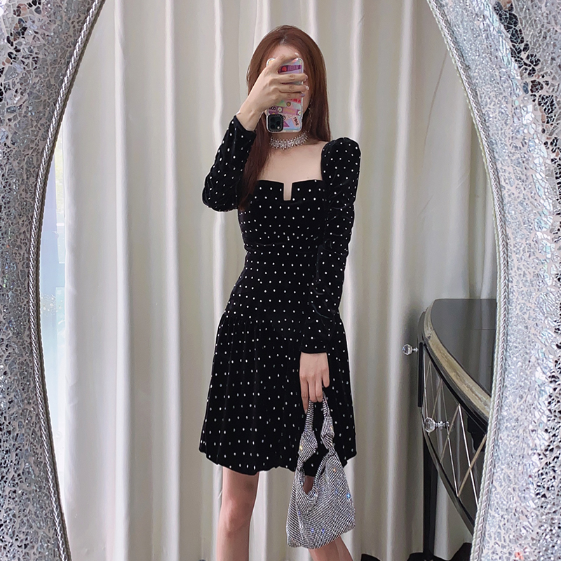 Chiếc đầm dáng ôm dành cho mùa xuân, được làm từ chất liệu nhung mềm mại màu đen. Thiết kế cổ vuông độc đáo tôn vinh vẻ đẹp cổ và v. Điểm nhấn nổi bật là những hạt đá lấp lánh được gia công tinh xảo trên nền vải. Tay dài và kiểu dáng cơ bản giúp bạn dễ dàng phối đồ cho nhiều dịp khác nhau. Mặc kết hợp cùng giày cao gót và phụ kiện đơn giản để có vẻ ngoài hoàn chỉnh. | Tên sản phẩm: Váy Đầm Liền Thân Nữ Dáng Ôm Hàng Mùa Xuân Thu Đông - Thời Trang Nữ | Mã sản phẩm: B2686 - Giá: 1.730.000đ | Mã nhà sản xuất: HADN-G05Hình ảnh sản phẩm