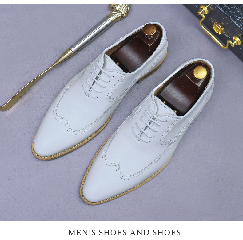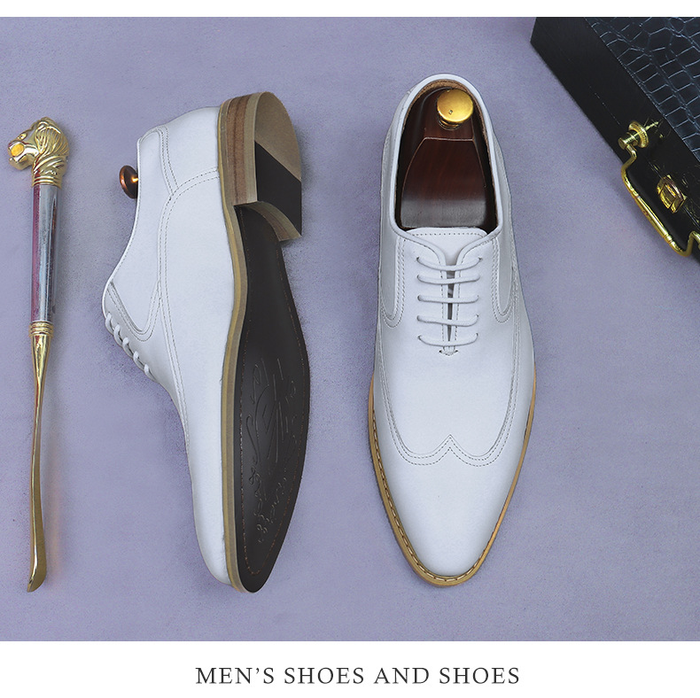 Giày tây nam thiết kế theo phong cách Anh quốc, phù hợp cho công sở hoặc các dịp quan trọng. Sản phẩm được làm từ chất liệu da thật bền đẹp, có dây cột giúp ôm chân thoải mái. Kiểu dáng lịch sự với màu trắng dễ phối đồ. Bạn có thể mang cùng bộ vest hoặc quần âu để tạo vẻ chỉn chu. Sử dụng sản phẩm cùng bộ đồ công sở giúp bạn tự tin trong mọi hoạt động. | Tên sản phẩm: Giày Da Nam Chất Liệu Da Bò Dùng Trong Lễ Cưới - Giày Dép Nam | Mã sản phẩm: B2692 - Giá: 2.020.000đ | Mã nhà sản xuất: ASTYCH-G05Hình ảnh sản phẩm