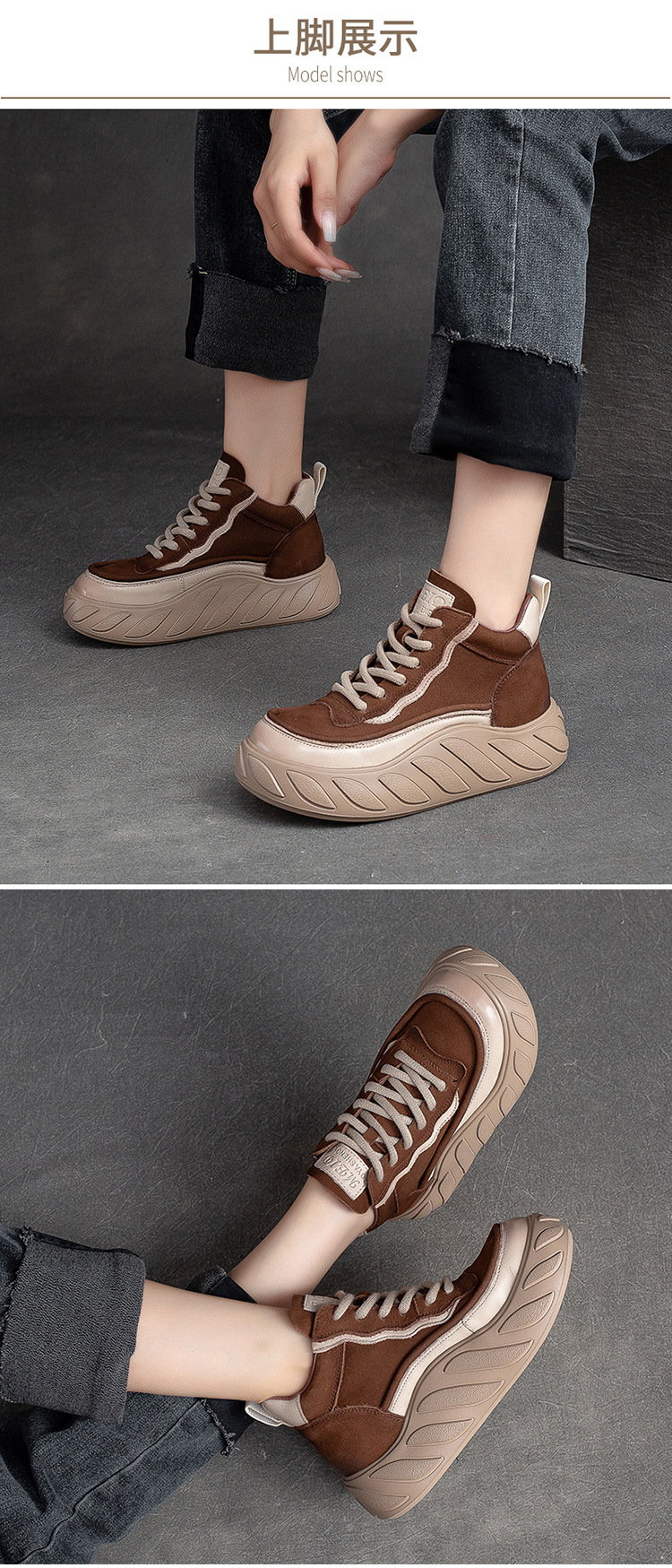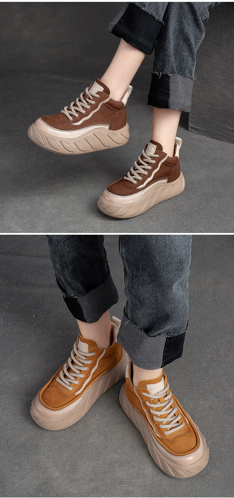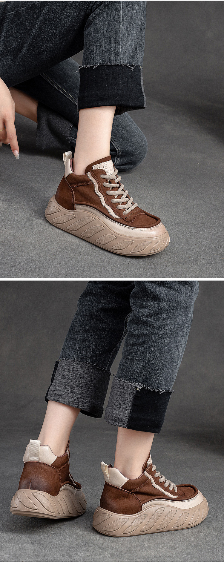 Giày nữ thiết kế cổ cao, có dây buộc phía trước, phù hợp cho thời tiết mát mẻ. Sản phẩm mang phong cách cổ điển nhẹ nhàng, dễ dàng kết hợp với nhiều trang phục khác nhau. Đế giày được làm dày dặn, tạo cảm giác thoải mái khi di chuyển. Chỉ cần luồn dây và thắt nơ, bạn đã có ngay một đôi giày gọn gàng và tiện lợi cho những buổi đi chơi hoặc làm việc hằng ngày. | Tên sản phẩm: Giày Thể Thao Tăng Chiều Cao Nữ Chất Liệu Da Bò Đế Cao Hàng Mùa Xuân Thu Đông Phục Cổ Cổ Điển - Giày Dép Nữ | Mã sản phẩm: B2708 - Giá: 2.580.000đ | Mã nhà sản xuất: SHNTEZ-G06Hình ảnh sản phẩm