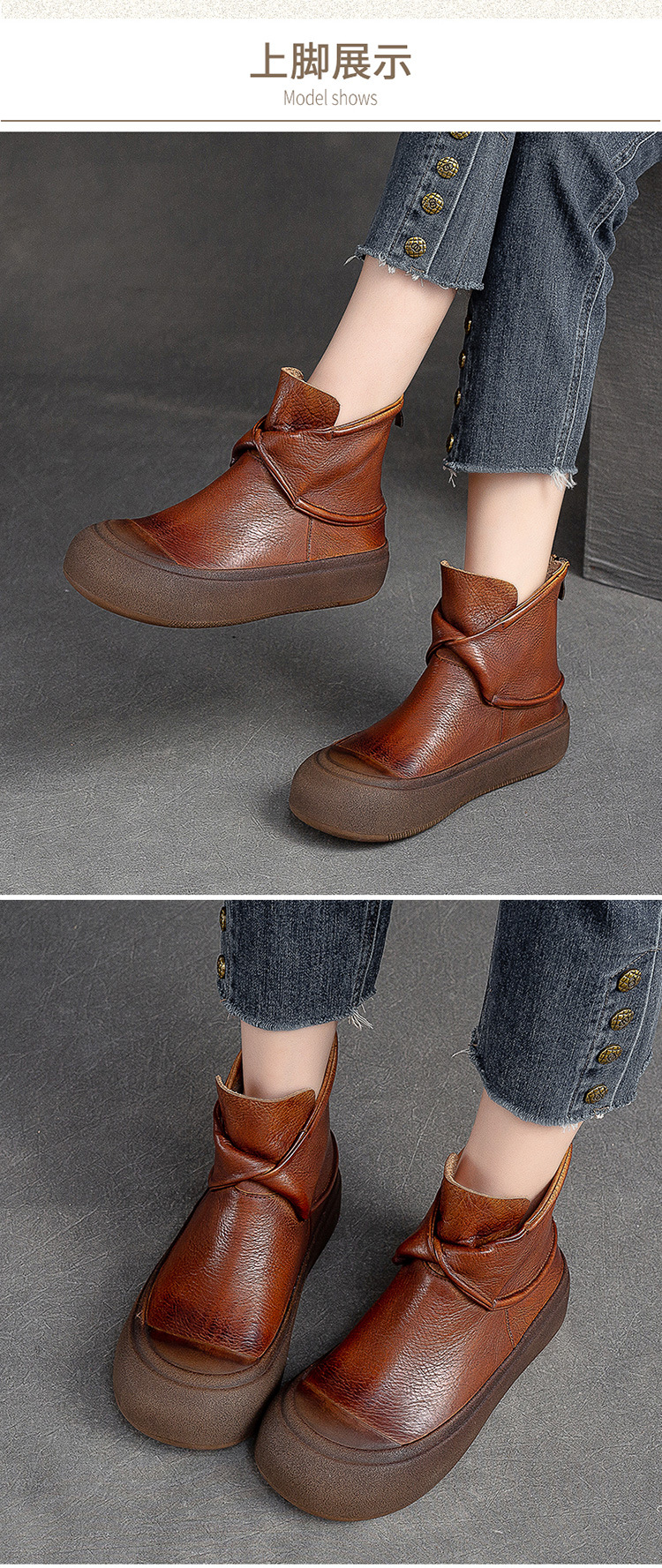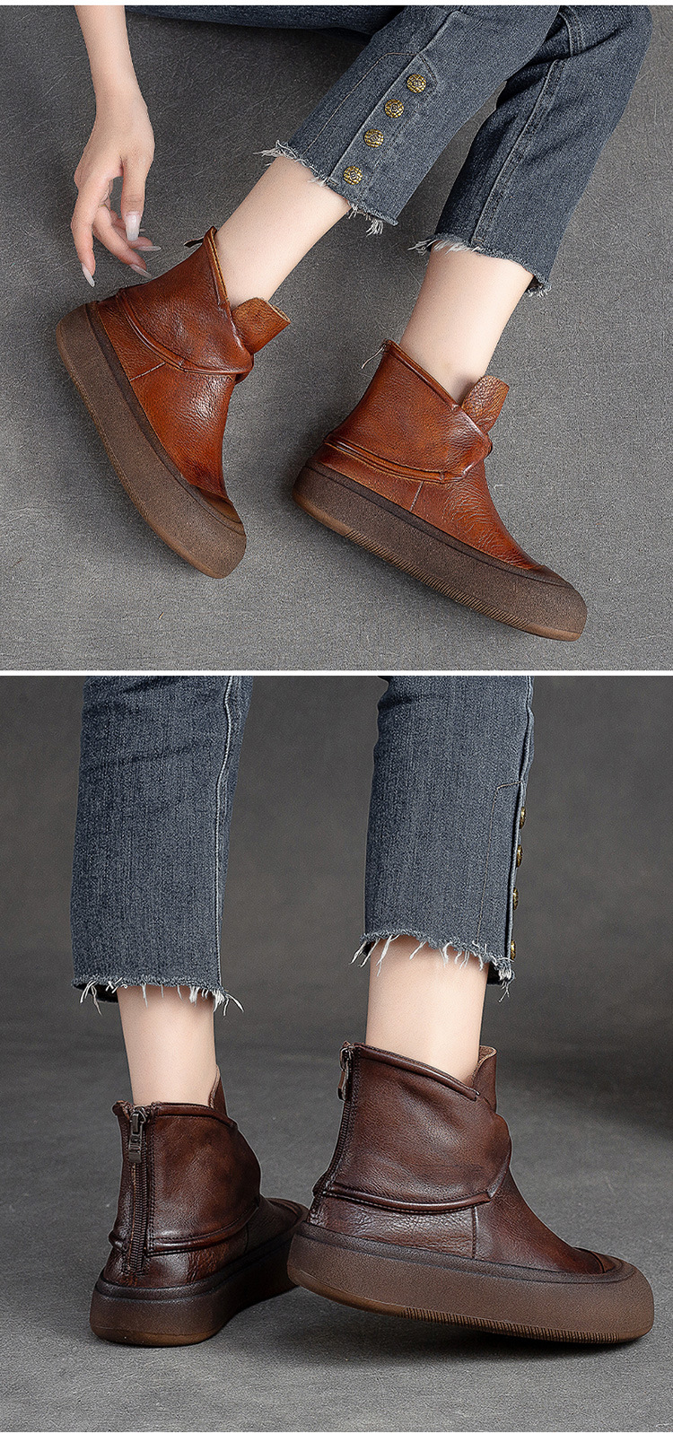 Giày bốt nữ thiết kế dáng cổ điển, phù hợp mang trong tiết trời thu đông. Sản phẩm có phần đế dày vừa phải giúp tăng chiều cao và tạo cảm giác thoải mái khi di chuyển. Được làm từ chất liệu da thật bền đẹp, bên trong có khóa kéo phía sau để tiện mang vào và tháo ra. Kiểu dáng dễ kết hợp với nhiều trang phục khác nhau như quần jeans hay váy. Bạn có thể sử dụng hàng ngày cho các hoạt động thong thả. | Tên sản phẩm: Giày Thể Thao Tăng Chiều Cao Nữ Chất Liệu Da Bò Đế Cao Hàng Mùa Xuân Thu Đông Phục Cổ Cổ Điển - Giày Dép Nữ | Mã sản phẩm: B2731 - Giá: 2.660.000đ | Mã nhà sản xuất: SHNTEZ-G06Hình ảnh sản phẩm