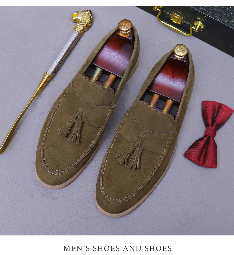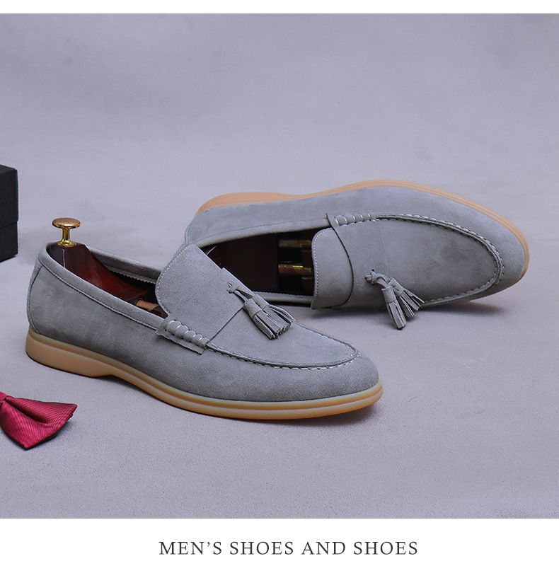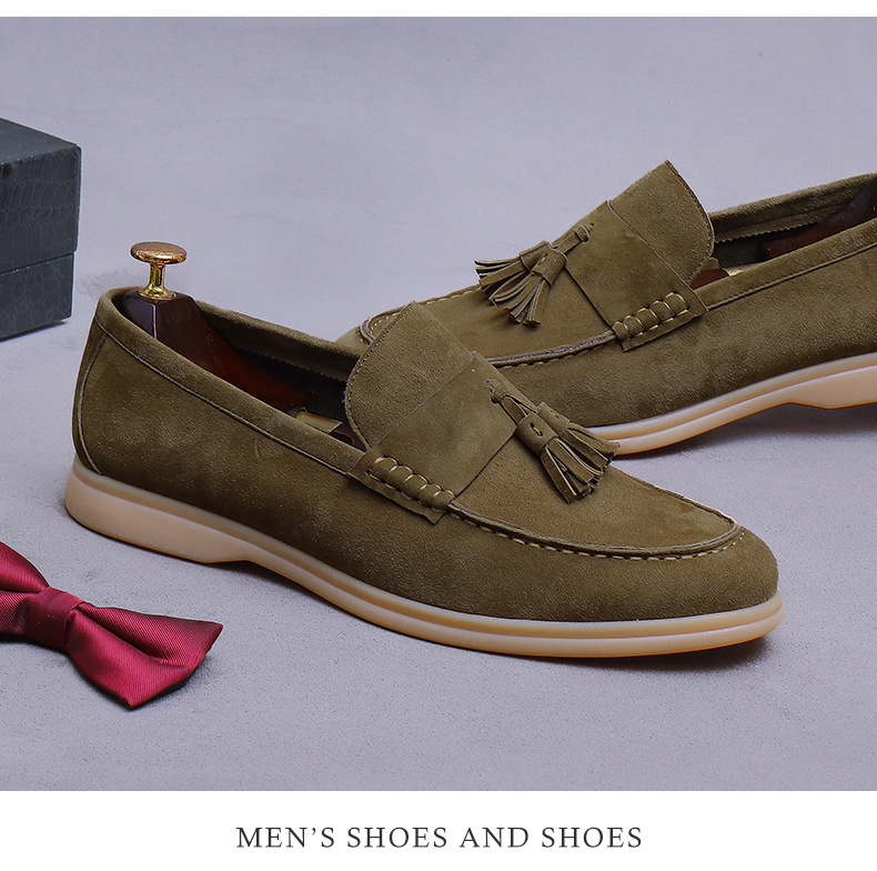 Giày được làm từ chất da mềm mại, bề mặt có lớp xử lý dạng phủ nhám tạo vẻ đẹp khác biệt. Kiểu dáng "luồn chân" tiện lợi, không cần cột dây, kết hợp cùng chi tiết tua rua duyên dáng ở mặt trên. Đế giày thiết kế những hạt đệm nhỏ giúp bước đi nhẹ nhàng và thoải mái. Dễ dàng phối cùng nhiều trang phục khác nhau, thích hợp cho những ngày bận rộn. | Tên sản phẩm: Giày Da Nam Chất Liệu Da Bò Thoáng Khí - Giày Dép Nam | Mã sản phẩm: B2741 - Giá: 2.360.000đ | Mã nhà sản xuất: ASTYCH-G05Hình ảnh sản phẩm