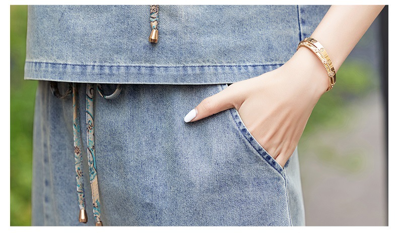 Bộ trang phục này kết hợp họa tiết thêu tinh tế trên chất liệu vải bò, tạo nên một tổng thể vừa hiện đại vừa mang chút hoài cổ. Set đồ gồm áo và chân váy rời, dễ dàng phối cùng nhiều loại trang sức và giày dép khác nhau. Bạn có thể mặc đi làm, dạo phố hay trong những buổi gặp gỡ bạn bè. Chất vải thoáng mát, thích hợp cho mùa hè. Chỉ cần giặt nhẹ và phơi khô tự nhiên để giữ form áo và độ bền của đường thêu. | Tên sản phẩm: Đồ Bộ Nữ Chất Liệu Jean Bò Cả Bộ 2 Món Thêu Họa Tiết Hoa Trông Trẻ Hơn Tuổi Hàng Mùa Hè Phục Cổ Cổ Điển - Thời Trang Nữ | Mã sản phẩm: B2743 - Giá: 1.780.000đ | Mã nhà sản xuất: WODIG-G05Hình ảnh sản phẩm