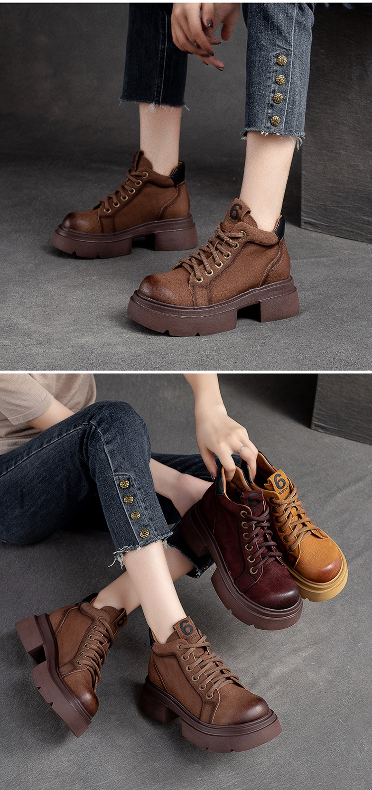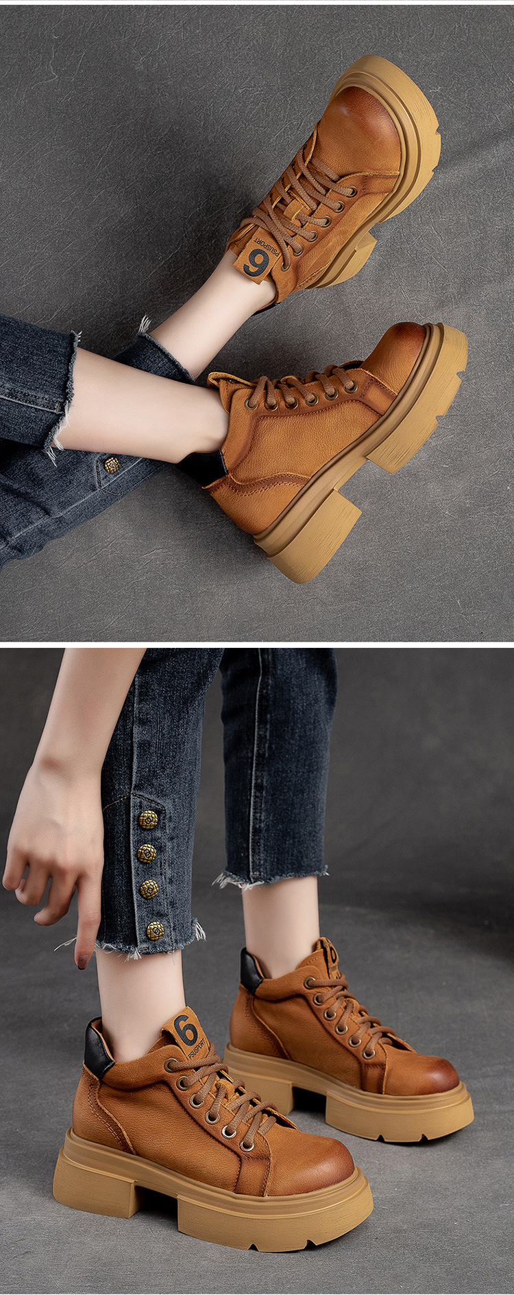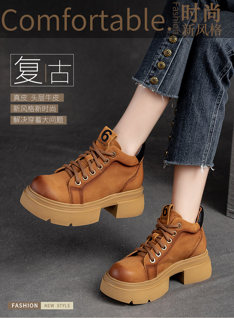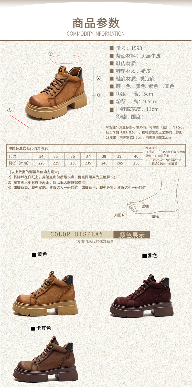 Giày bốt nữ thiết kế cổ điển, phù hợp cho thời tiết mát mẻ. Mẫu giày có phần đế dày vừa phải, đầu tròn ôm chân thoải mái. Chất liệu da bò mềm mịn tạo cảm giác dễ chịu khi mang. Cách sử dụng đơn giản với dây rút phía trước giúp điều chỉnh độ ôm vừa vặn. Kiểu dáng kết hợp giữa nét phóng khoáng và nữ tính, dễ dàng phối cùng nhiều trang phục hàng ngày. | Tên sản phẩm: Giày Boot Cổ Thấp Nữ Mũi Tròn Đế Cao Hàng Mùa Xuân Thu Đông Phục Cổ Cổ Điển - Giày Dép Nữ | Mã sản phẩm: B2748 - Giá: 2.580.000đ | Mã nhà sản xuất: SHNTEZ-G06Hình ảnh sản phẩm