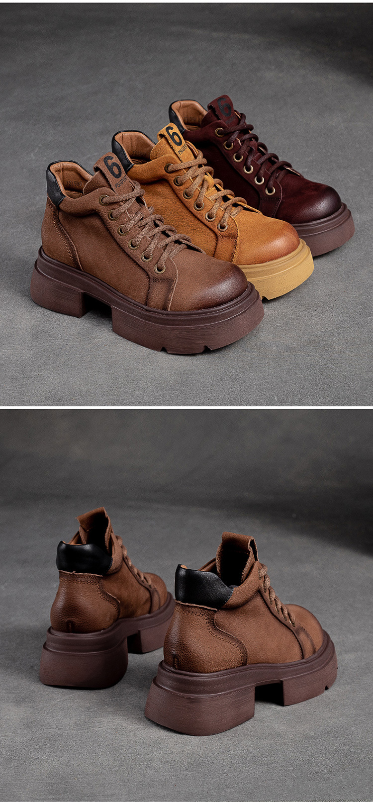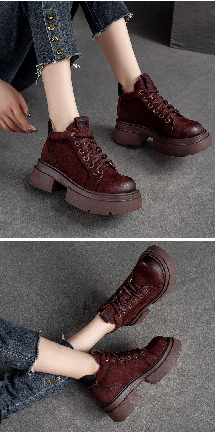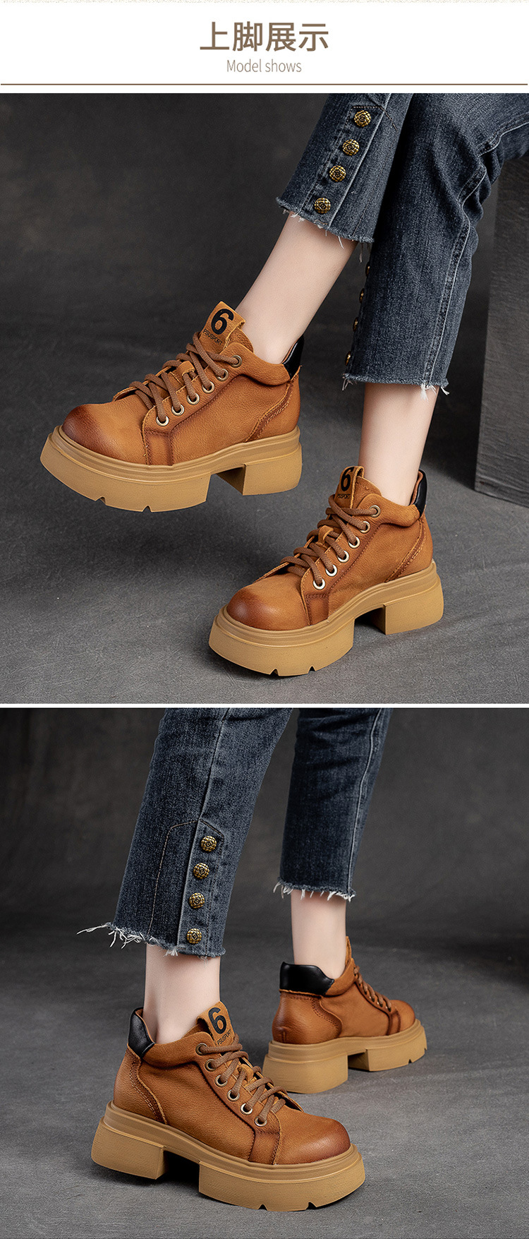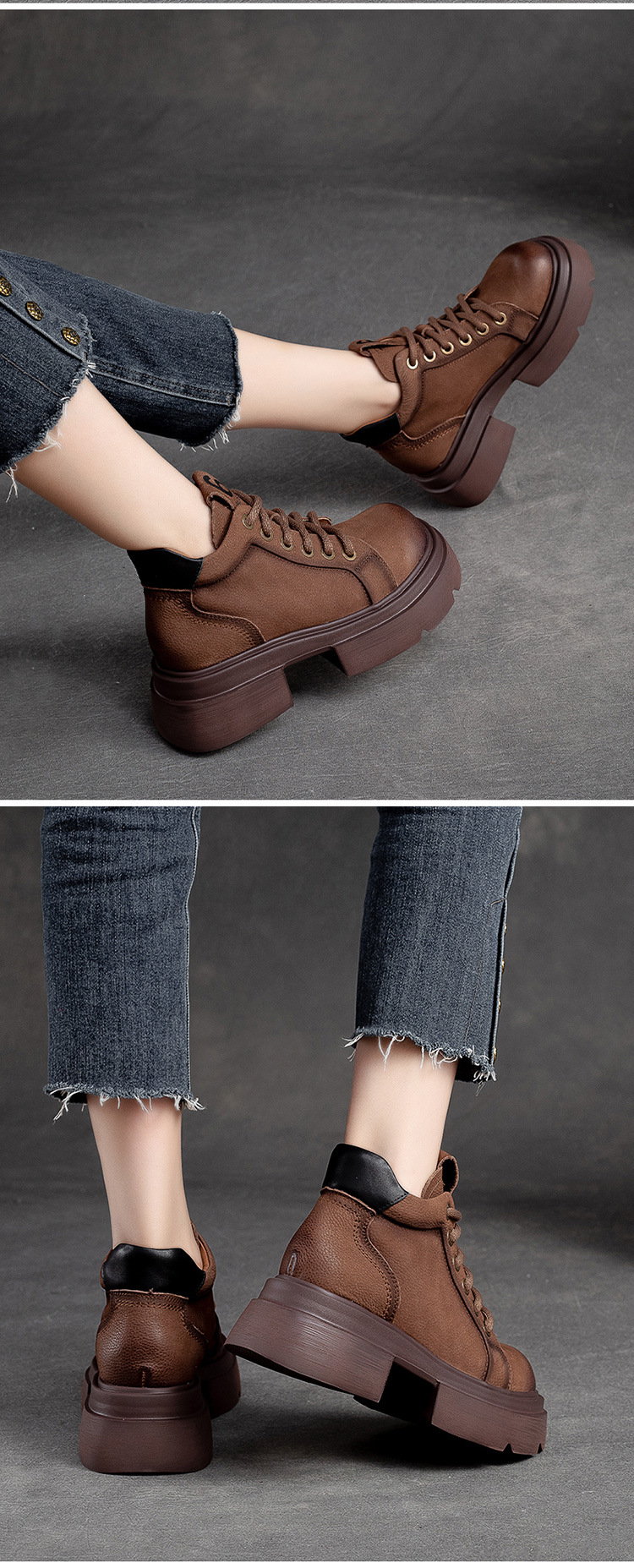 Giày bốt nữ thiết kế cổ điển, phù hợp cho thời tiết mát mẻ. Mẫu giày có phần đế dày vừa phải, đầu tròn ôm chân thoải mái. Chất liệu da bò mềm mịn tạo cảm giác dễ chịu khi mang. Cách sử dụng đơn giản với dây rút phía trước giúp điều chỉnh độ ôm vừa vặn. Kiểu dáng kết hợp giữa nét phóng khoáng và nữ tính, dễ dàng phối cùng nhiều trang phục hàng ngày. | Tên sản phẩm: Giày Boot Cổ Thấp Nữ Mũi Tròn Đế Cao Hàng Mùa Xuân Thu Đông Phục Cổ Cổ Điển - Giày Dép Nữ | Mã sản phẩm: B2748 - Giá: 2.580.000đ | Mã nhà sản xuất: SHNTEZ-G06Hình ảnh sản phẩm