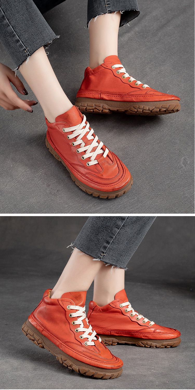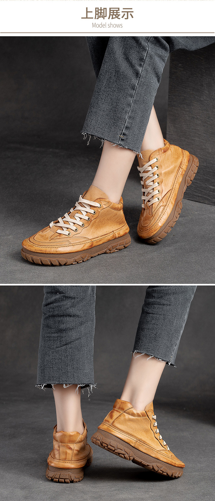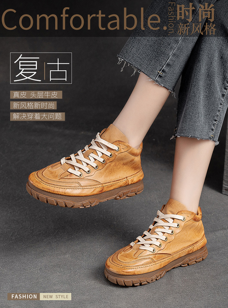 Giày nữ thiết kế cổ cao, phù hợp cho thời tiết mát mẻ. Sản phẩm có phần thân làm từ chất da bò mềm, tạo kiểu dáng hơi ph màu mang phong cách hoài cổ. Đôi giày có dây cột phía trước giúp điều chỉnh độ ôm vừa vặn. Đế giày bằng phẳng, tạo cảm giác thoải mái và dễ dàng kết hợp với nhiều trang phục khi sử dụng hằng ngày. | Tên sản phẩm: Giày Bệt Nữ Chất Liệu Da Bò Hàng Mùa Xuân Thu Đông Phục Cổ Cổ Điển - Giày Dép Nữ | Mã sản phẩm: B2761 - Giá: 2.390.000đ | Mã nhà sản xuất: SHNTEZ-G05Hình ảnh sản phẩm