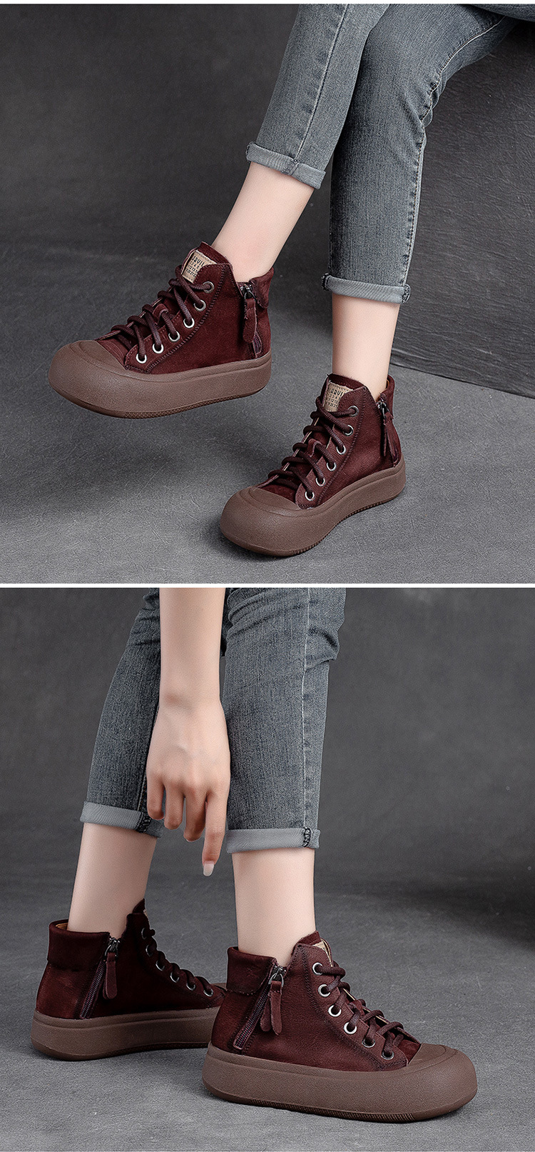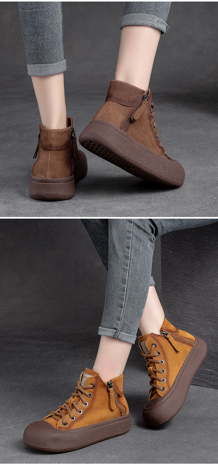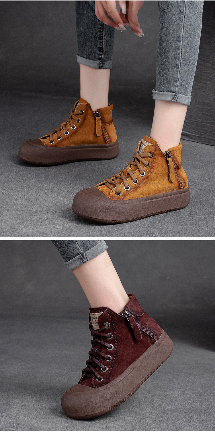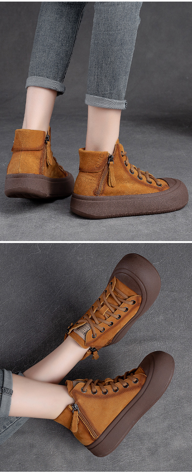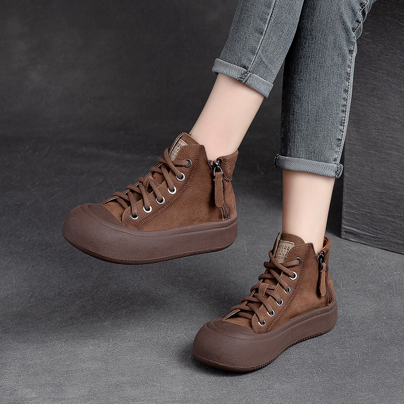 Giày nữ thiết kế cổ cao phù hợp cho thời tiết mát mẻ. Sản phẩm có điểm nhấn là khóa kéo bên hông giúp mang vào và tháo ra dễ dàng. Kiểu dáng tròn, đế dày tạo cảm giác thoải mái và mang phong cách hoài cổ. Được làm từ chất liệu da bò mềm mại, bền đẹp. Bạn có thể phối hợp với nhiều loại trang phục khác nhau để tạo nên vẻ ngoài cá tính cho những dịp sinh hoạt thường ngày. | Tên sản phẩm: Giày Thể Thao Tăng Chiều Cao Nữ Chất Liệu Da Bò Mũi Tròn Đế Cao Hàng Mùa Xuân Thu Đông Phục Cổ Cổ Điển - Giày Dép Nữ | Mã sản phẩm: B2762 - Giá: 2.480.000đ | Mã nhà sản xuất: SHNTEZ-G05Hình ảnh sản phẩm