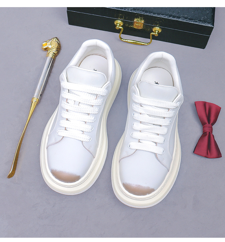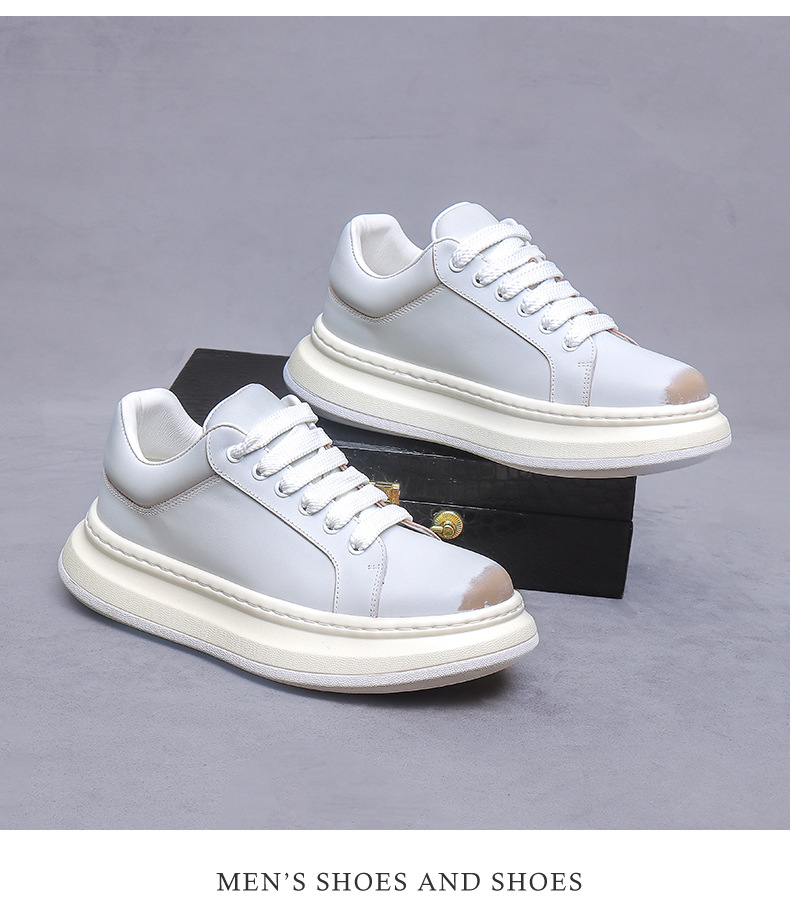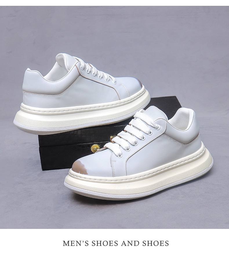 Đôi giày da thật này được làm hoàn toàn từ chất liệu da bò mềm mại, cả mặt trong lẫn mặt ngoài. Kiểu dáng giày vải trắng trẻ trung, kết hợp đế dày vừa phải giúp tăng chiều cao nhẹ nhàng. Phong cách thiết kế đơn giản, dễ dàng phối hợp với nhiều loại trang phục khác nhau như quần jeans hay quần shorts. Sử dụng phù hợp cho các hoạt động hằng ngày, mang lại sự thoải mái khi di chuyển. | Tên sản phẩm: Giày Thể Thao Tăng Chiều Cao Nam Chất Liệu Da Bò Tăng Chiều Cao Đế Cao - Giày Dép Nam | Mã sản phẩm: B2777 - Giá: 2.550.000đ | Mã nhà sản xuất: ASTYCH-G06Hình ảnh sản phẩm