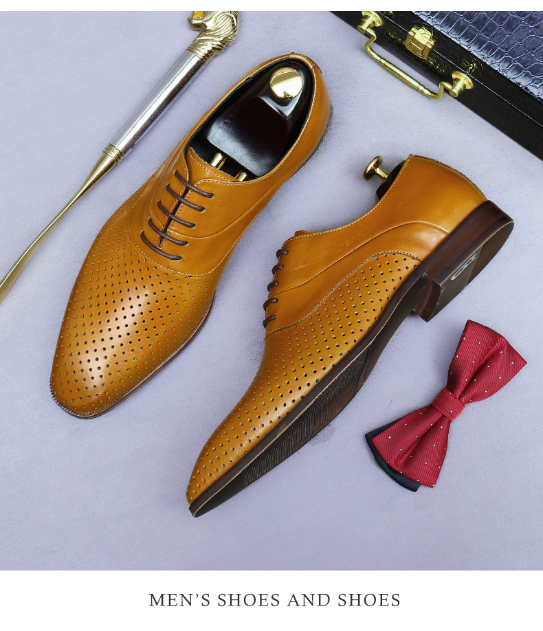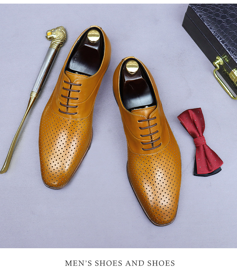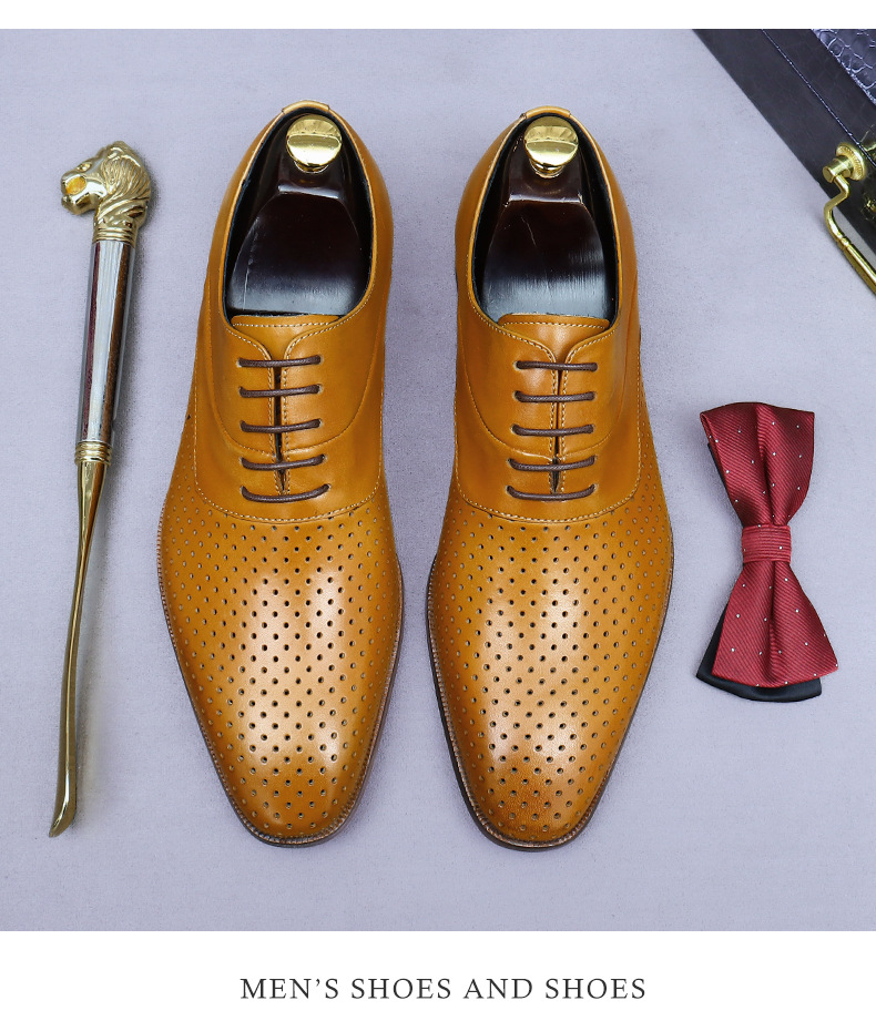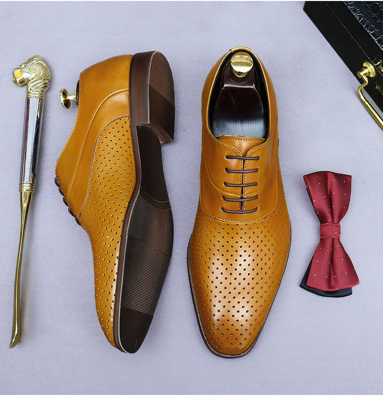 Giày nam thiết kế có phần hở thoáng mát, phù hợp cho cả công sở và dạo phố. Sản phẩm được làm từ chất liệu da thật mềm mại, mang lại cảm giác dễ chịu khi mang. Kiểu dáng lịch sự nhưng vẫn tạo điểm nhấn trẻ trung nhờ chi tiết đục lộng. Bạn có thể dùng để kết hợp với quần âu hoặc quần short trong các dịp thường ngày. Đôi giày giúp đôi chân luôn khô ráo và thoải mái. | Tên sản phẩm: Giày Da Nam Chất Liệu Da Bò - Giày Dép Nam | Mã sản phẩm: B2790 - Giá: 2.360.000đ | Mã nhà sản xuất: ASTYCH-G05Hình ảnh sản phẩm