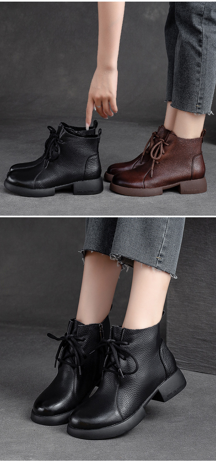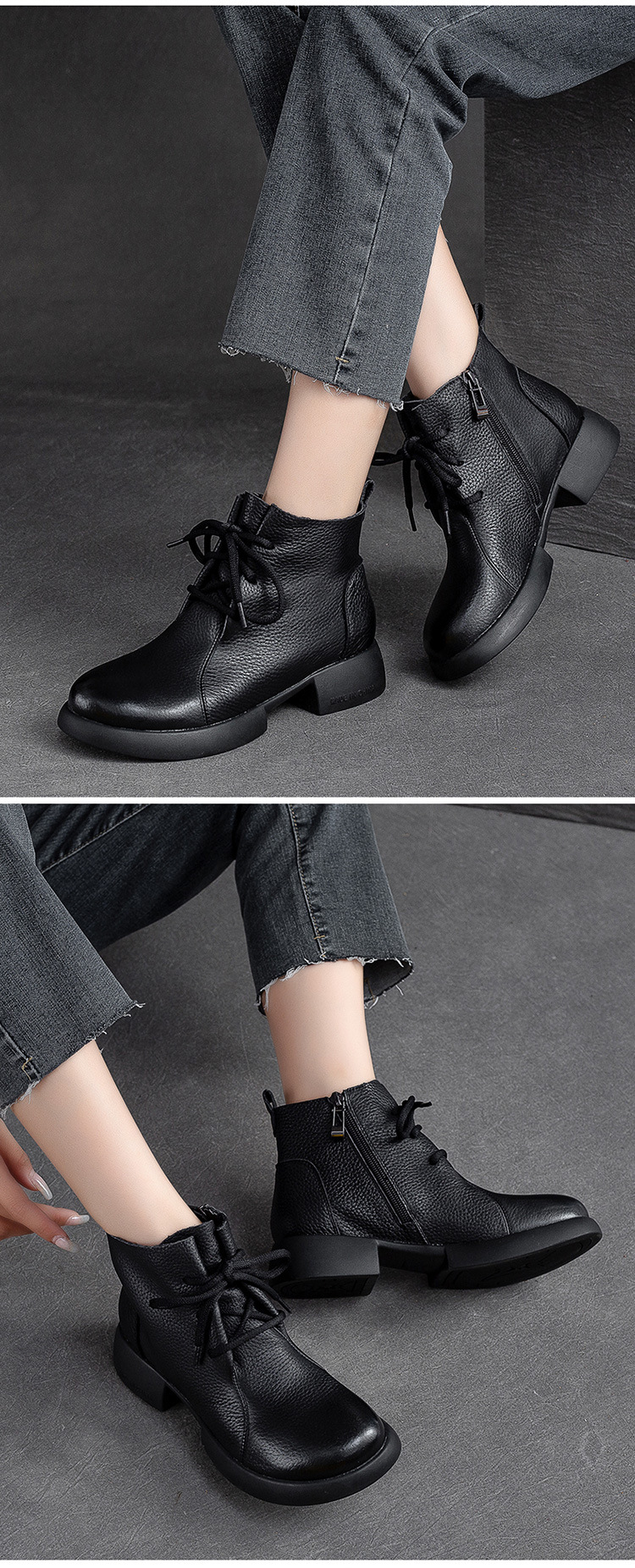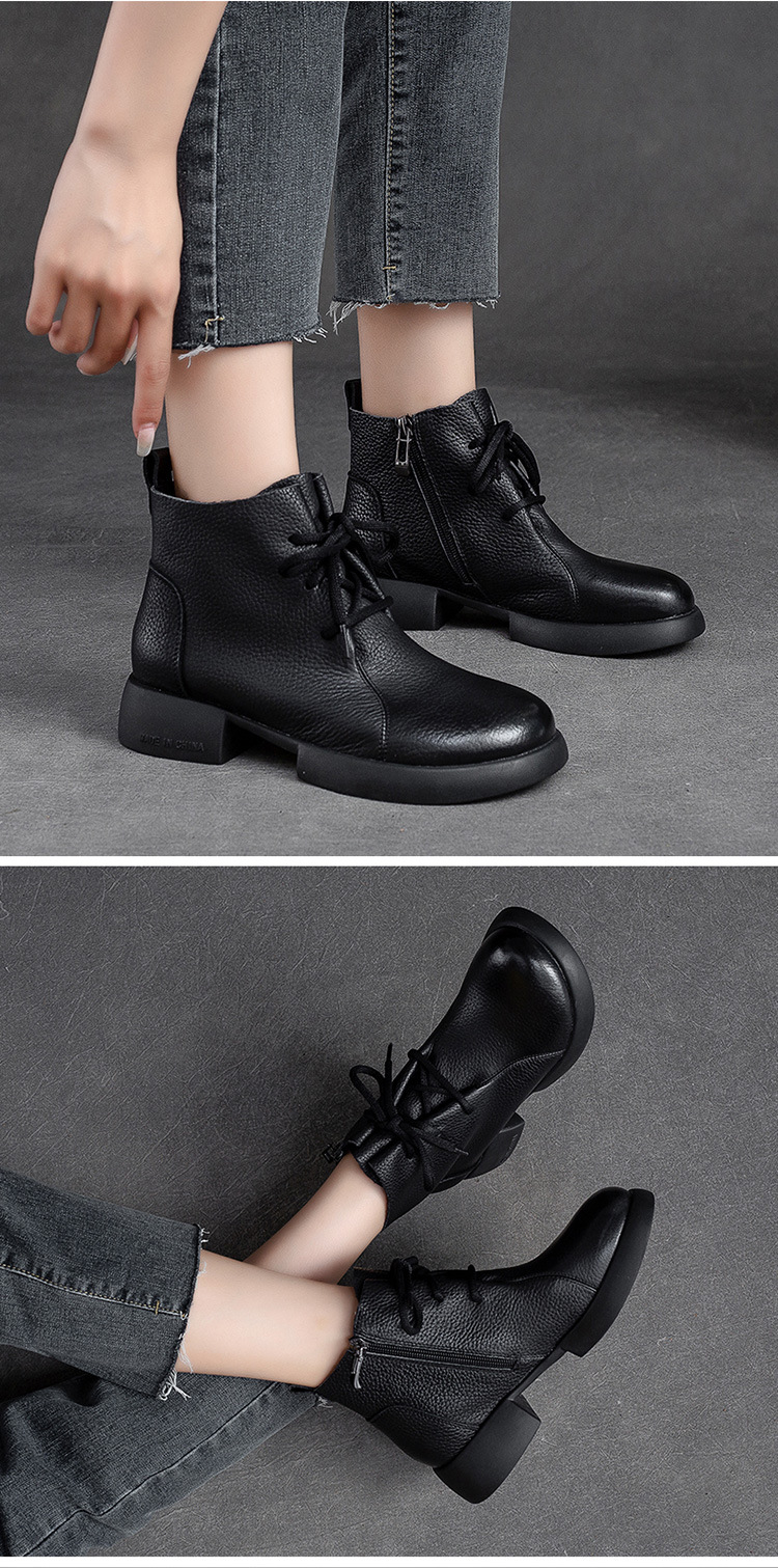 Đôi bốt nữ thiết kế gót thấp vững chãi, phù hợp diện trong tiết trời thu đông. Kiểu dáng đơn giản, nét may tỉ mỉ tôn vinh vẻ đẹp cổ điển. Điểm nhấn khóa kéo bên hông giúp mang vào dễ dàng. Chất liệu da mềm ôm chân tạo cảm giác dễ chịu khi dùng cả ngày. Có thể kết hợp linh hoạt với quần jeans, váy hay quần tây để tạo phong cách nhẹ nhàng. | Tên sản phẩm: Giày Boot Cổ Thấp Nữ Đế Cao Hàng Mùa Xuân Thu Đông Phục Cổ Cổ Điển - Giày Dép Nữ | Mã sản phẩm: B2807 - Giá: 2.480.000đ | Mã nhà sản xuất: SHNTEZ-G05Hình ảnh sản phẩm