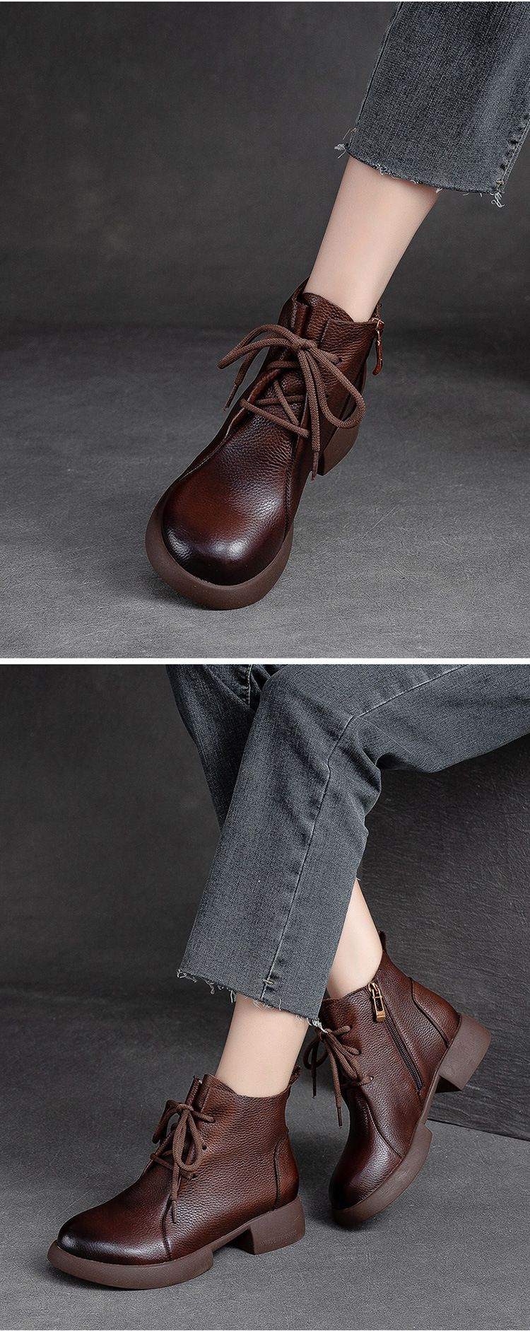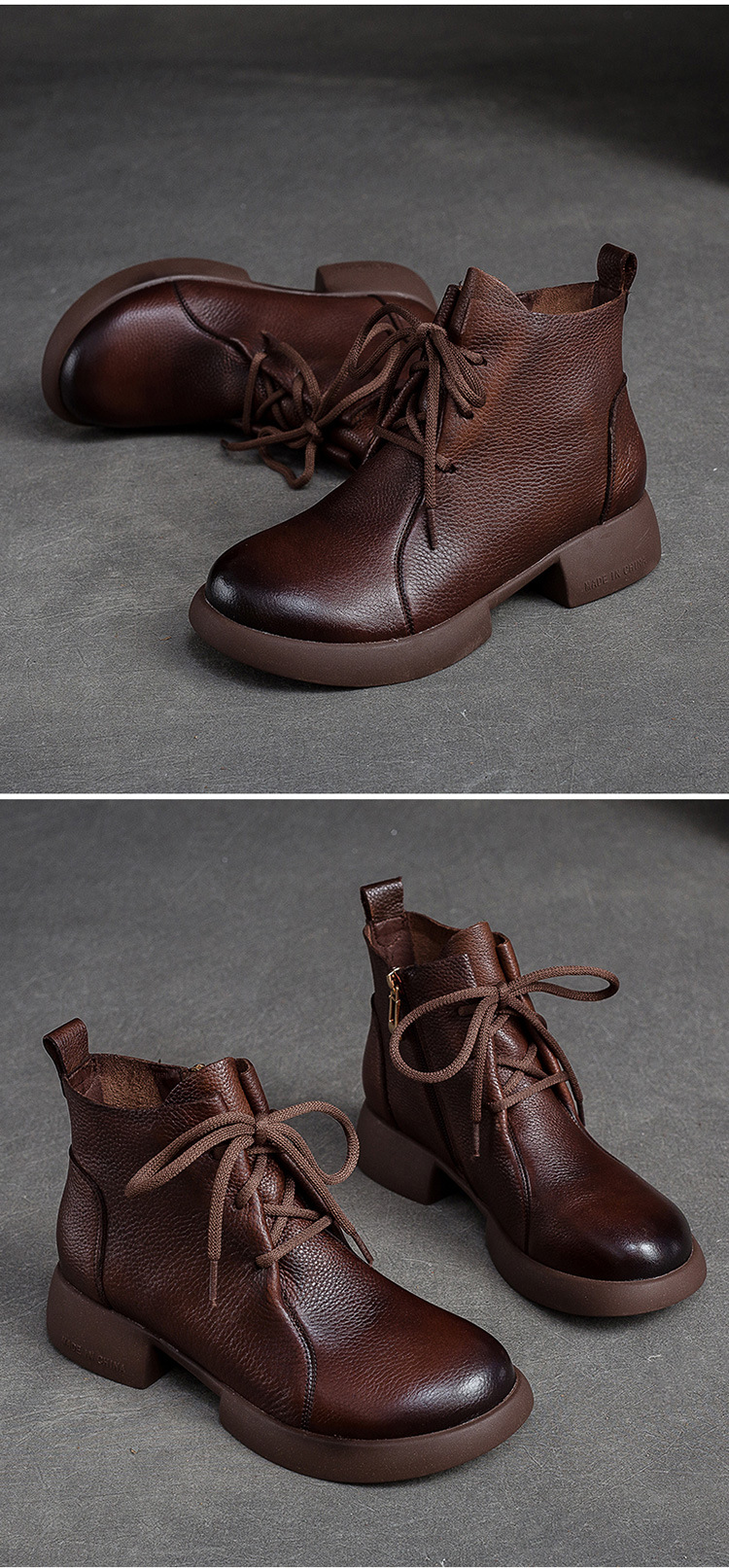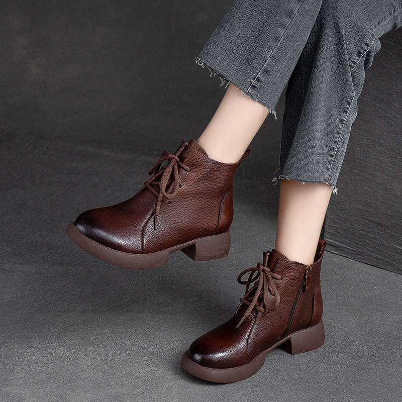 Đôi bốt nữ thiết kế gót thấp vững chãi, phù hợp diện trong tiết trời thu đông. Kiểu dáng đơn giản, nét may tỉ mỉ tôn vinh vẻ đẹp cổ điển. Điểm nhấn khóa kéo bên hông giúp mang vào dễ dàng. Chất liệu da mềm ôm chân tạo cảm giác dễ chịu khi dùng cả ngày. Có thể kết hợp linh hoạt với quần jeans, váy hay quần tây để tạo phong cách nhẹ nhàng. | Tên sản phẩm: Giày Boot Cổ Thấp Nữ Đế Cao Hàng Mùa Xuân Thu Đông Phục Cổ Cổ Điển - Giày Dép Nữ | Mã sản phẩm: B2807 - Giá: 2.480.000đ | Mã nhà sản xuất: SHNTEZ-G05Hình ảnh sản phẩm