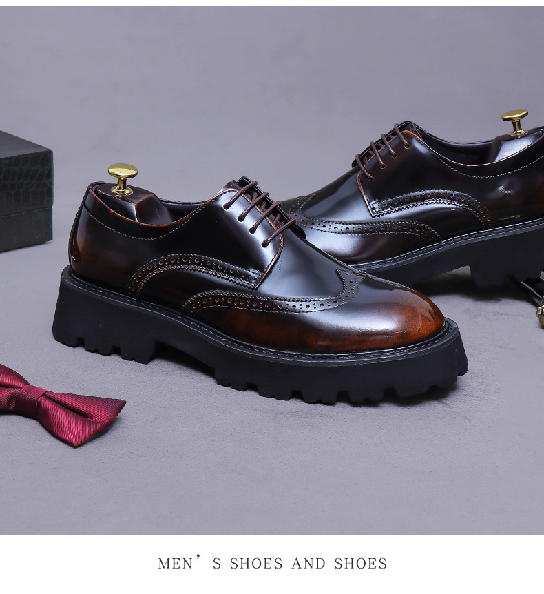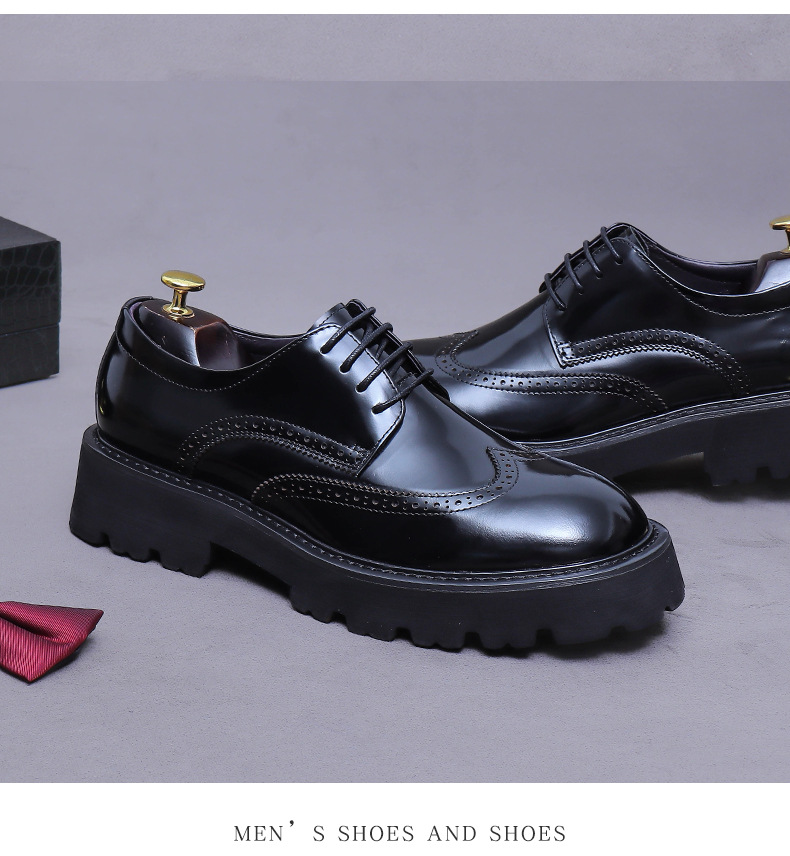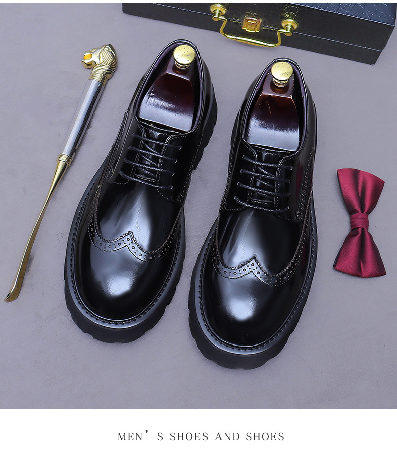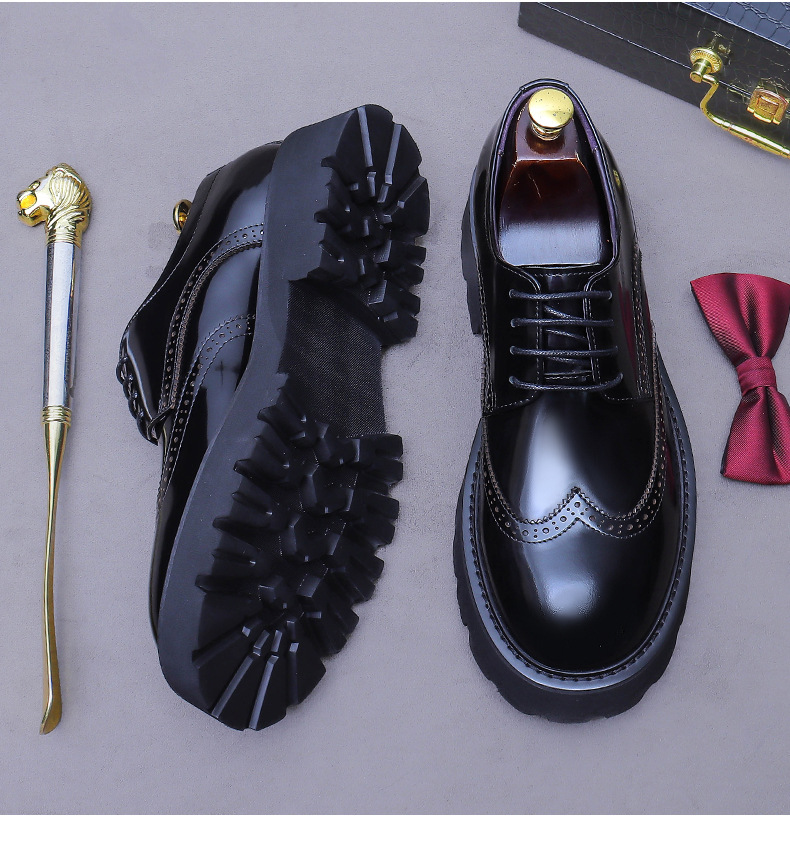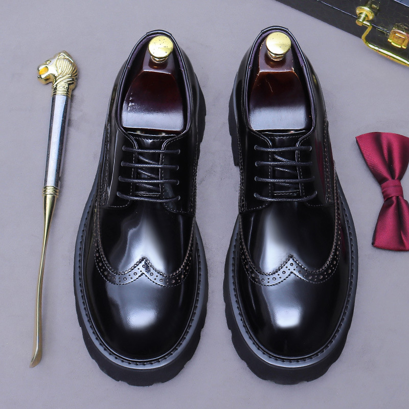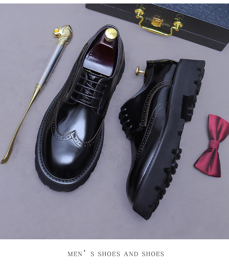 Đôi giày da thật này có phần đế được thiết kế tăng thêm chiều cao một cách tinh tế. Kiểu dáng mang phong cách Anh Quốc cổ điển với các đường chạm khắc tinh xảo trên thân giày. Mặt giày làm từ da bò tự nhiên, có độ bóng đẹp mắt. Đầu giày dáng tròn cùng thiết kế cổ điển giúp dễ dàng phối hợp với nhiều loại trang phục. Sử dụng phù hợp cho các dịp đi làm hoặc gặp mặt. | Tên sản phẩm: Giày Da Nam Chất Liệu Da Bò Mũi Tròn Họa Tiết Hoa Đế Cao - Giày Dép Nam | Mã sản phẩm: B2808 - Giá: 2.450.000đ | Mã nhà sản xuất: ASTYCH-G05Hình ảnh sản phẩm