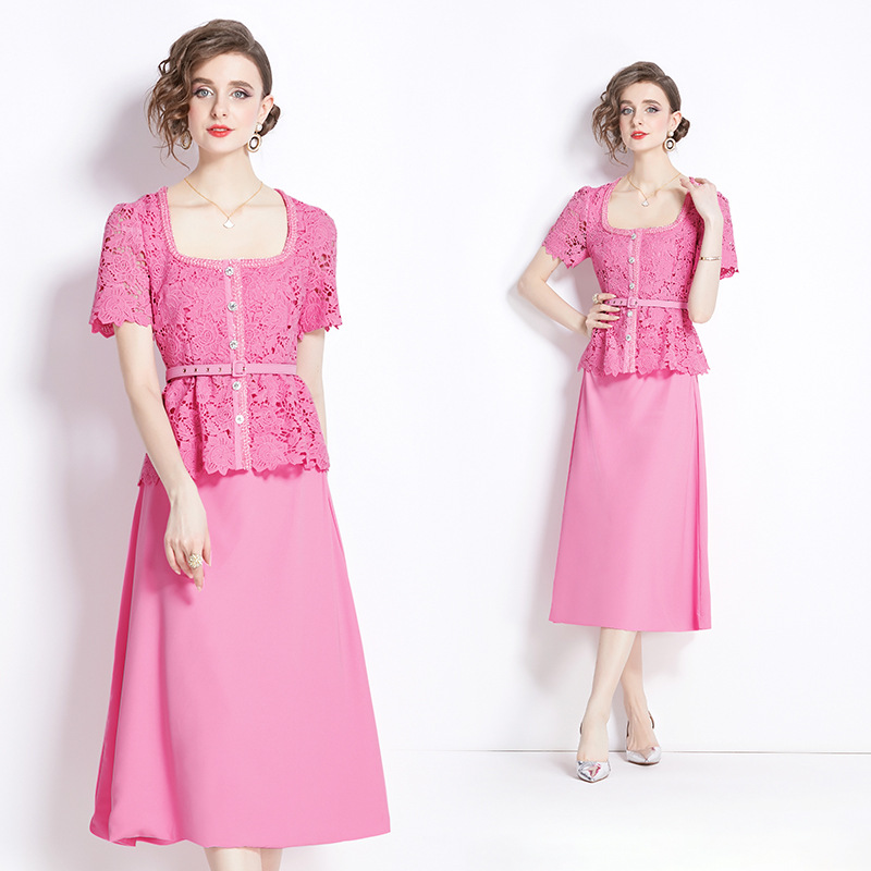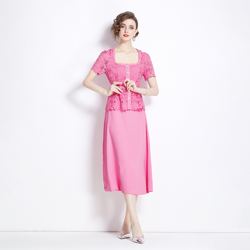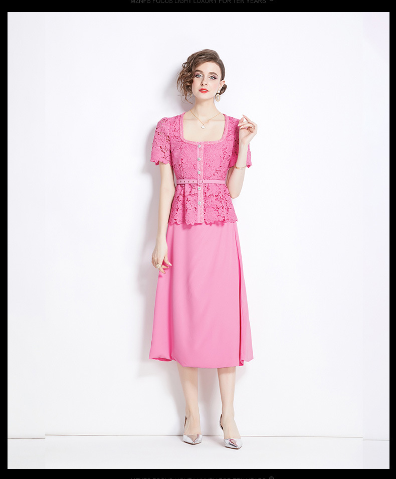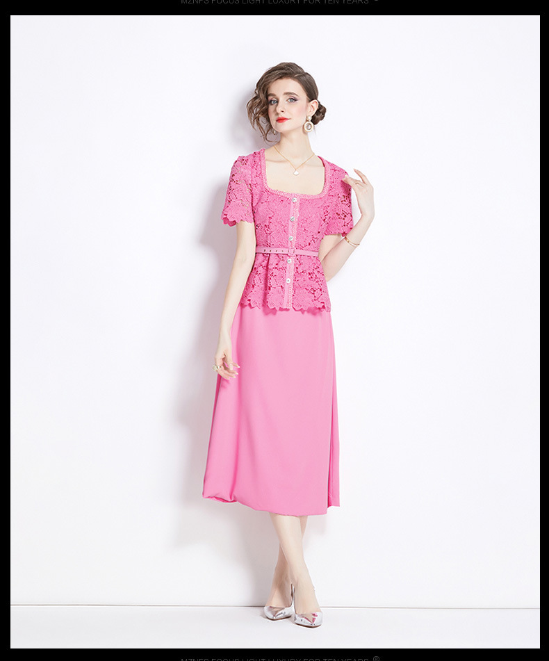 Chiếc áo dài tay ngắn với thiết kế hai lớp tạo vẻ. Chất vải ren màu hồng có những họa tiết xuyên thấu tinh tế, kết hợp cùng phần nối vải khác biệt. Kiểu dáng dài thướt tha, phù hợp cho những dịp đi chơi hay gặp gỡ. Mặc kèm với giày sandal hoặc giày búp bê để tôn lên vẻ đẹp dịu dàng. | Tên sản phẩm: Váy Đầm Liền Thân Nữ Chất Liệu Ren Ngắn Tay Cả Bộ 2 Món - Thời Trang Nữ | Mã sản phẩm: B2828 - Giá: 1.170.000đ | Mã nhà sản xuất: GUDG-G04Hình ảnh sản phẩm