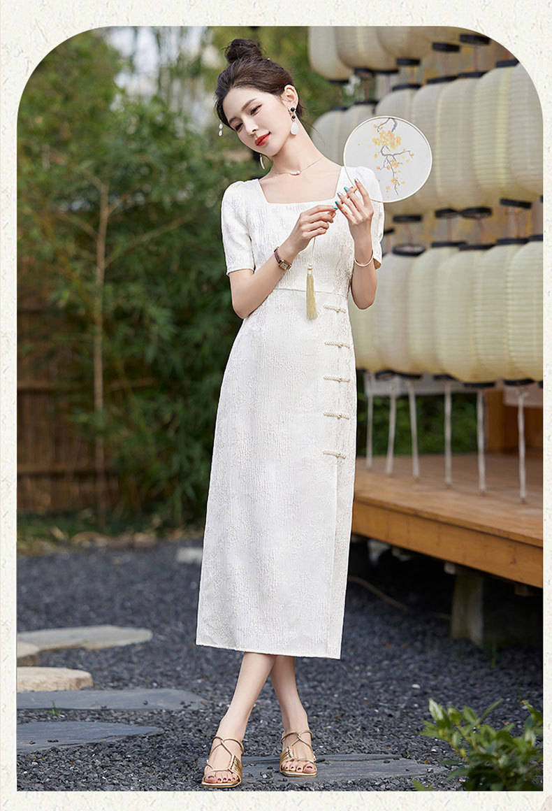 Chiếc đầm dáng dài cách tân mang phong cách hiện đại dành cho mùa hè. Thiết kế có cổ vuông, điểm nhấn là hàng cúc bấm tinh tế và tà xẻ nhẹ nhàng. Chất vải dệt hoa văn tỉ mỉ giúp tôn lên những đường nét cơ thể. Sản phẩm phù hợp để mặc trong nhiều dịp khác nhau, từ những buổi gặp mặt thân mật đến các sự kiện thường ngày. Cách sử dụng đơn giản, mặc và cài cúc là đã có một set đồ hoàn chỉnh. | Tên sản phẩm: Váy Đầm Liền Thân Nữ Họa Tiết Hoa Hàng Mùa Hè - Thời Trang Nữ | Mã sản phẩm: B2891 - Giá: 1.590.000đ | Mã nhà sản xuất: WODIG-G04Hình ảnh sản phẩm