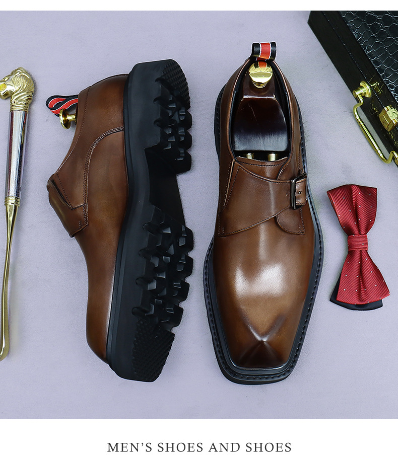 Giày da thật dành cho nam, kiểu dáng công sở lịch sự với điểm nhấn là khóa dán tiện lợi thay cho dây buộc thông thường. Đế giày được thiết kế dày hơn một cách tinh tế, giúp nâng đỡ tốt cho bàn chân và tạo dáng đứng chuẩn mực. Chất liệu da bò mềm mại mang lại cảm giác dễ chịu khi sử dụng cả ngày dài. Sản phẩm phù hợp để đi làm hoặc trong những dịp cần sự chỉn chu. | Tên sản phẩm: Giày Da Nam Chất Liệu Da Bò Tăng Chiều Cao Đế Cao - Giày Dép Nam | Mã sản phẩm: B2906 - Giá: 2.360.000đ | Mã nhà sản xuất: ASTYCH-G05Hình ảnh sản phẩm