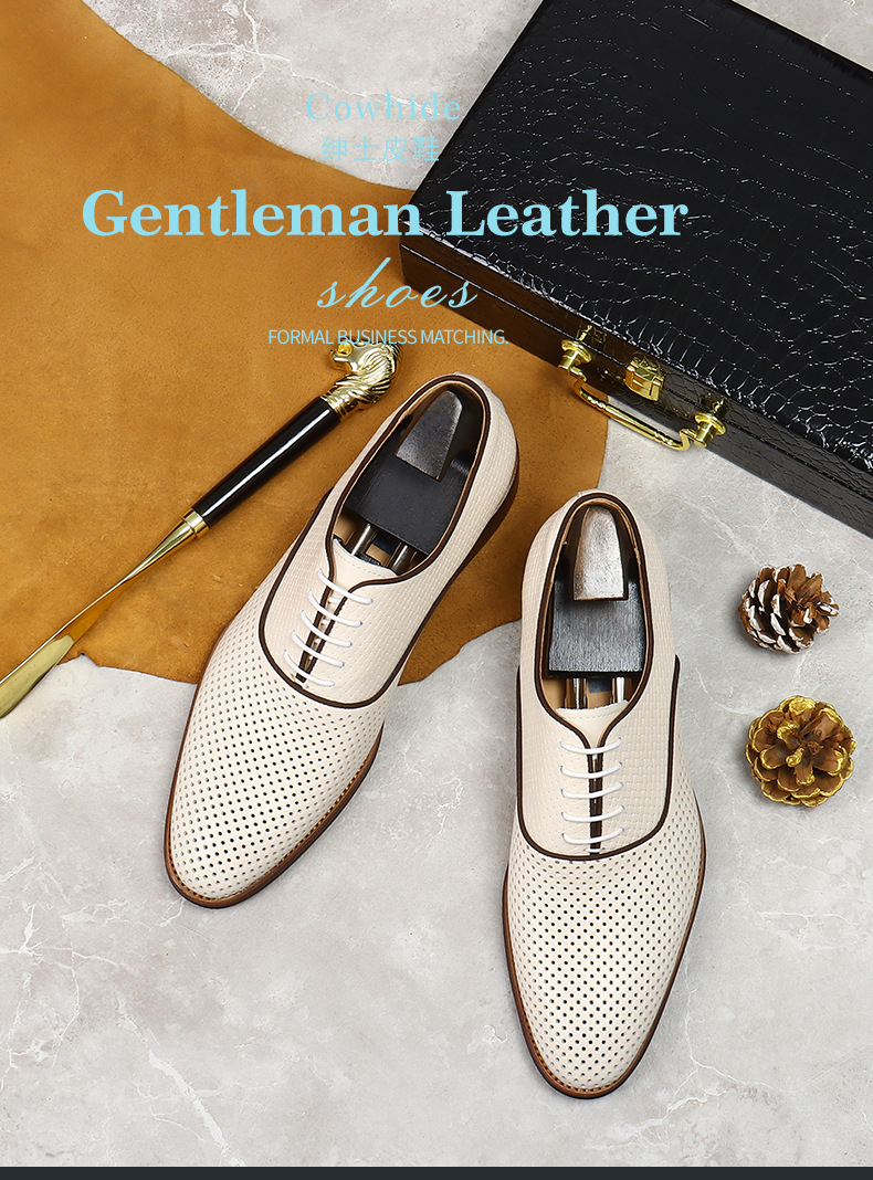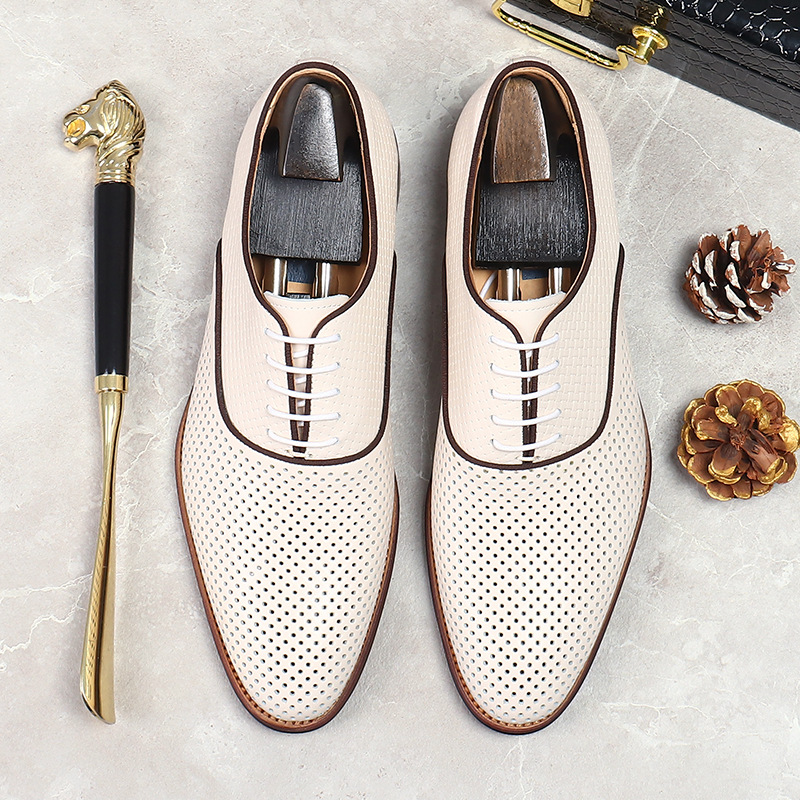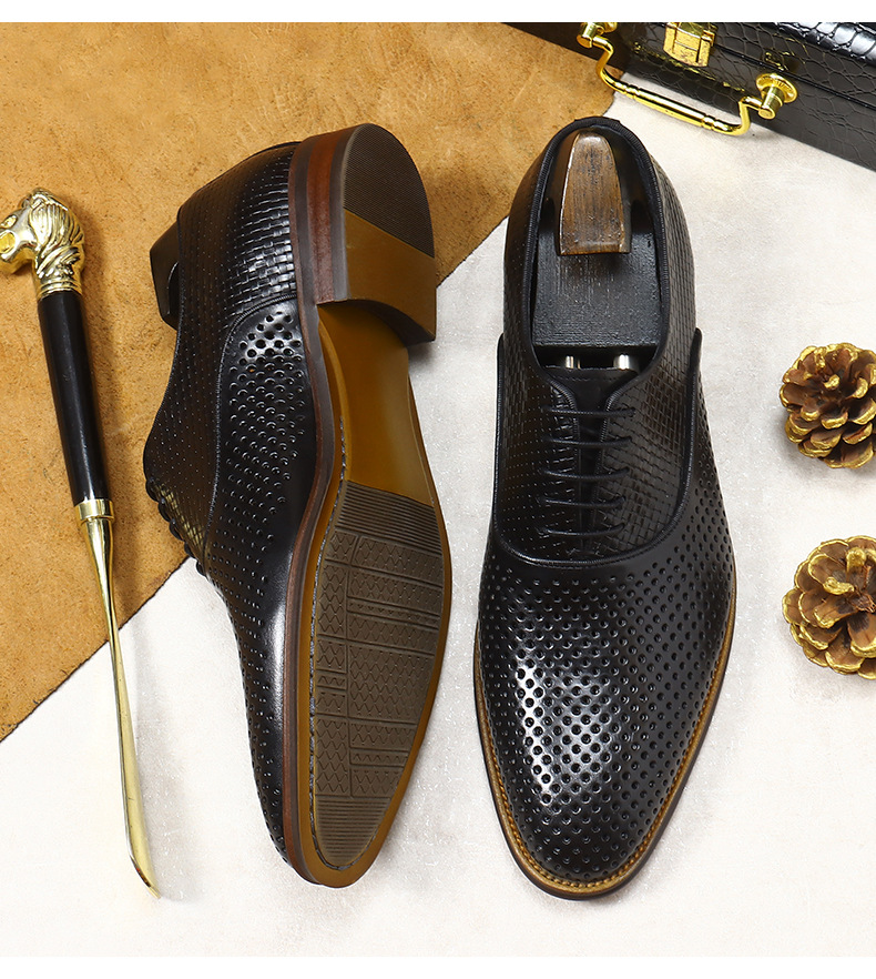 Giày da thật dành cho nam, thiết kế với những lỗ nhỏ tinh tế giúp đôi chân luôn thông thoáng. Phong cách kết hợp nét lịch sự để đi làm và dễ dàng phối cùng nhiều trang phục khác nhau. Sản phẩm làm từ chất liệu da bò mềm mại, đem lại cảm giác dễ chịu khi mang. Bạn có thể sử dụng đôi giày này để đi làm, dự tiệc hoặc trong những dịp quan trọng. | Tên sản phẩm: Giày Da Nam Chất Liệu Da Bò Dùng Trong Lễ Cưới Ngày Cưới - Giày Dép Nam | Mã sản phẩm: B2909 - Giá: 2.210.000đ | Mã nhà sản xuất: ASTYCH-G05Hình ảnh sản phẩm