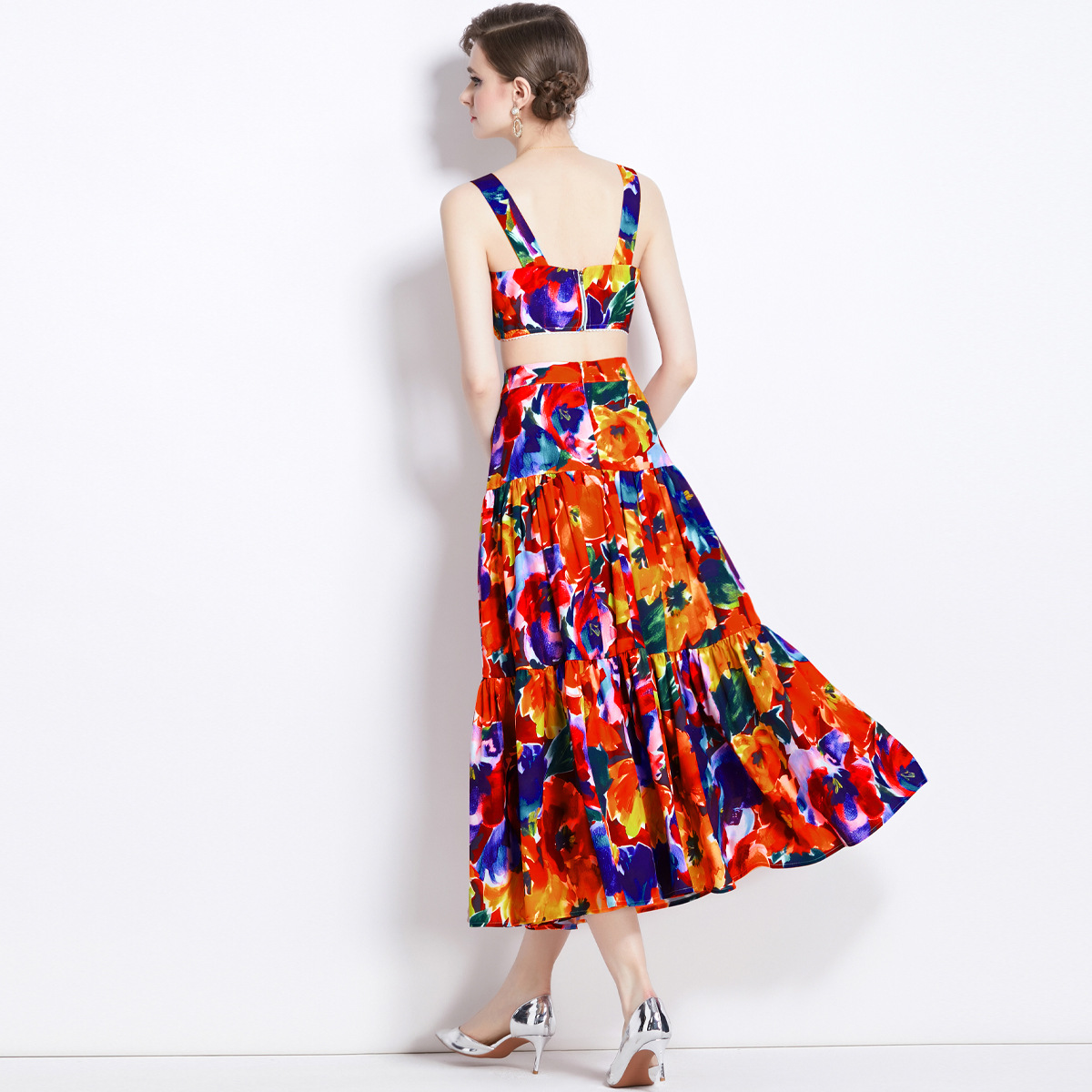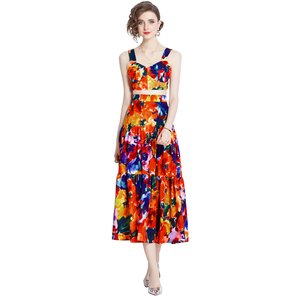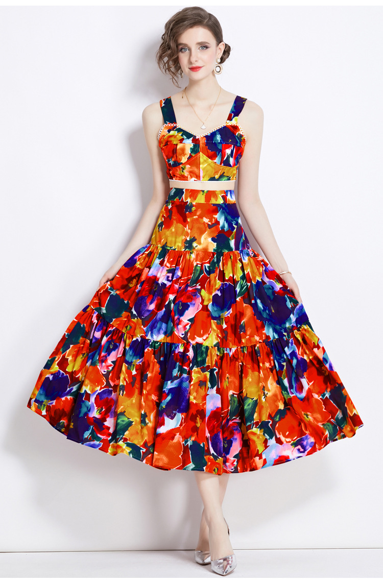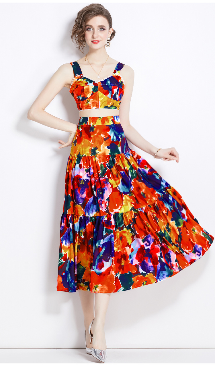 Bộ trang phục mùa hè này mang phong cách cổ điển, gồm áo không tay ôm sát và chân váy in họa tiết cùng tông màu. Áo thiết kế dáng croptop kết hợp với chân váy cao cấp tạo điểm nhấn cho vòng eo. Chất vải mềm mại, thoáng mát, phù hợp cho những ngày nắng nóng. Có thể mặc bộ này đi dạo phố, hẹn hò hay dự tiệc nhẹ. Phối cùng giày sandal hoặc giày thể thao đều hợp. | Tên sản phẩm: Đồ Bộ Nữ Họa Tiết Hoa Hàng Mùa Hè Phục Cổ Cổ Điển - Thời Trang Nữ | Mã sản phẩm: B2917 - Giá: 940.000đ | Mã nhà sản xuất: GUDG-G03Hình ảnh sản phẩm
