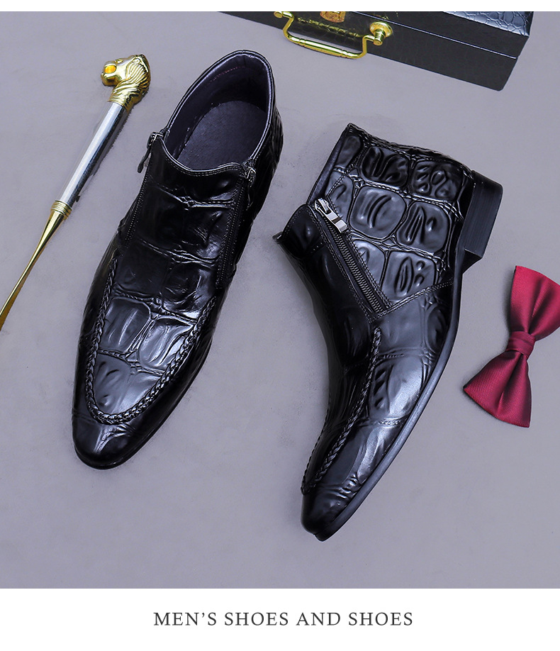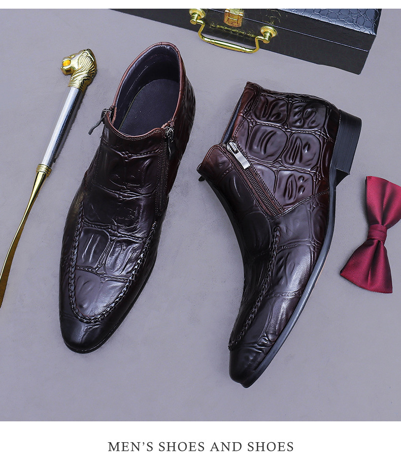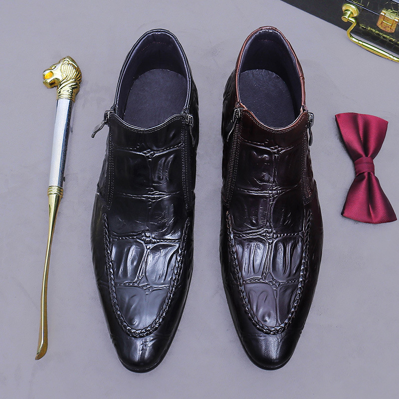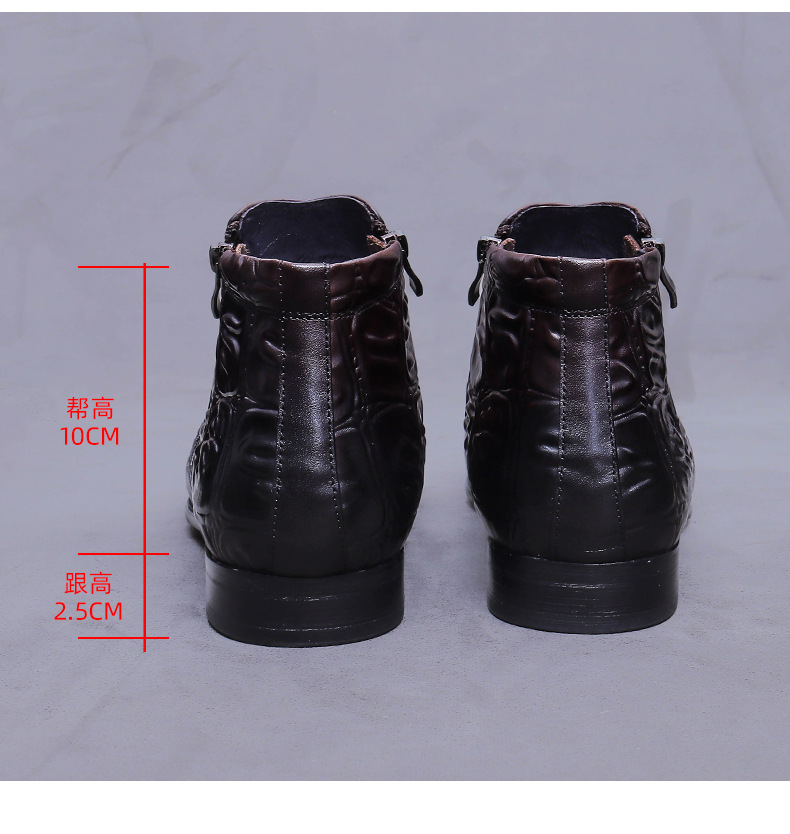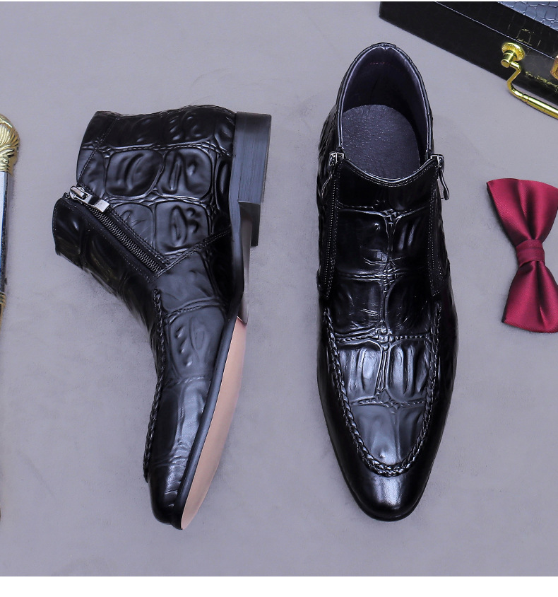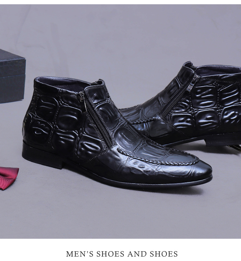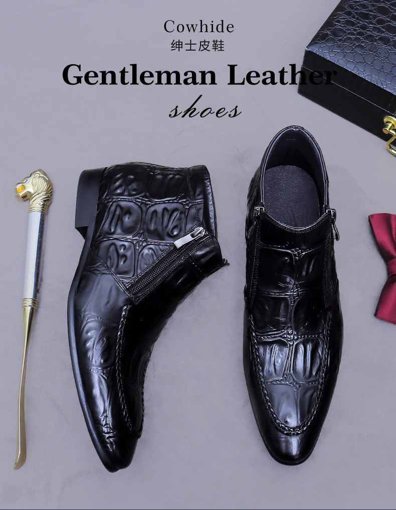 Đôi bốt da thật dành cho nam, kiểu dáng gọn gàng phù hợp cho công sở. Sản phẩm được làm từ chất liệu da bò mềm mại tự nhiên, bề mặt có họa tiết dập nổi tinh tế. Thiết kế cổ thấp vừa phải, phần mũi giày nhọn và có hai khóa kéo hai bên giúp mang vào và tháo ra dễ dàng. Bạn có thể kết hợp với quần tây hoặc quần âu để tạo nên vẻ ngoại hình chỉn chu, lịch sự. | Tên sản phẩm: Giày Thể Thao Tăng Chiều Cao Nam Chất Liệu Da Bò Mũi Nhọn Họa Tiết Hoa - Giày Dép Nam | Mã sản phẩm: B2919 - Giá: 2.500.000đ | Mã nhà sản xuất: ASTYCH-G05Hình ảnh sản phẩm