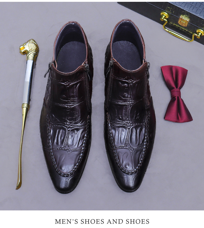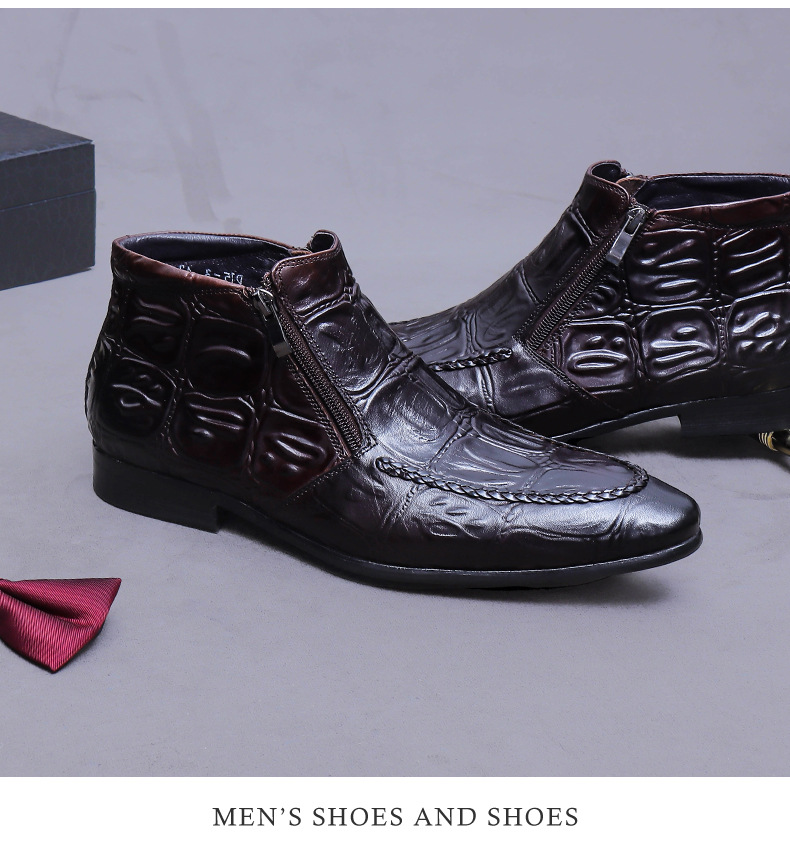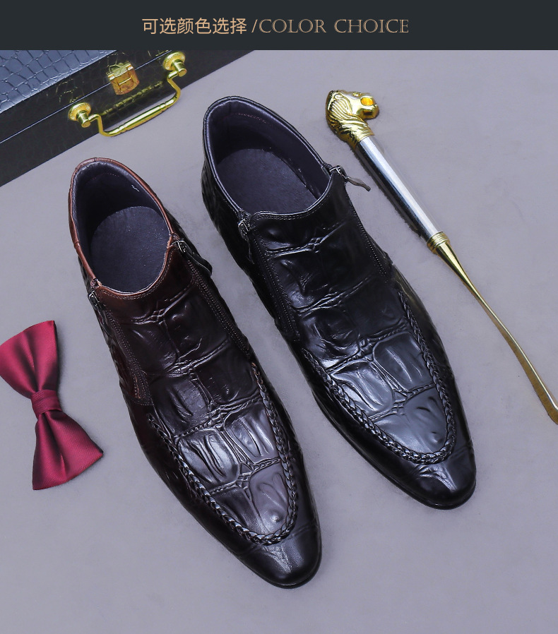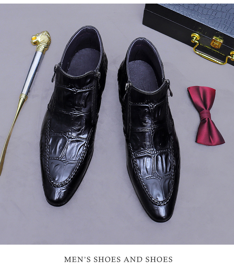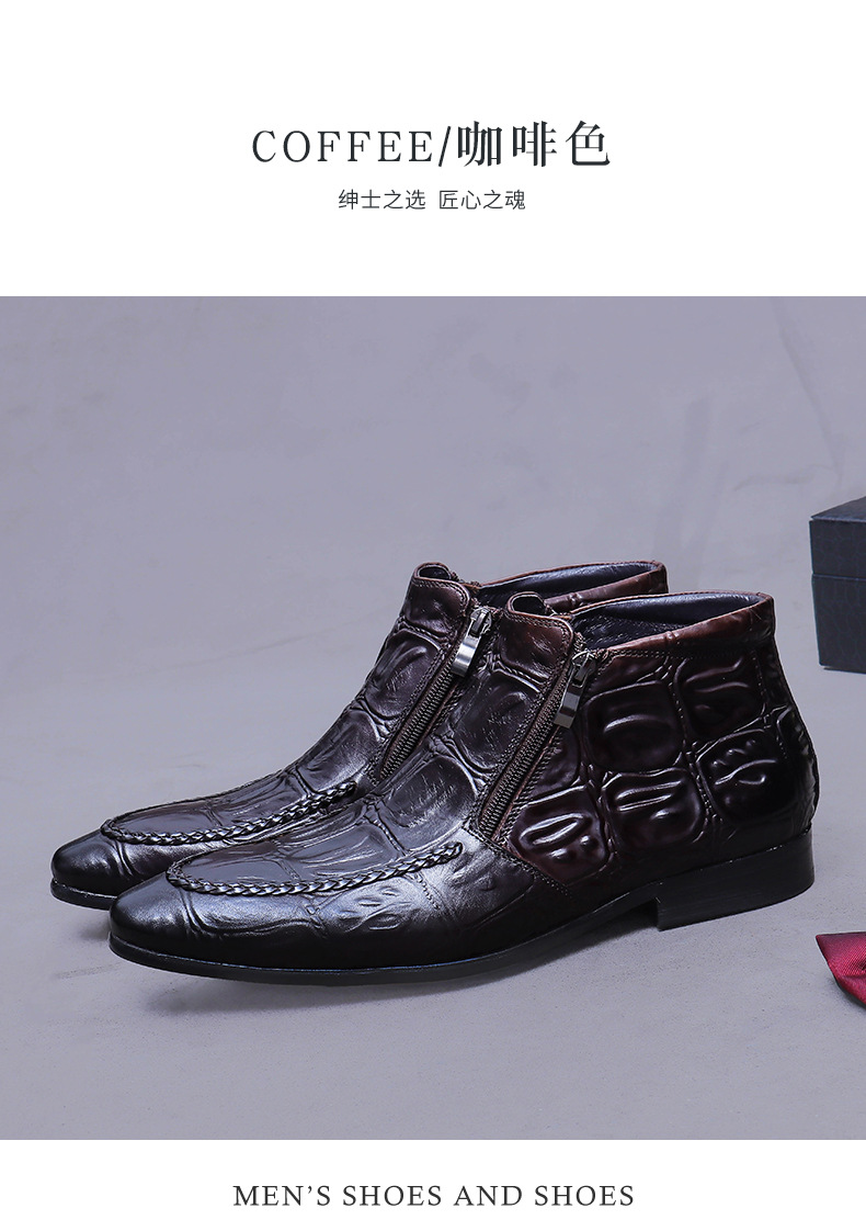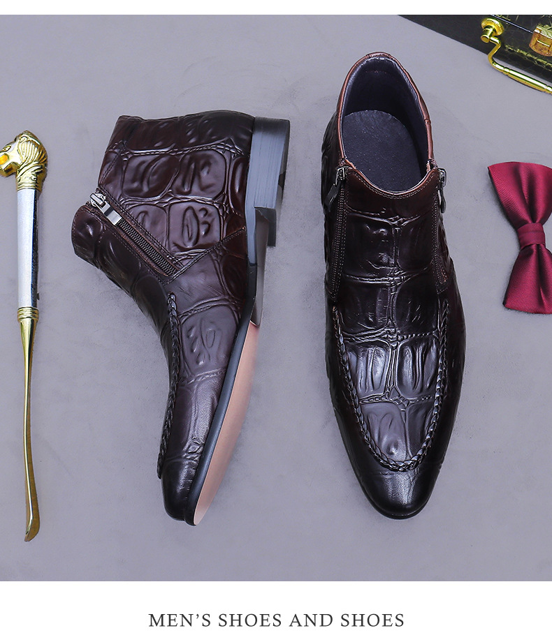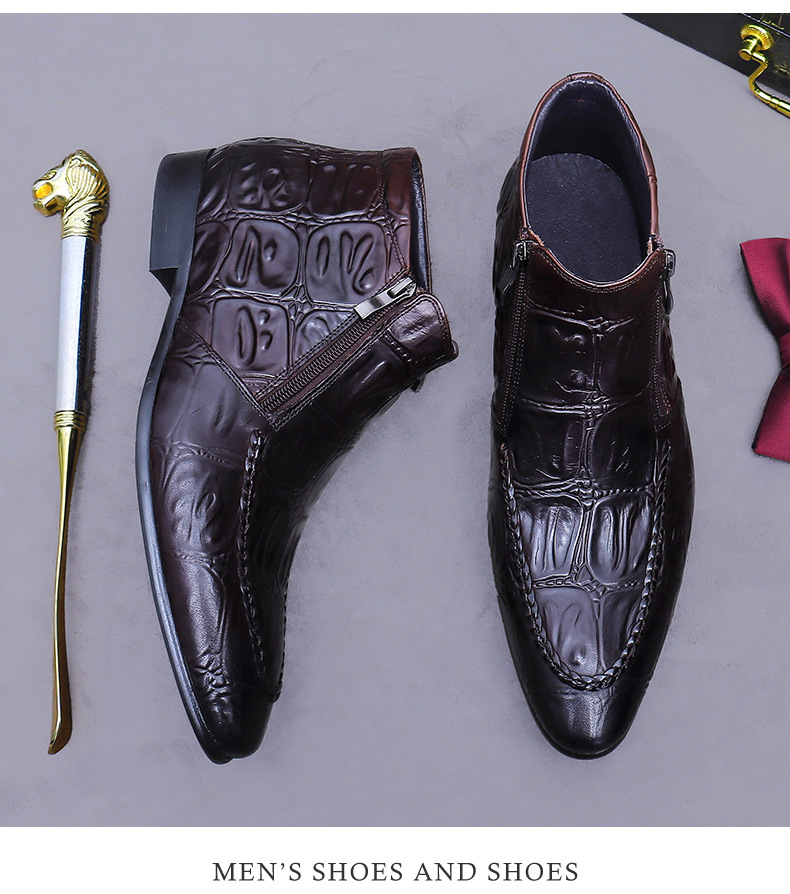 Đôi bốt da thật dành cho nam, kiểu dáng gọn gàng phù hợp cho công sở. Sản phẩm được làm từ chất liệu da bò mềm mại tự nhiên, bề mặt có họa tiết dập nổi tinh tế. Thiết kế cổ thấp vừa phải, phần mũi giày nhọn và có hai khóa kéo hai bên giúp mang vào và tháo ra dễ dàng. Bạn có thể kết hợp với quần tây hoặc quần âu để tạo nên vẻ ngoại hình chỉn chu, lịch sự. | Tên sản phẩm: Giày Thể Thao Tăng Chiều Cao Nam Chất Liệu Da Bò Mũi Nhọn Họa Tiết Hoa - Giày Dép Nam | Mã sản phẩm: B2919 - Giá: 2.500.000đ | Mã nhà sản xuất: ASTYCH-G05Hình ảnh sản phẩm