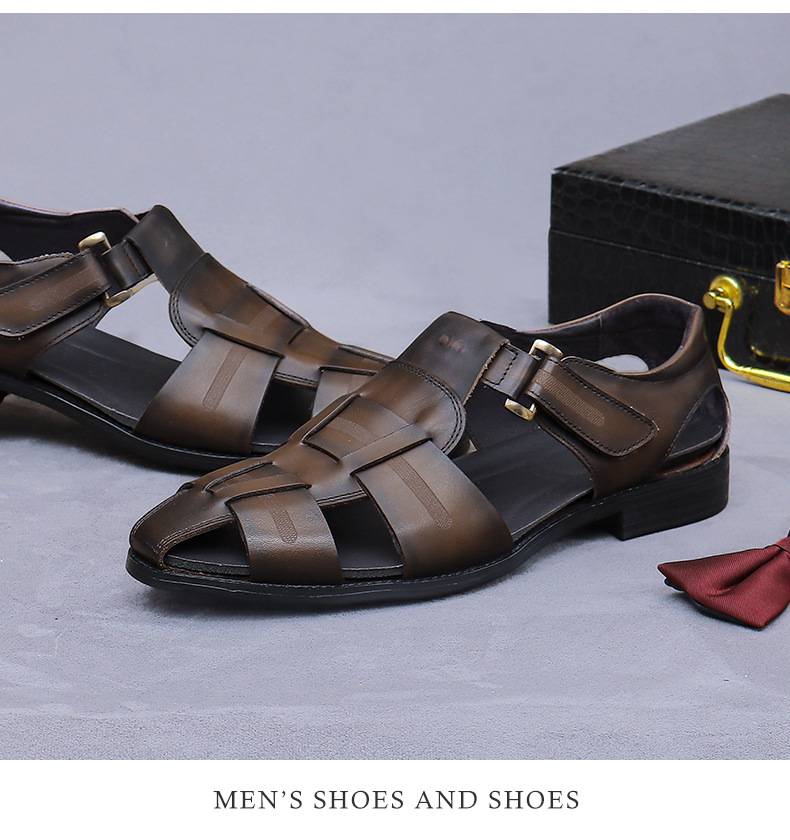 Giày da mát đi mùa hè dành cho nam, được làm từ chất liệu da thật tự nhiên. Sản phẩm có kiểu dáng tròn, phần qu hậu được thiết kế ôm vừa vặn và tiện lợi với khóa dán. Đế giày và mặt trên có các lỗ thông hơi nhỏ, giúp không khí lưu thông tốt, mang lại cảm giác thoáng mát và dễ chịu khi mang. Bạn có thể dùng để đi làm, dạo phố hoặc trong các sinh hoạt thường ngày. | Tên sản phẩm: Giày Dép Sandal Nam Chất Liệu Da Bò Mũi Tròn Thoáng Khí Hàng Mùa Hè - Giày Dép Nam | Mã sản phẩm: B2929 - Giá: 2.020.000đ | Mã nhà sản xuất: ASTYCH-G05Hình ảnh sản phẩm