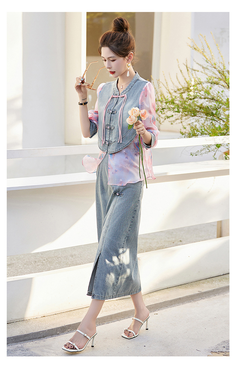 Bộ trang phục hai mảnh này kết hợp nét đẹp hiện đại với phong cách dân tộc. Thiết kế dáng suông từ chất vải bò giúp tôn lên vóc dáng một cách tinh tế. Màu hồng dịu nhẹ cùng kiểu dáng thanh lịch, phù hợp cho môi trường công sở. Có thể mặc nguyên bộ hoặc phối cùng các áo phông, áo sơ mi khác để tạo nên những phong cách đa dạng. | Tên sản phẩm: Đồ Bộ Nữ Chất Liệu Jean Bò Cả Bộ 2 Món Hàng Mùa Hè Đồ Công Sở - Thời Trang Nữ | Mã sản phẩm: B2934 - Giá: 2.070.000đ | Mã nhà sản xuất: WODIG-G05Hình ảnh sản phẩm